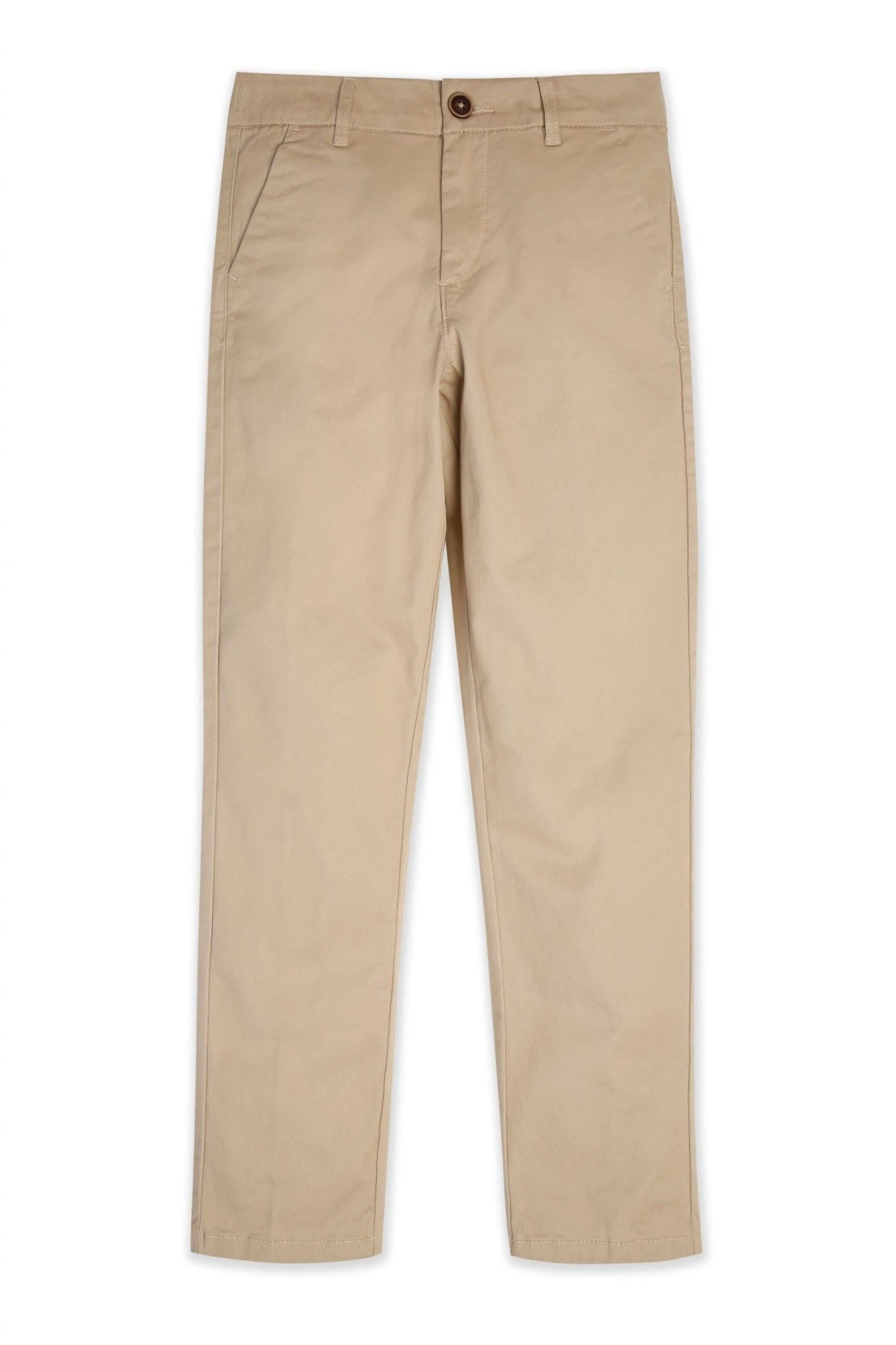 These chino style trousers feature a slim leg, button fastening, belt loops and side pockets. Pair with a cool shirt and trainers for the perfect spring look.