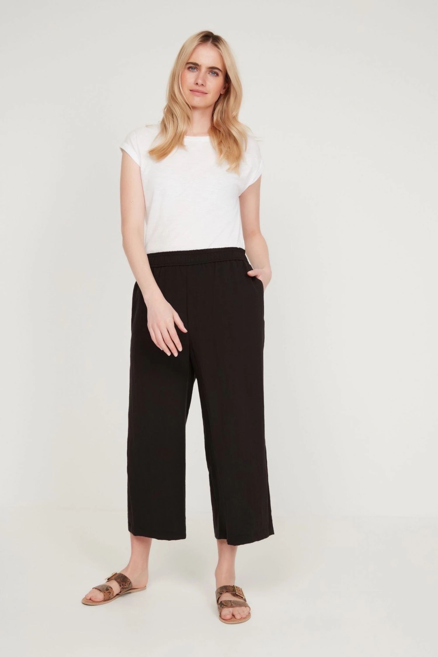 M&Co Black Crinkle Culotte Trousers