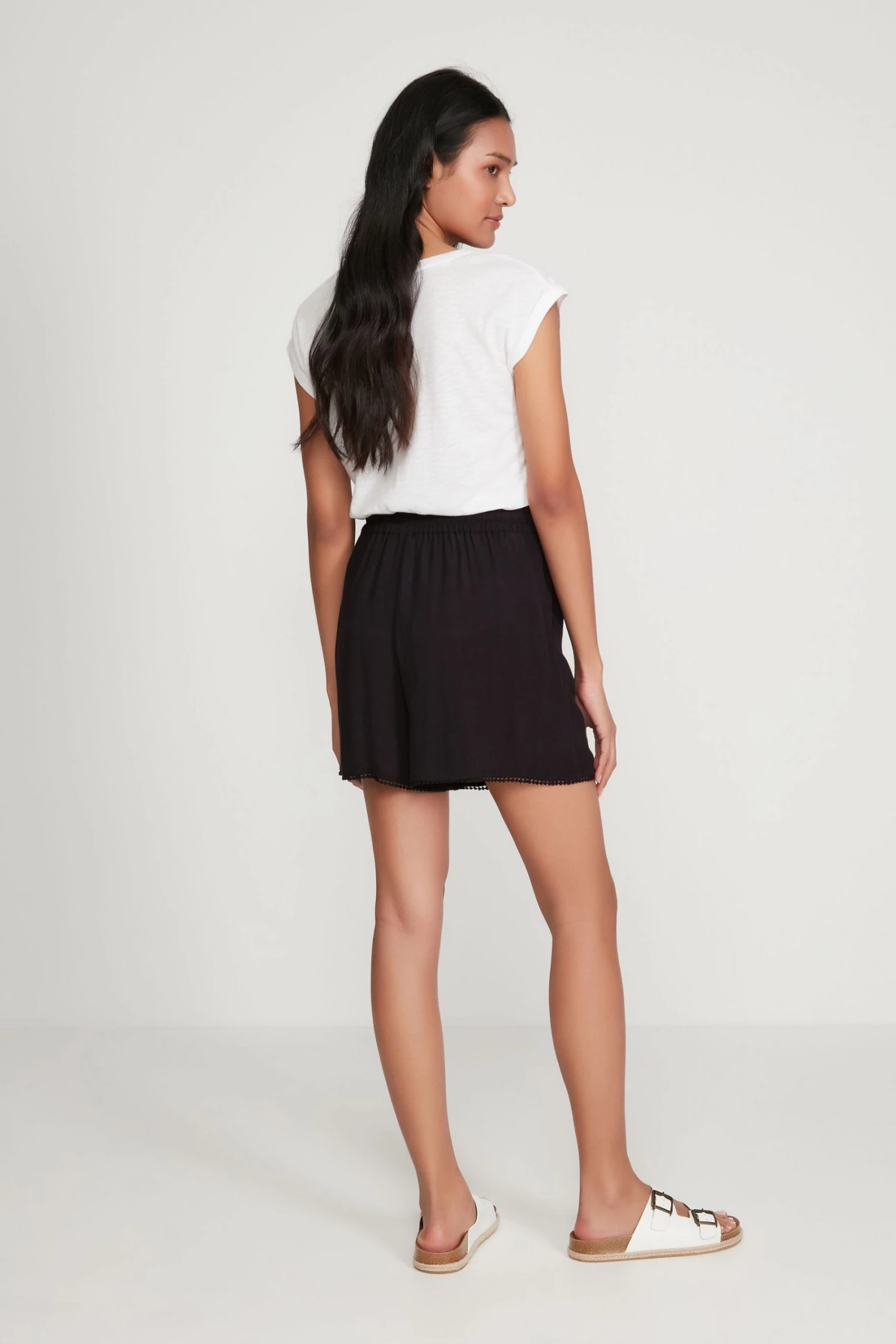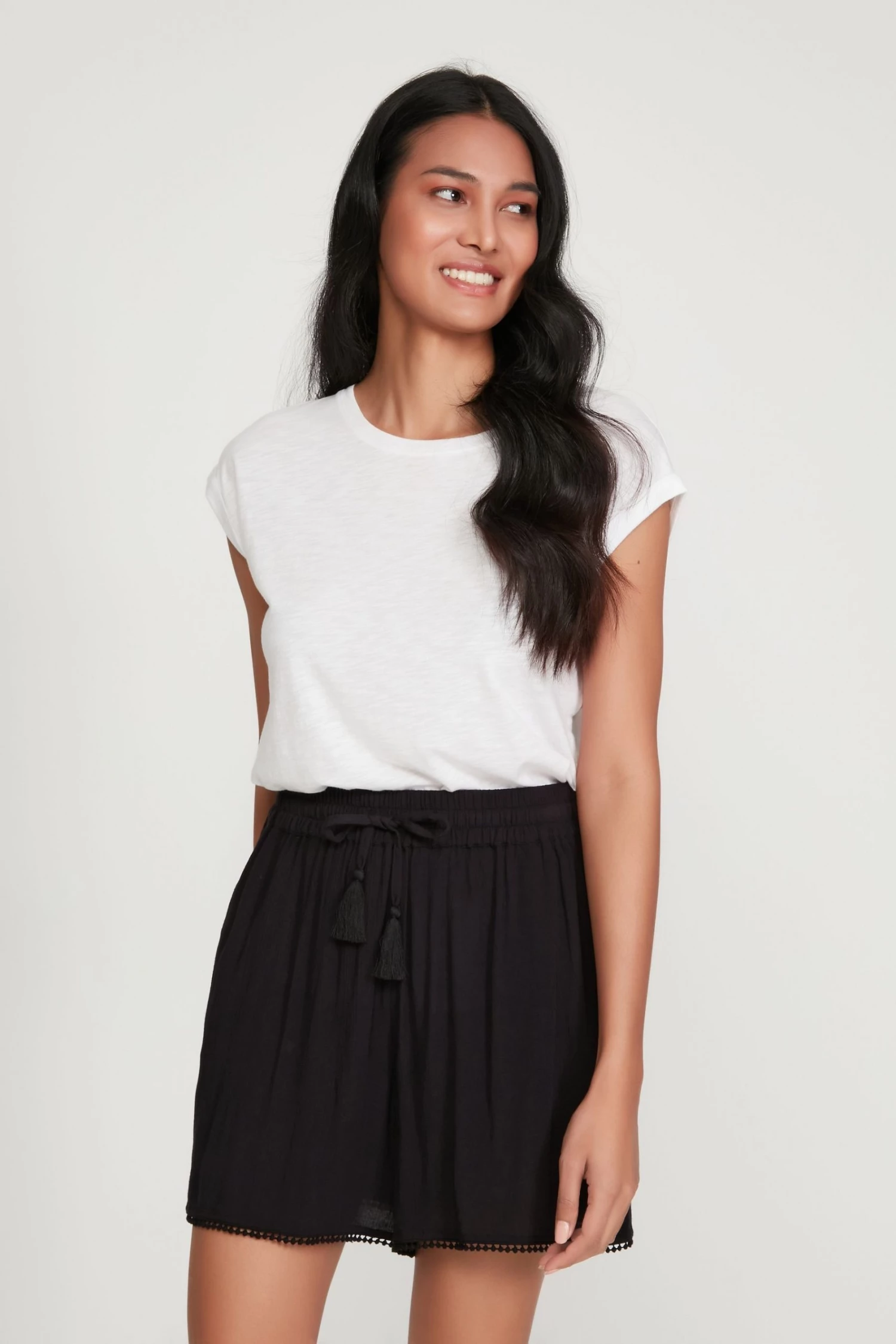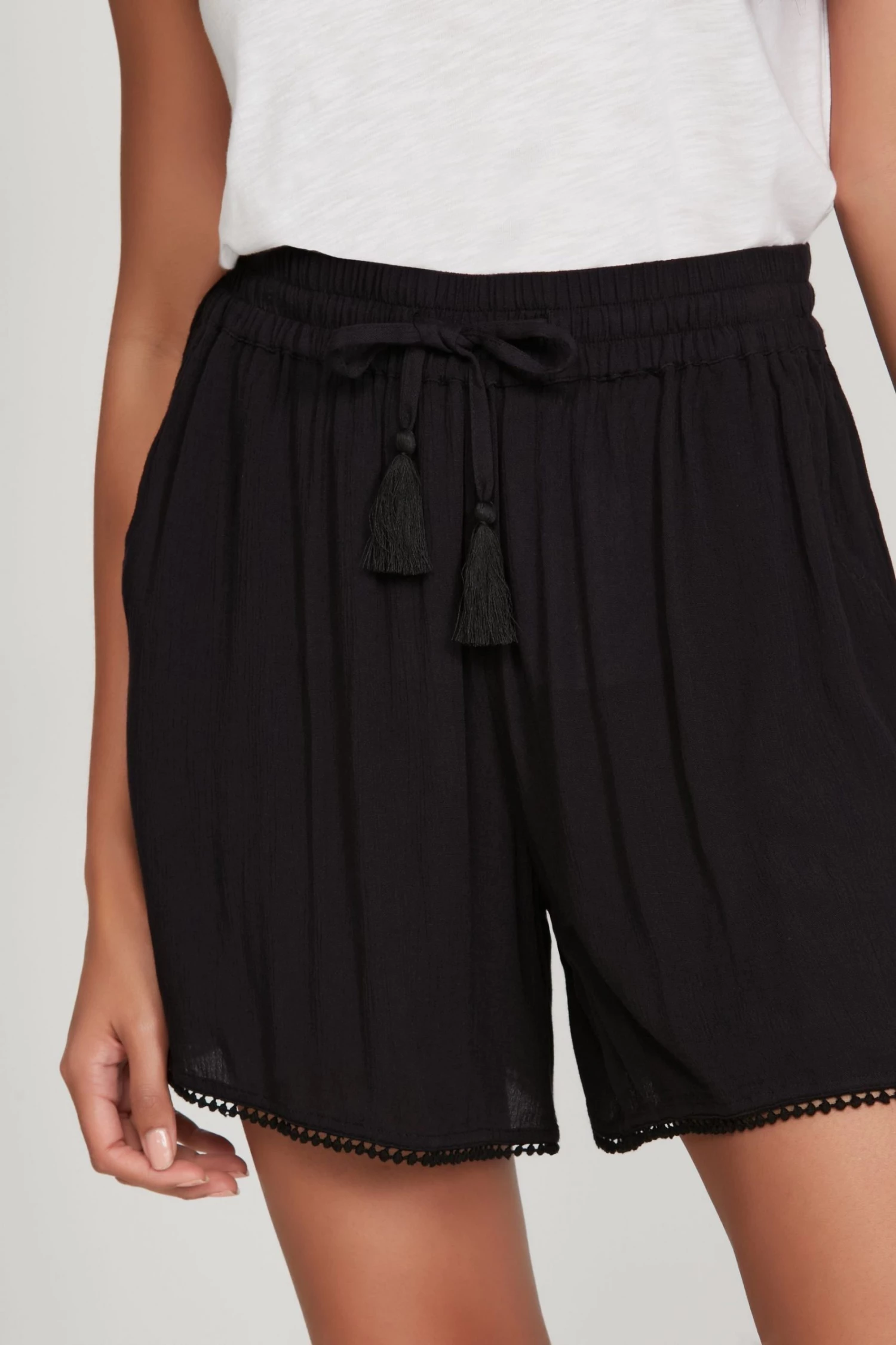 A new season wardrobe essential and a classic design. These crinkle shorts feature side pockets and an elasticated tie waist. Style with a T-shirt and sandals for the perfect day time chic look.