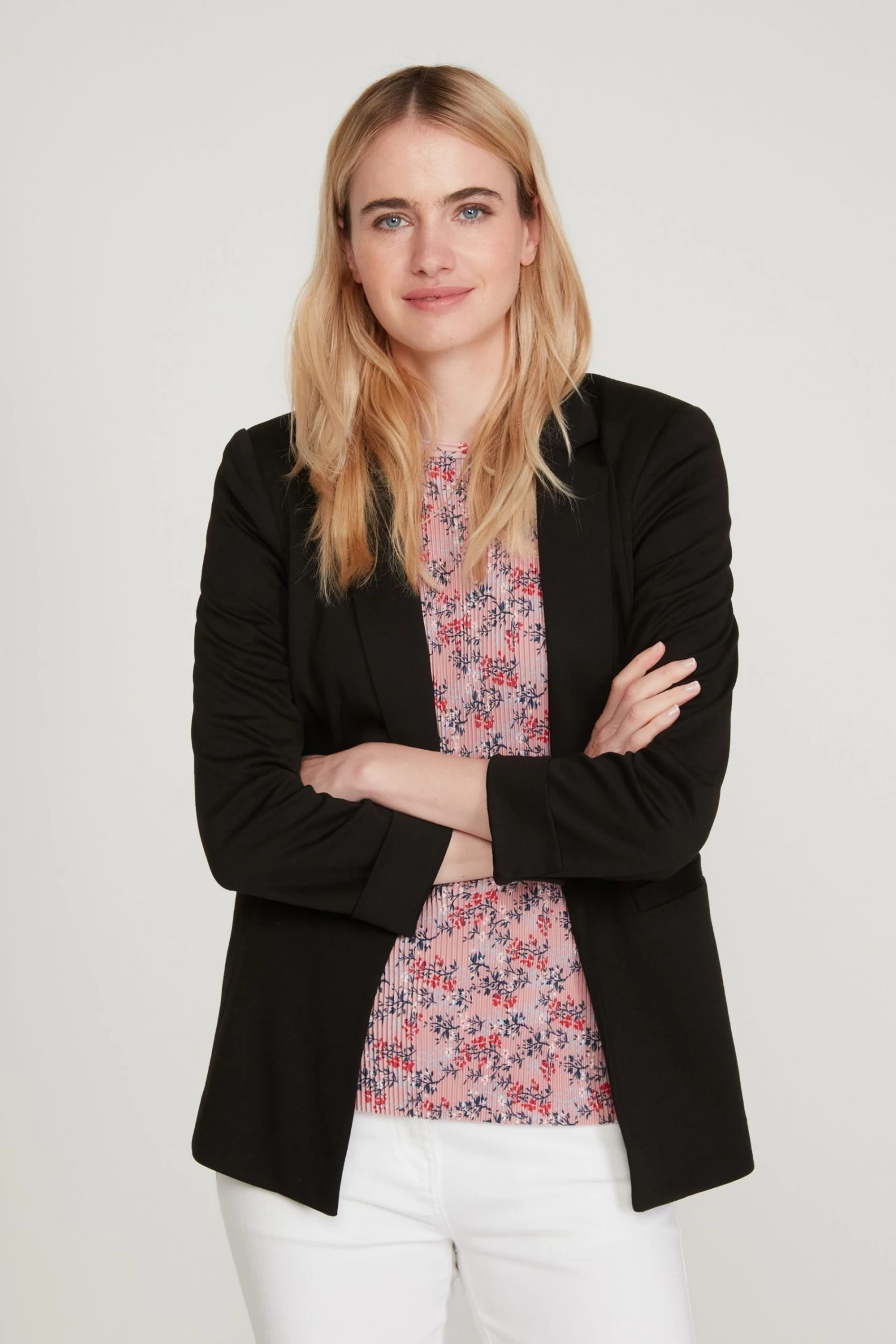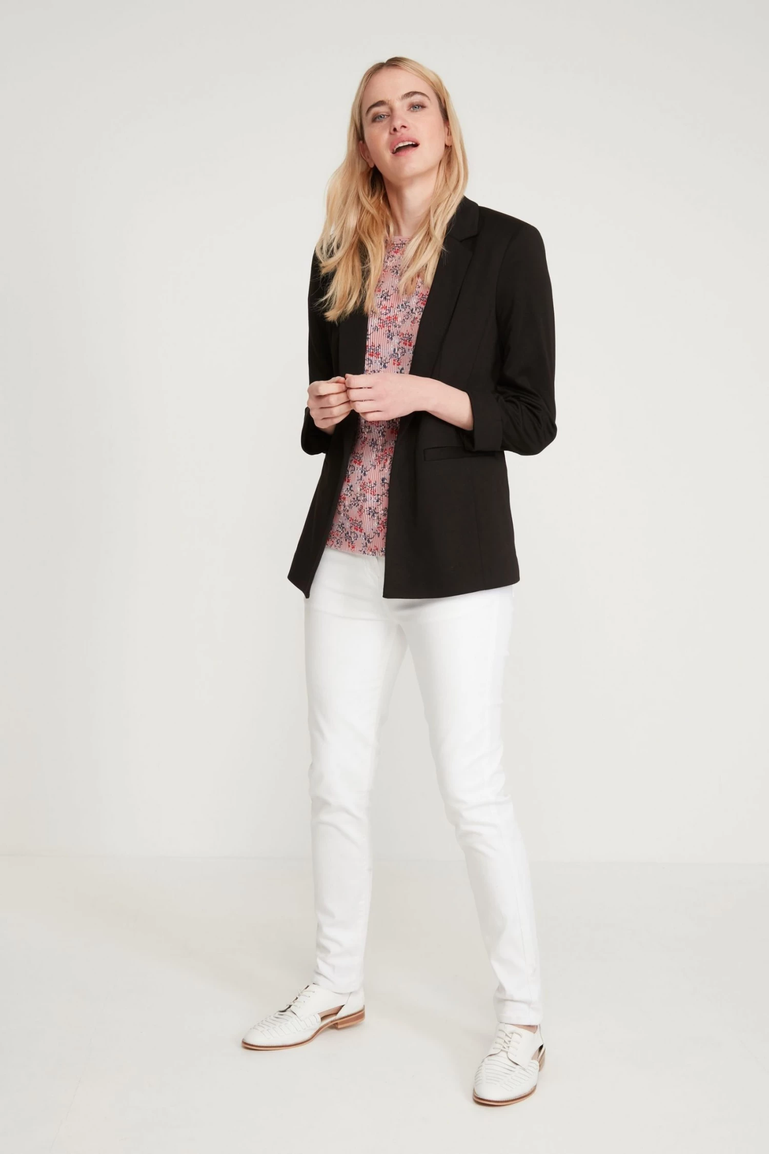Be summer ready with this lightweight blazer. Designed to keep you cool and comfortable in the sun, this blazer is finished with three quarter length cuff sleeves, a button front with lapels and deep front pockets.