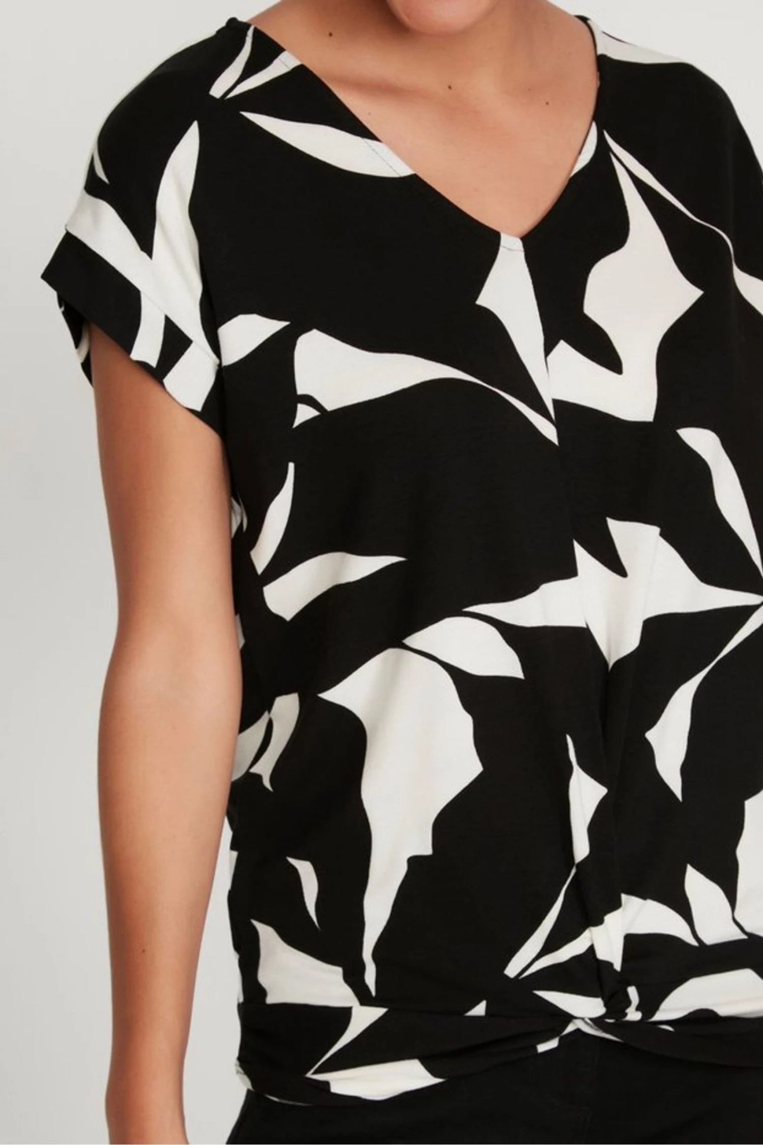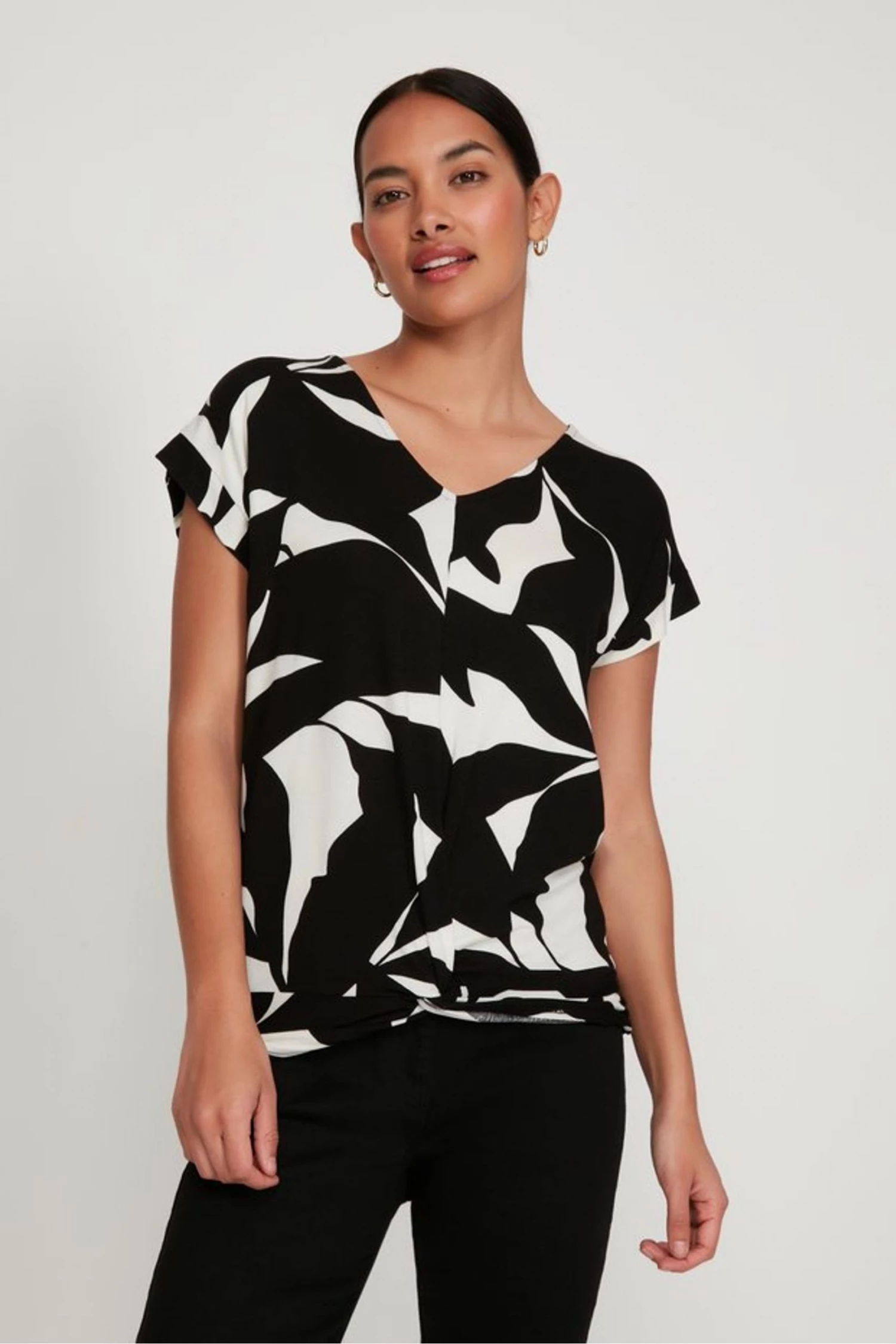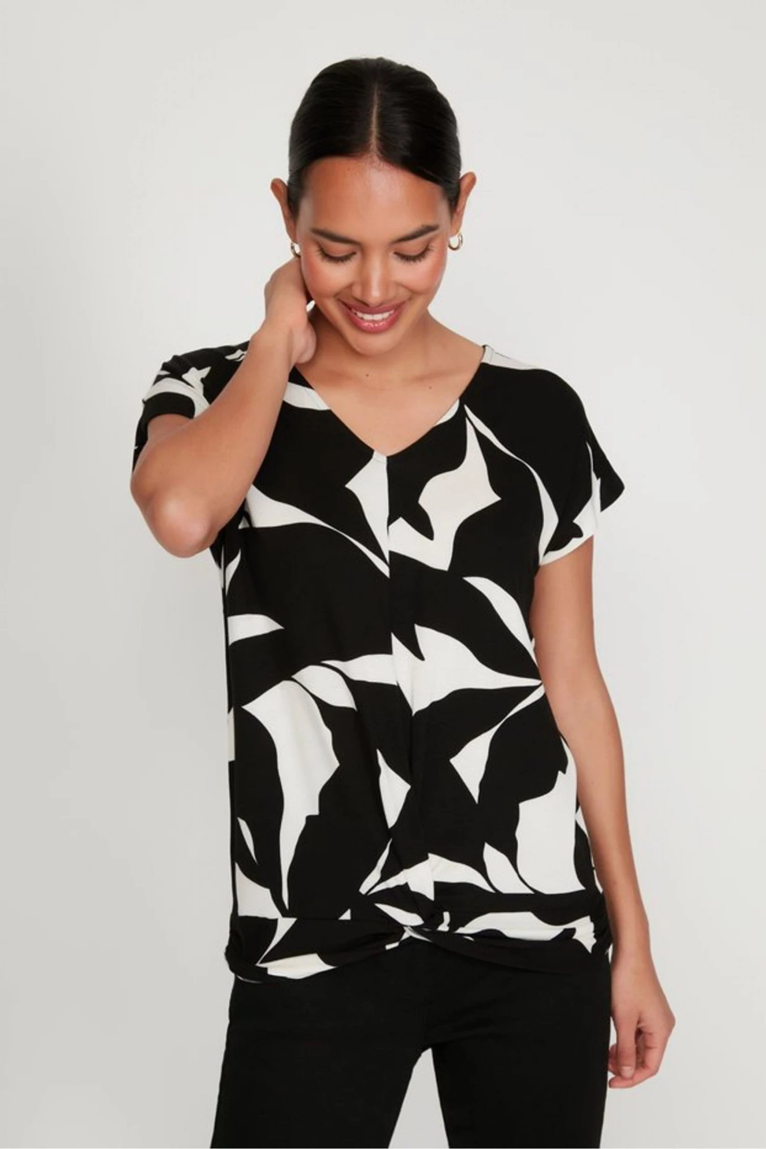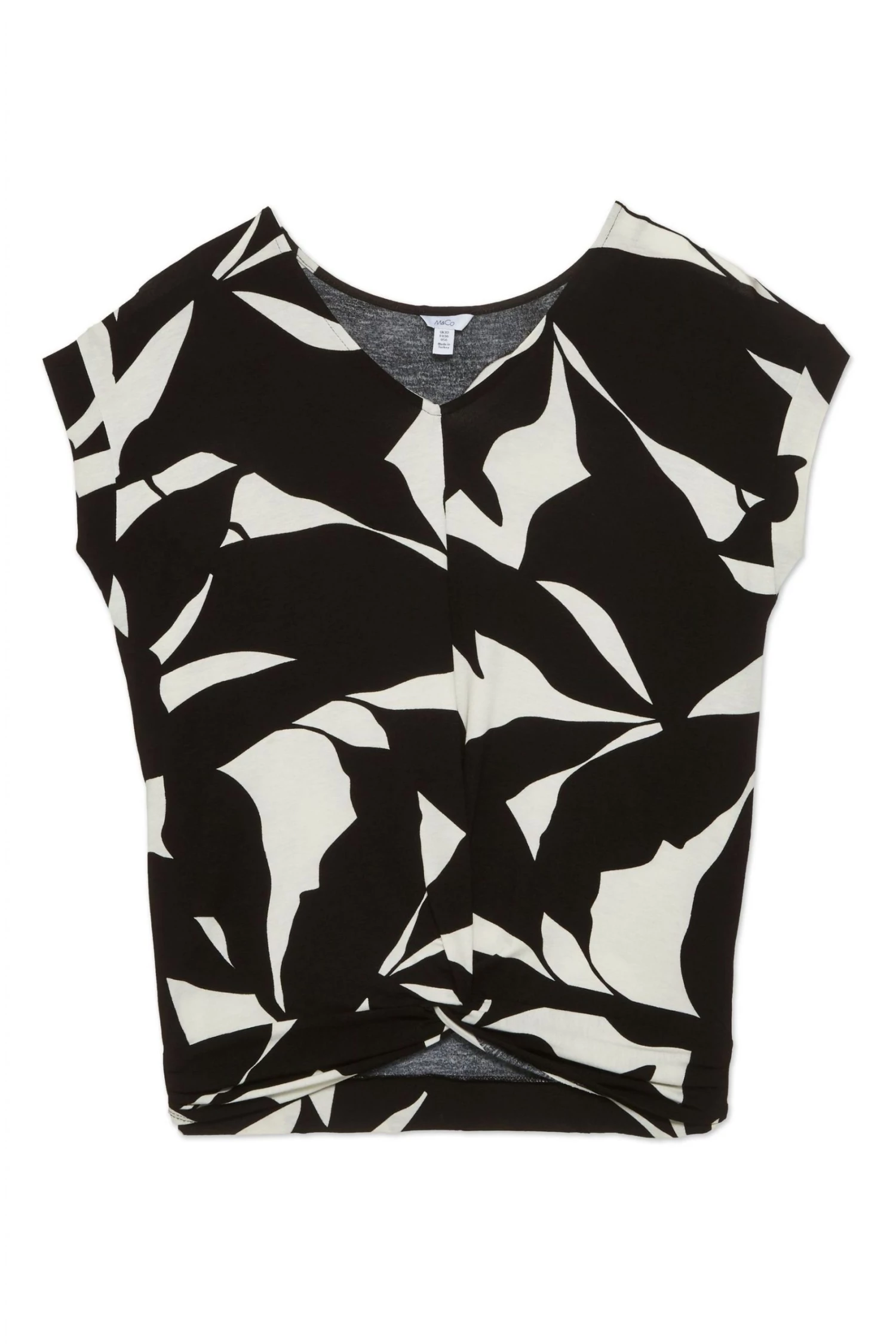 This jersey mono abstract top will have you on trend this season, featuring a sleeveless design and twist front detailing. Style with your favourite black jeans for an evening look or pair with any shorts for every day.