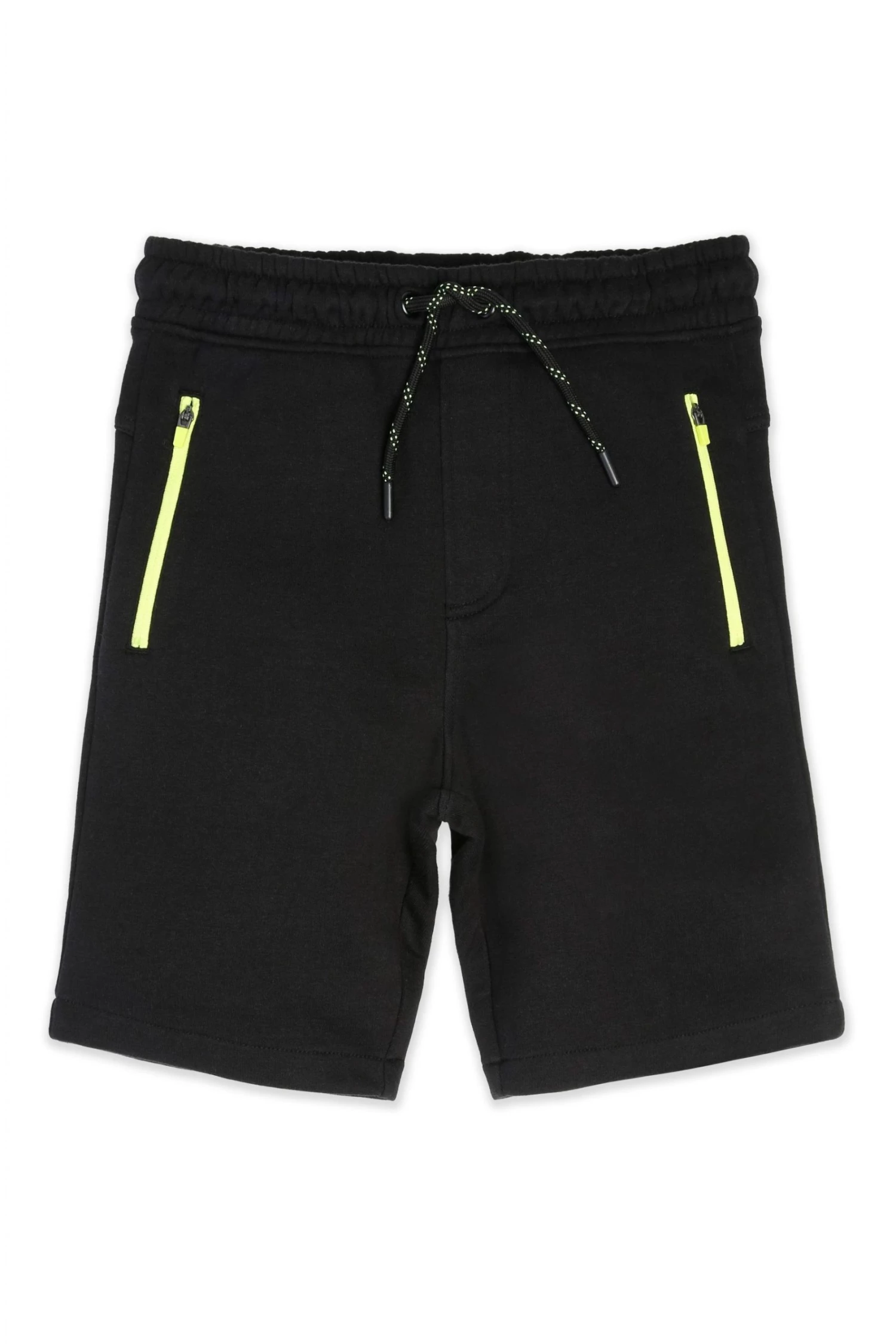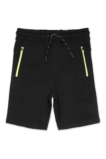 These black cargo style sports shorts contain recycled polyester and are finished with an elasticated drawstring waist and pocket detailing.