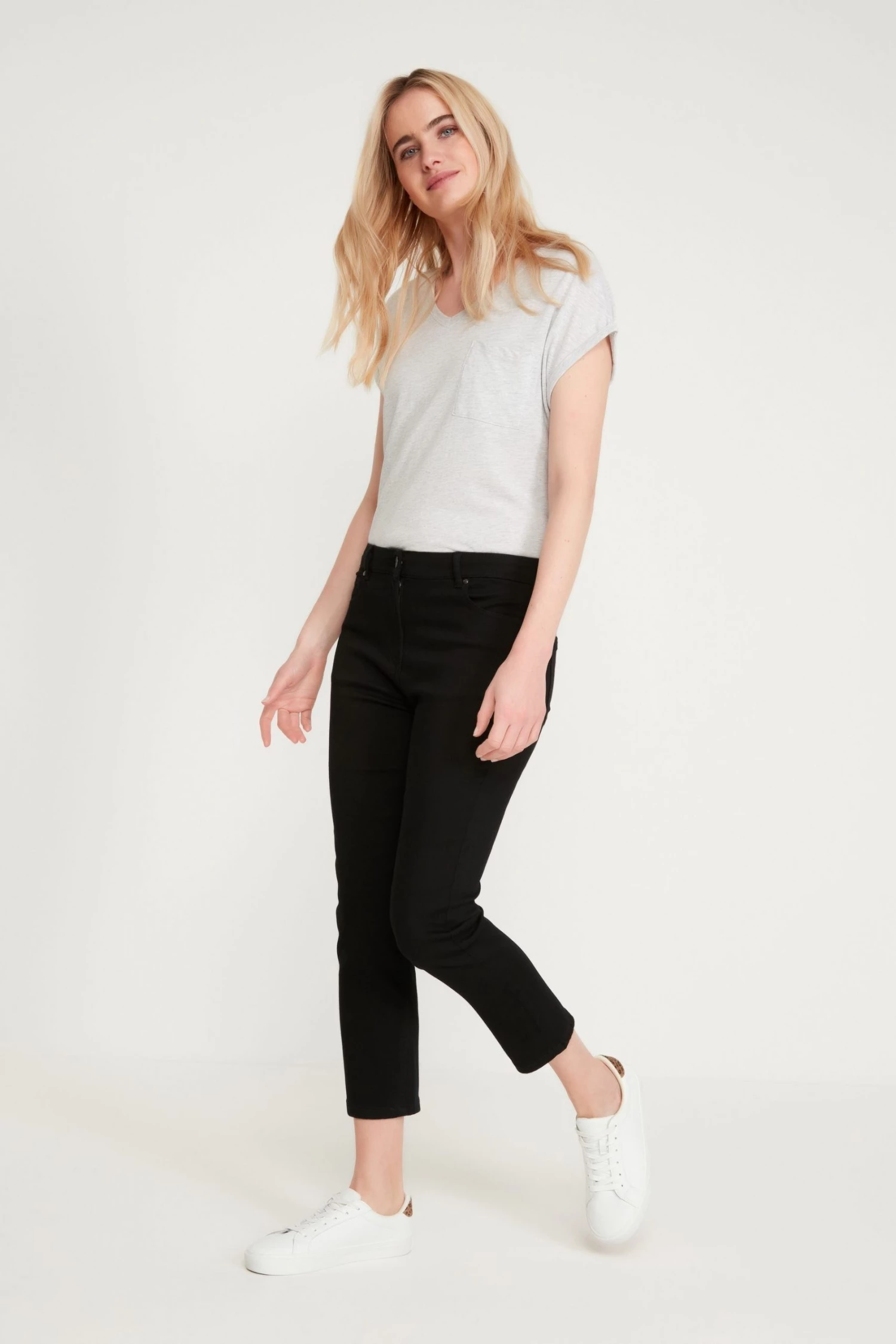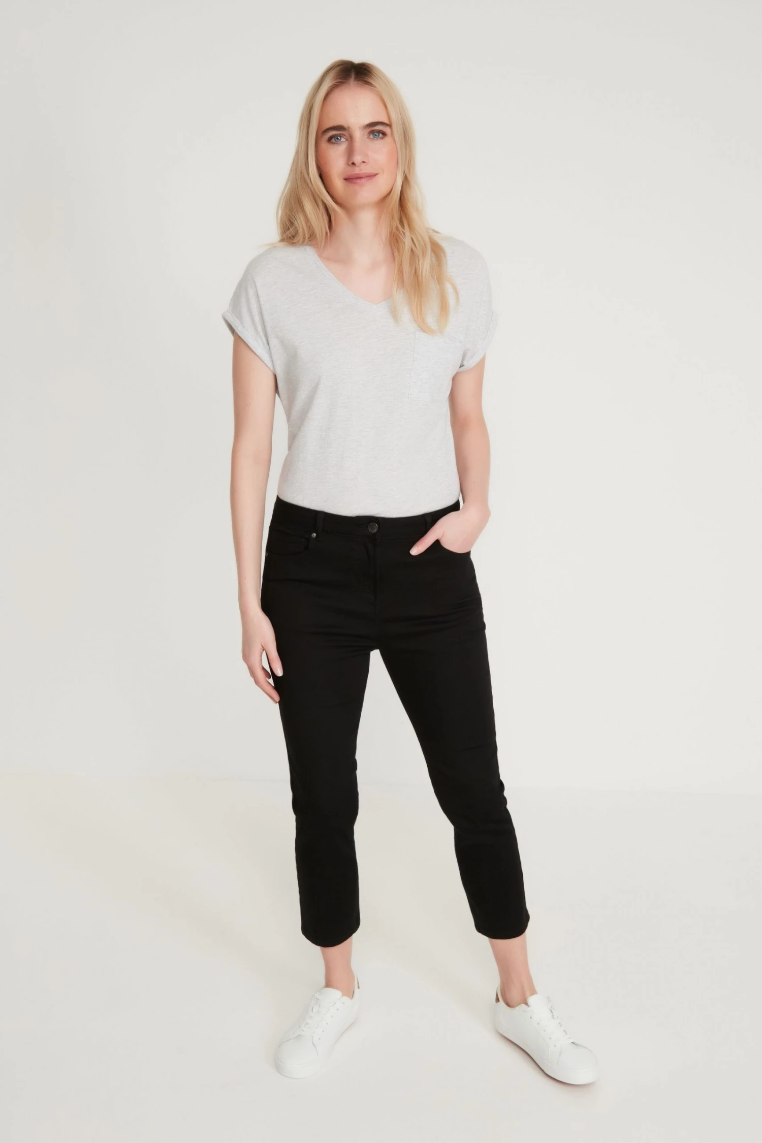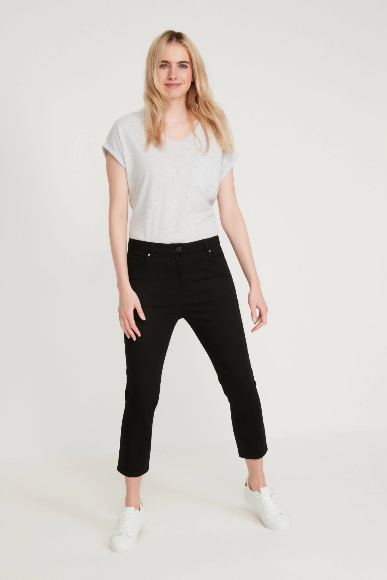 Coming in a supersoft fabric, these jeans feature a cropped length, front and back pockets and a zip/button fastening. Pair with a floral blouse for an on-trend spring/summer look!