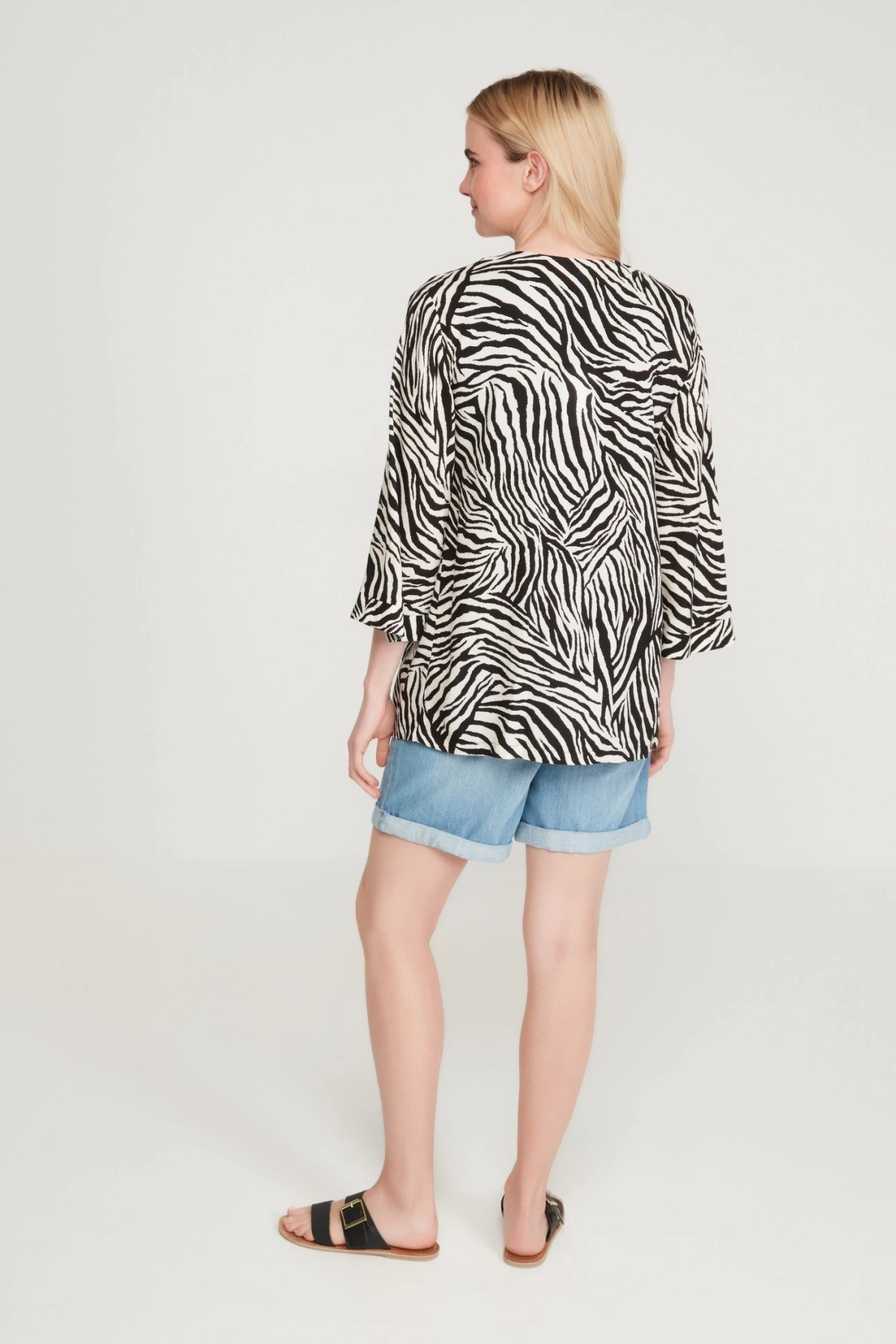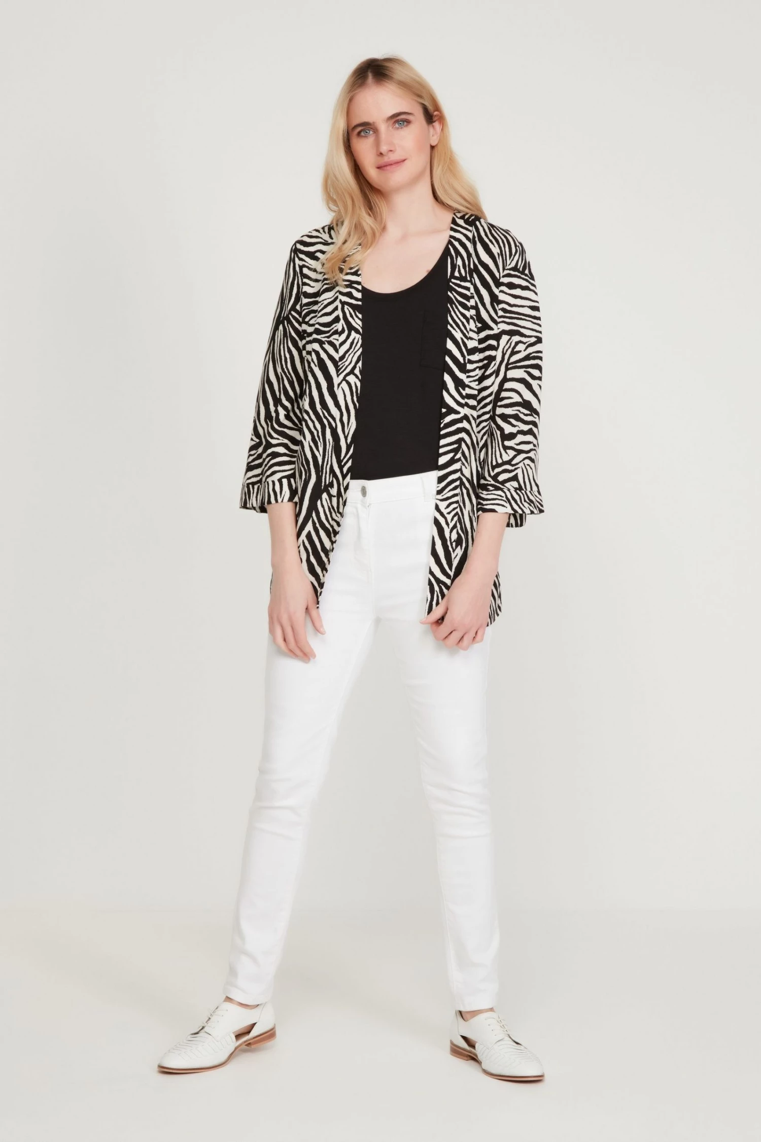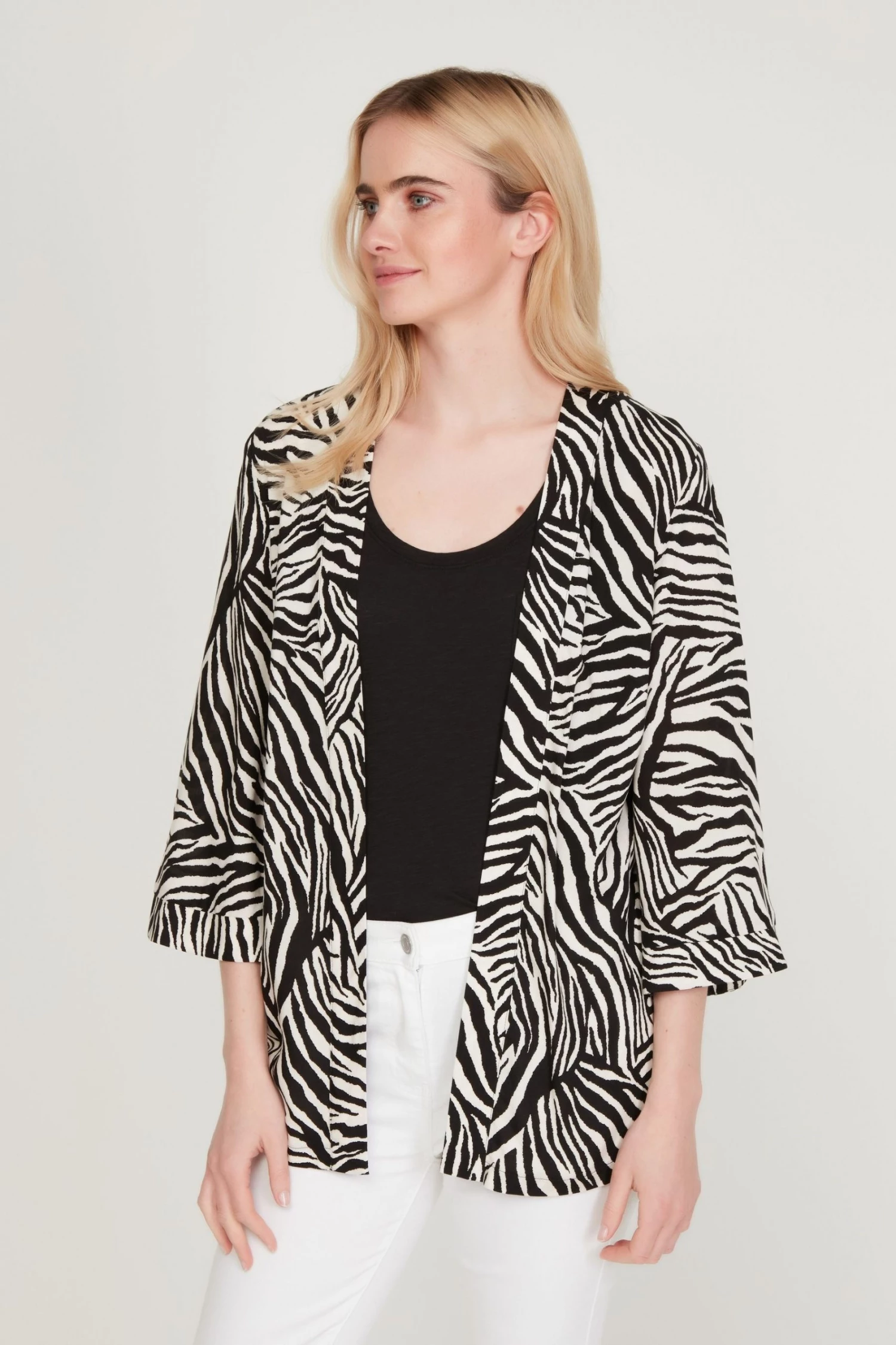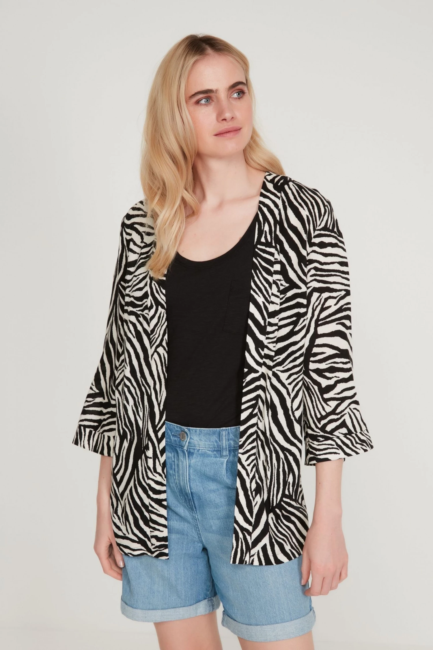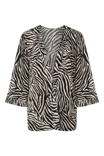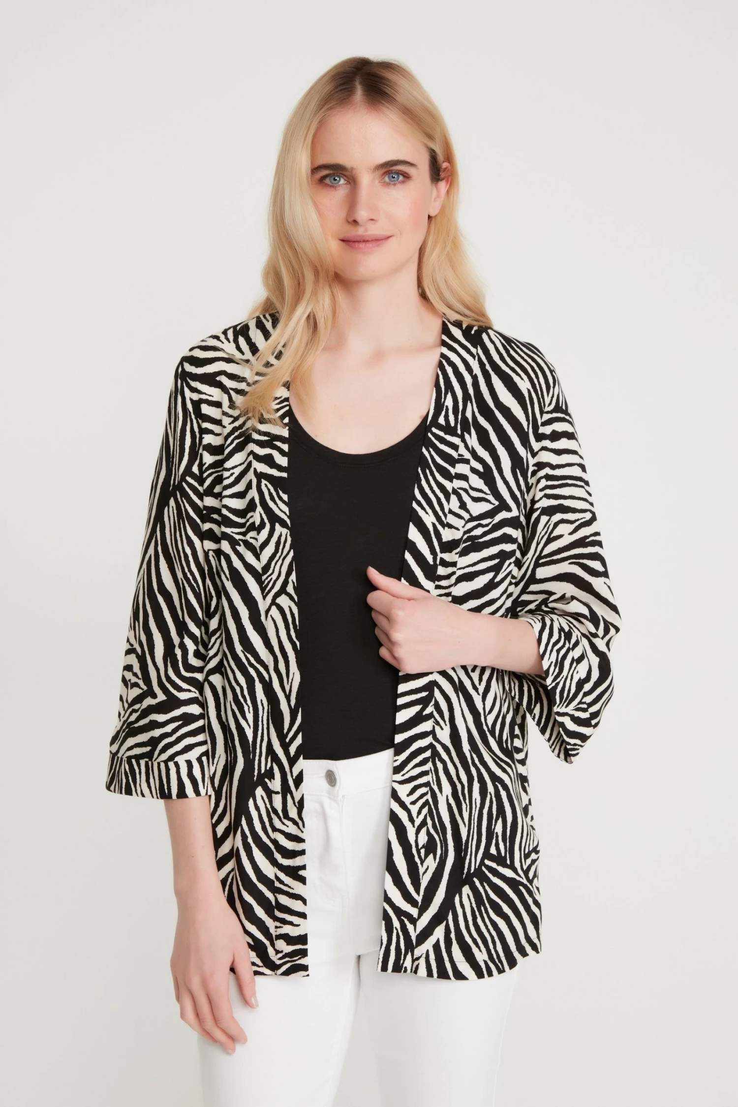 Liven up any outfit with this Zebra print kimono. Cut with wide half sleeves and an open front, this kimono is the perfect layering piece to see you through the upcoming seasons.