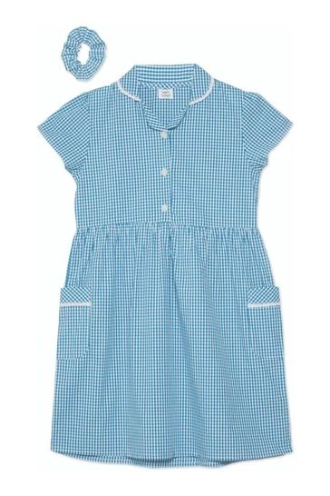Get her back to school ready with this cute gingham dress. In a check design featuring short sleeves, button detailing, pockets and a matching hair scrunchie, she will be the smartest dressed in the class.