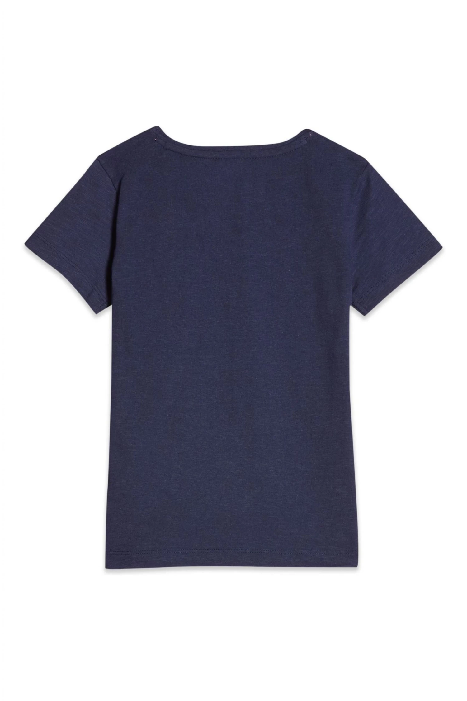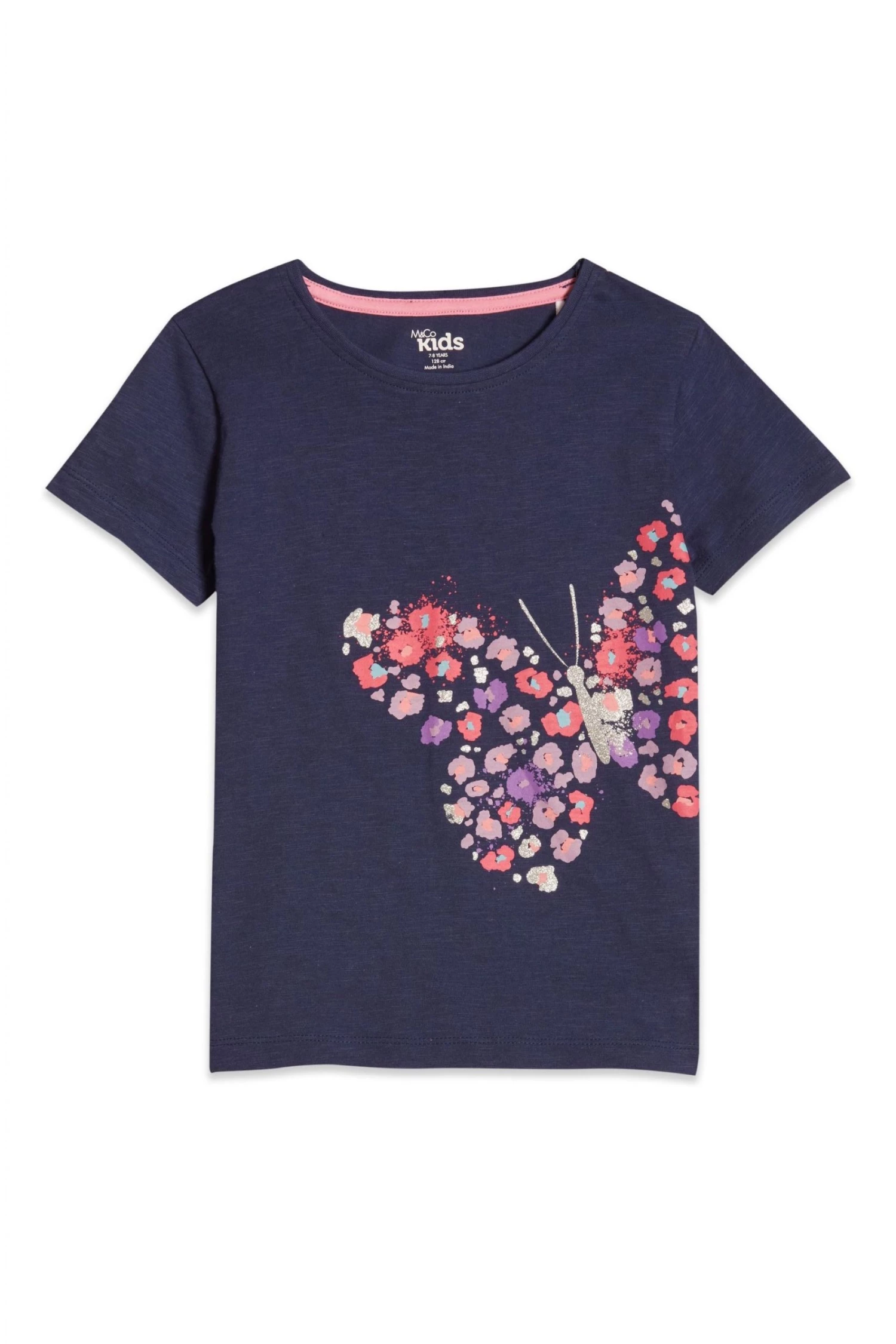 This girls’ navy T-shirt features short sleeves, a crew neckline and floral butterfly motif.