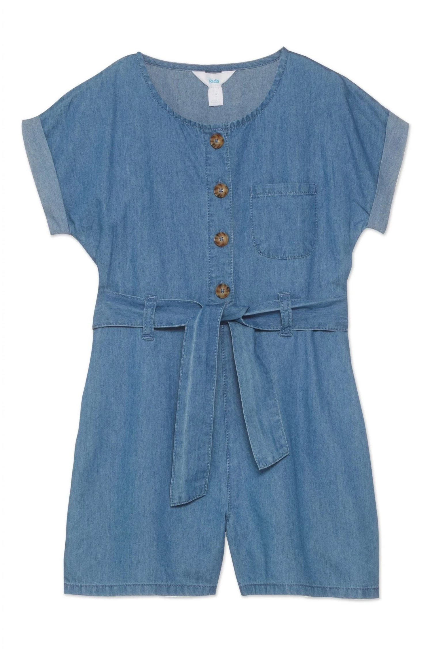 A summer must have for any little girl. This denim playsuit is fun and stylish, with a button down front and tie waist, this can be worn with trainers or sandals.