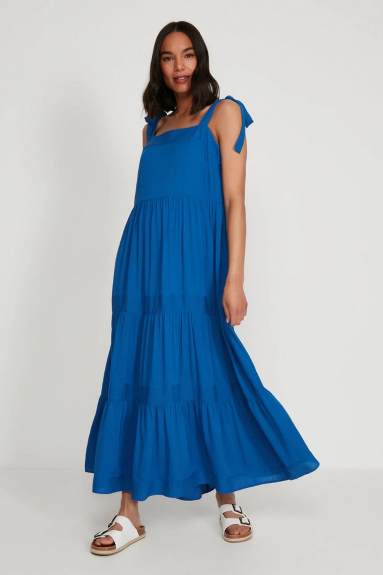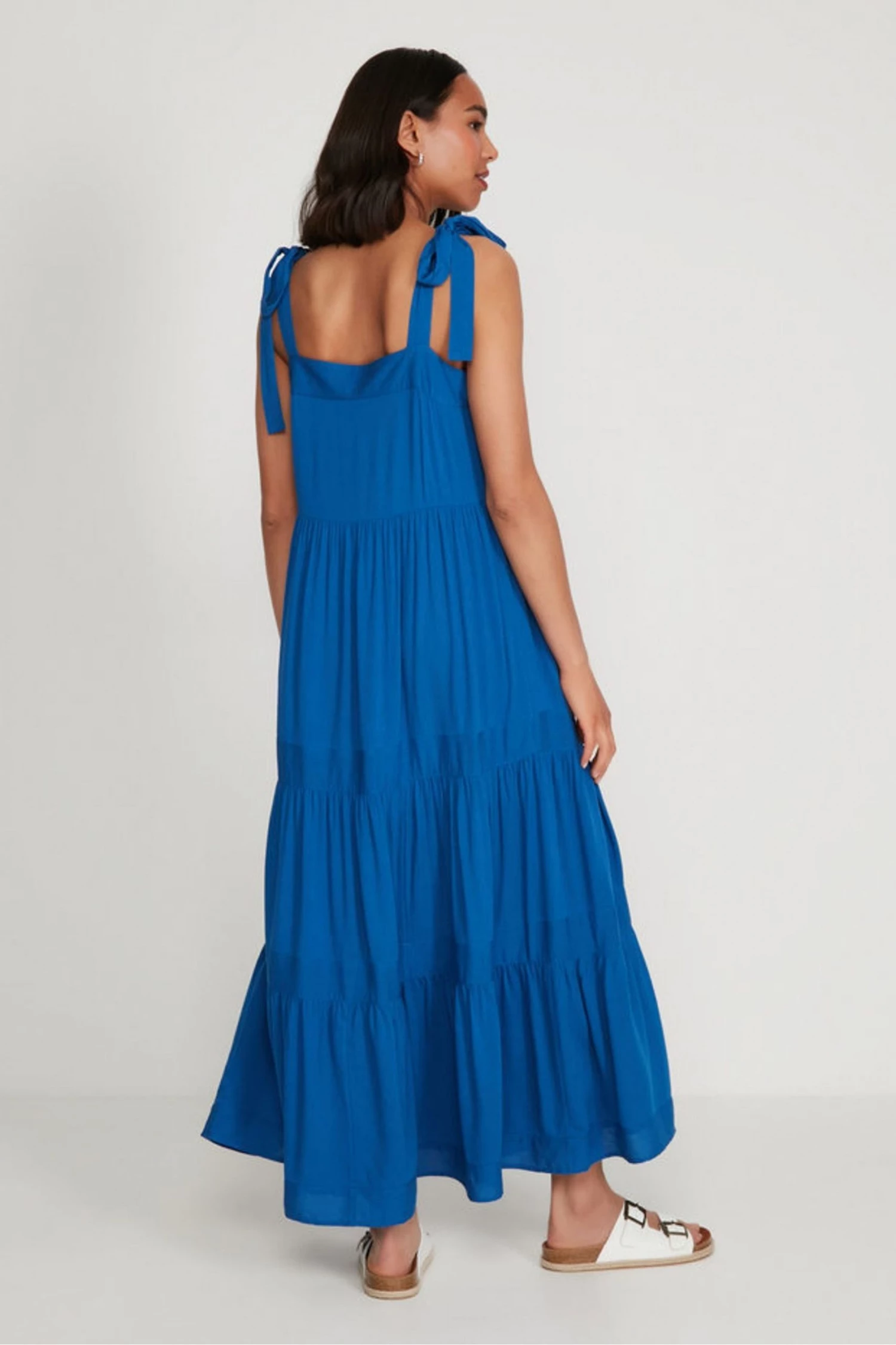 M&Co Blue Cheesecloth Tiered Midi Dress