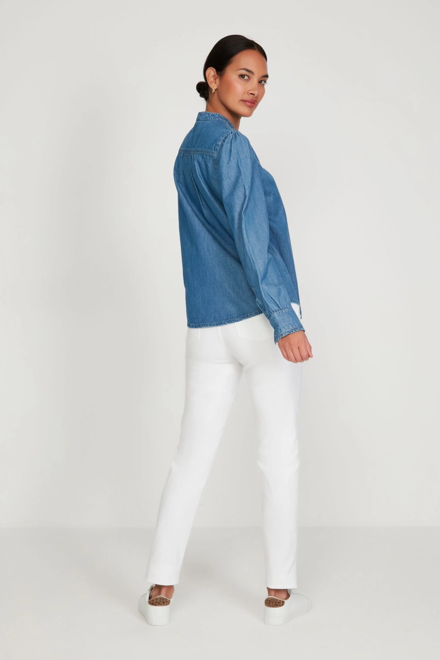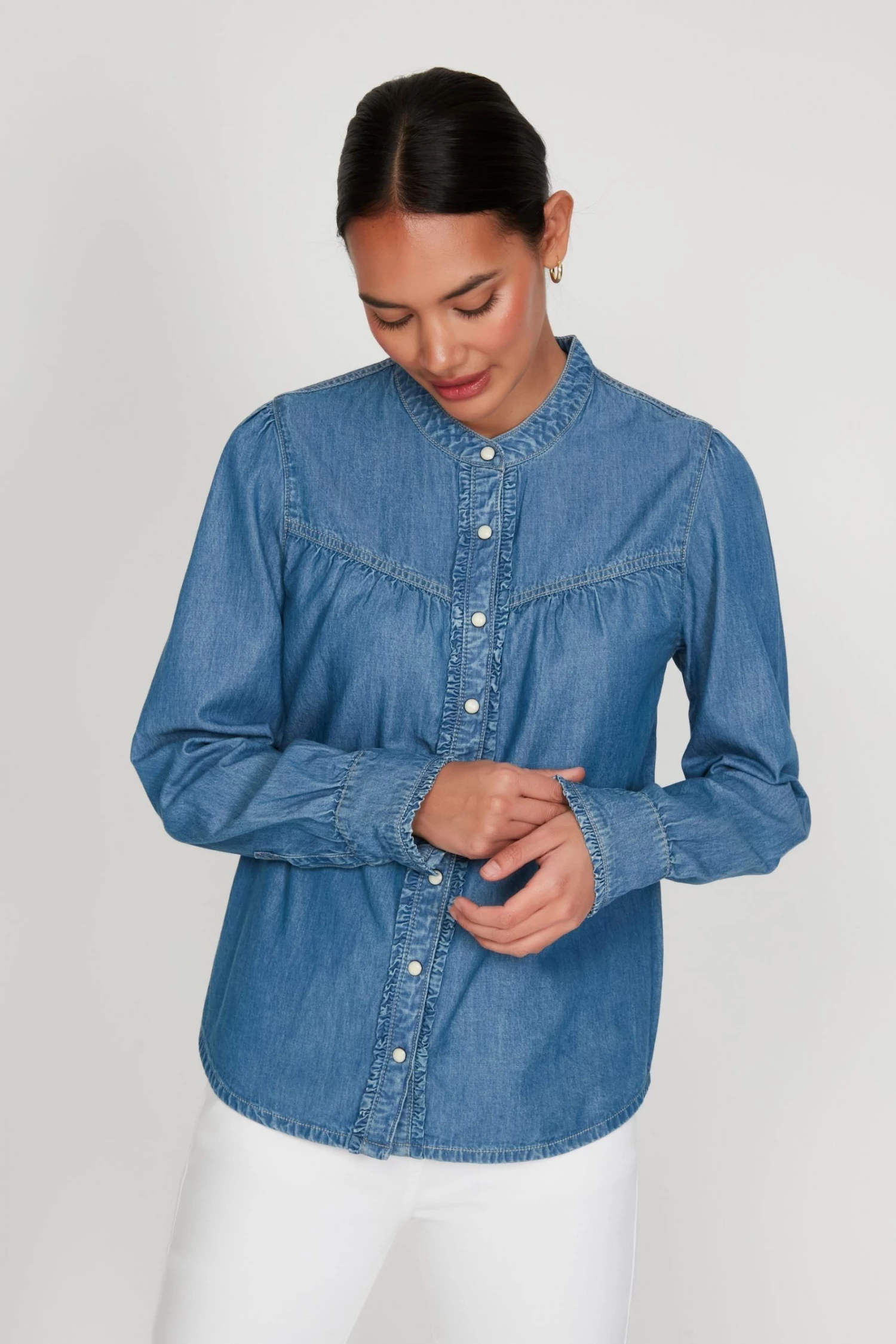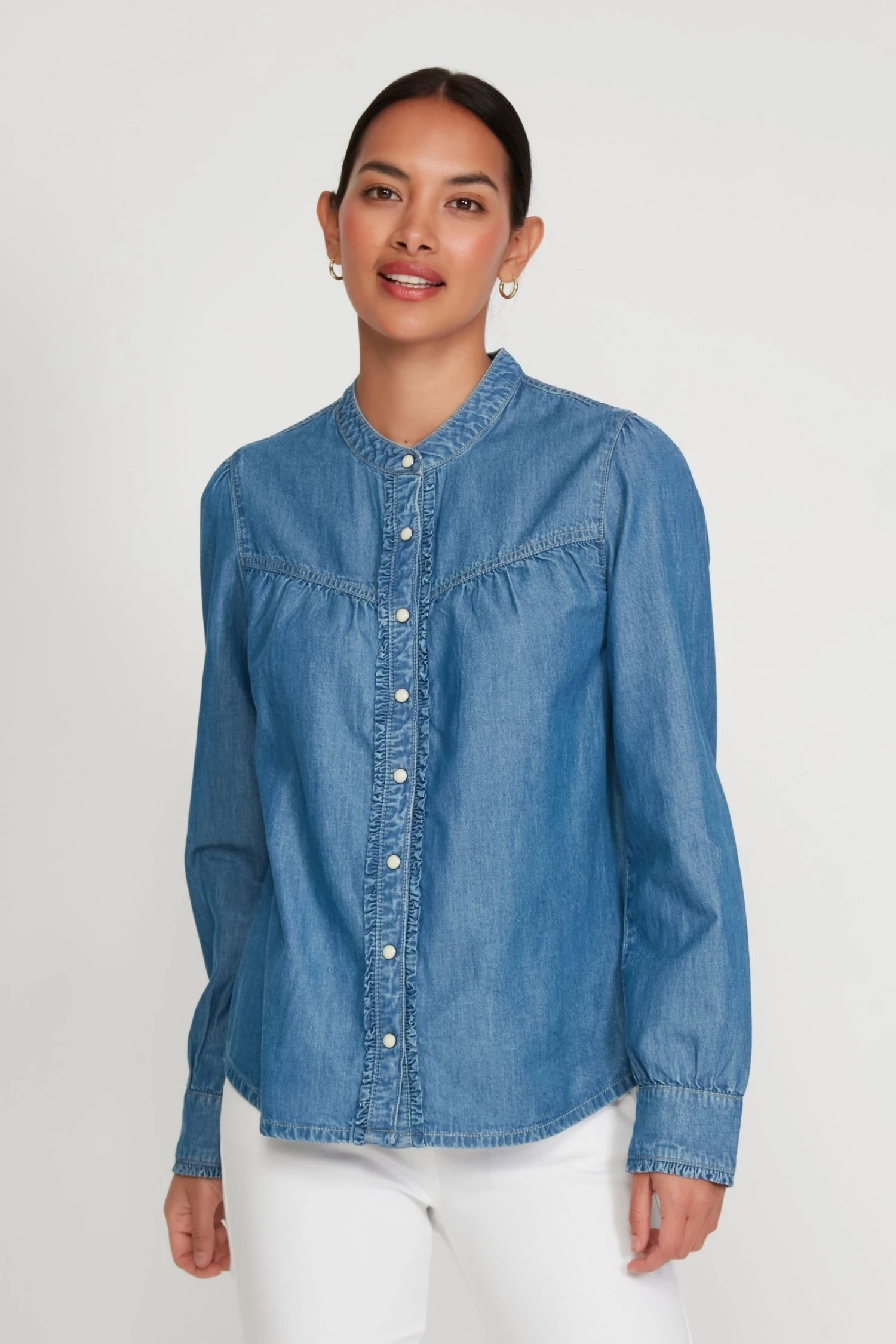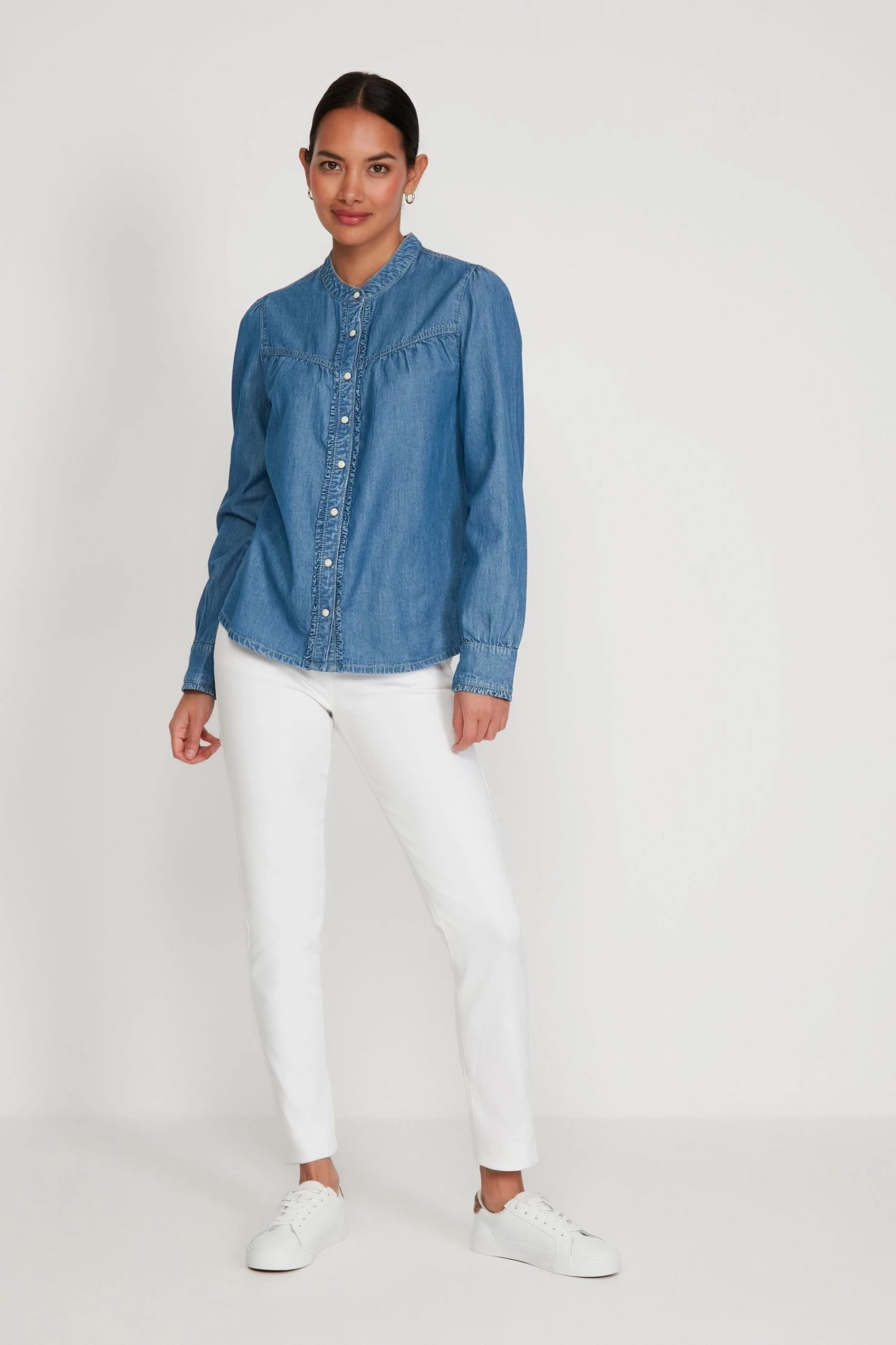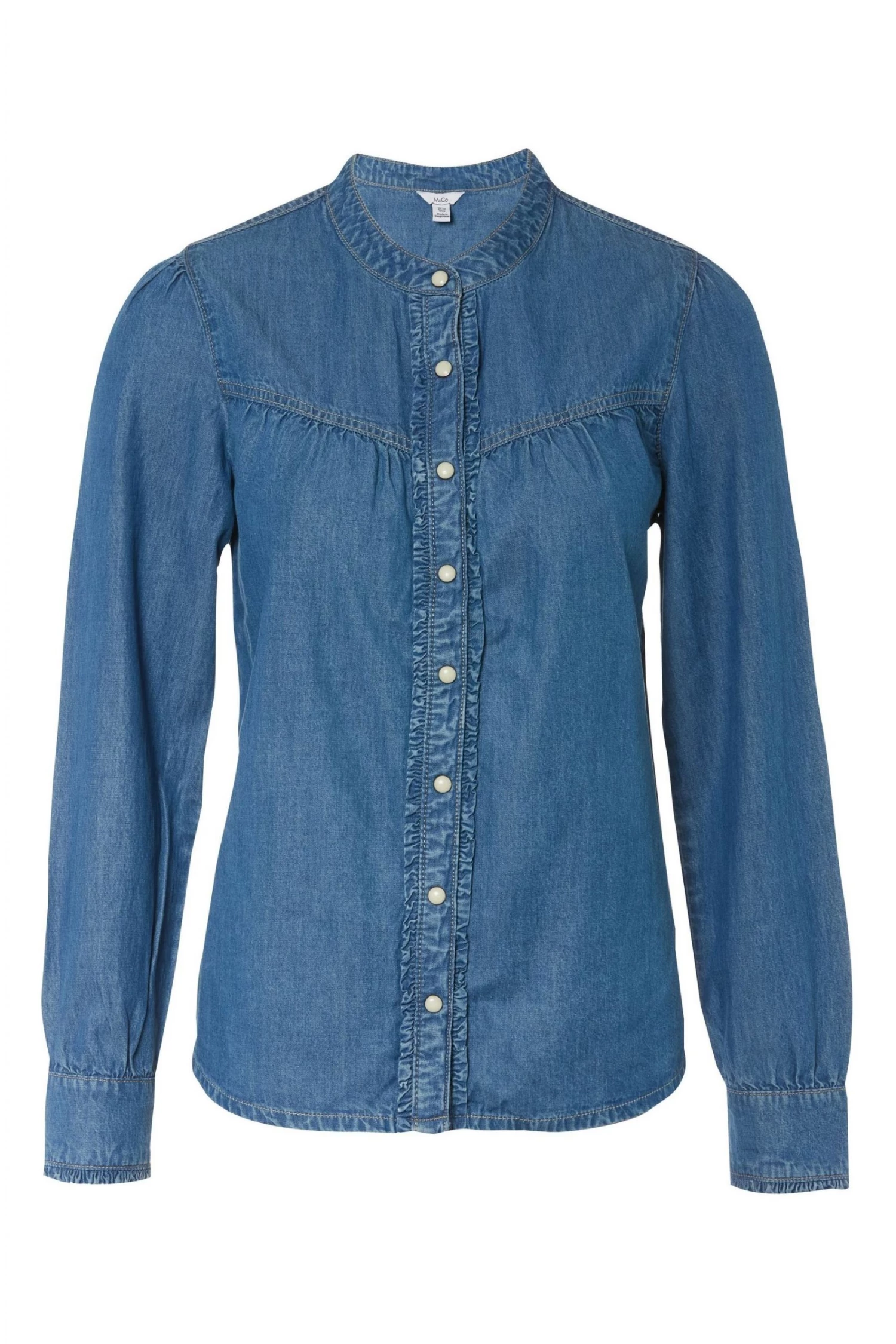 M&Co Blue Denim Frill Shirt