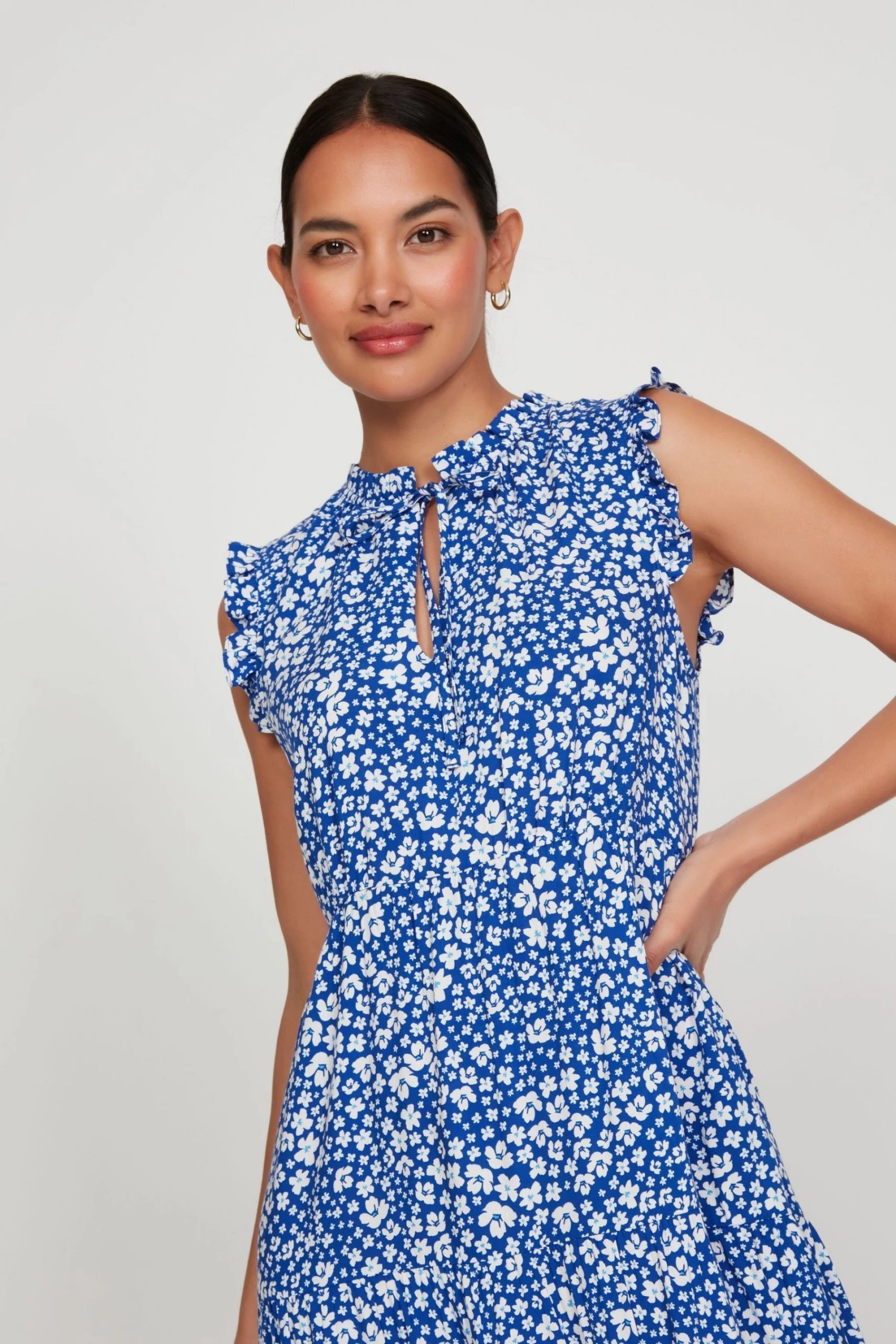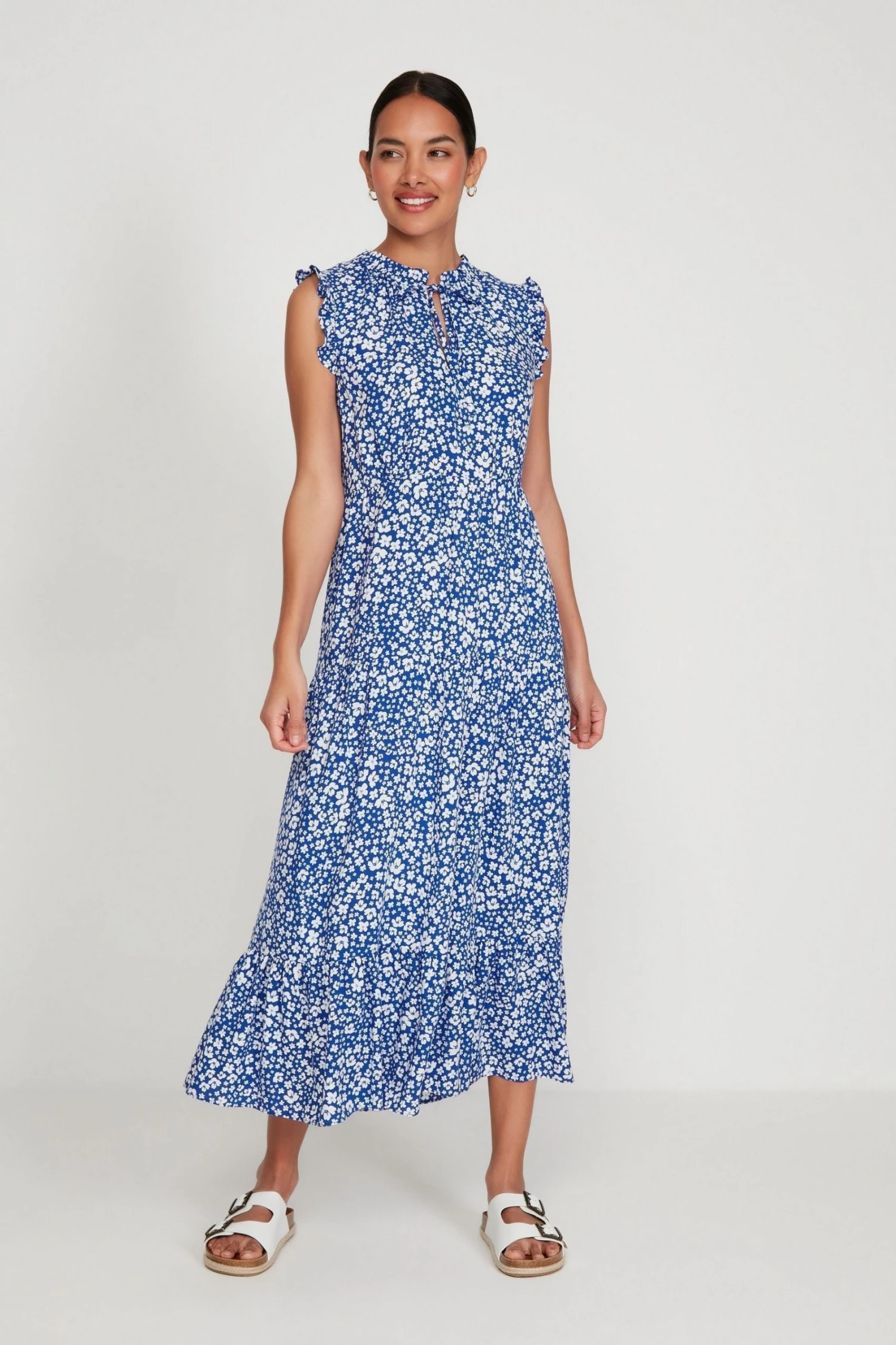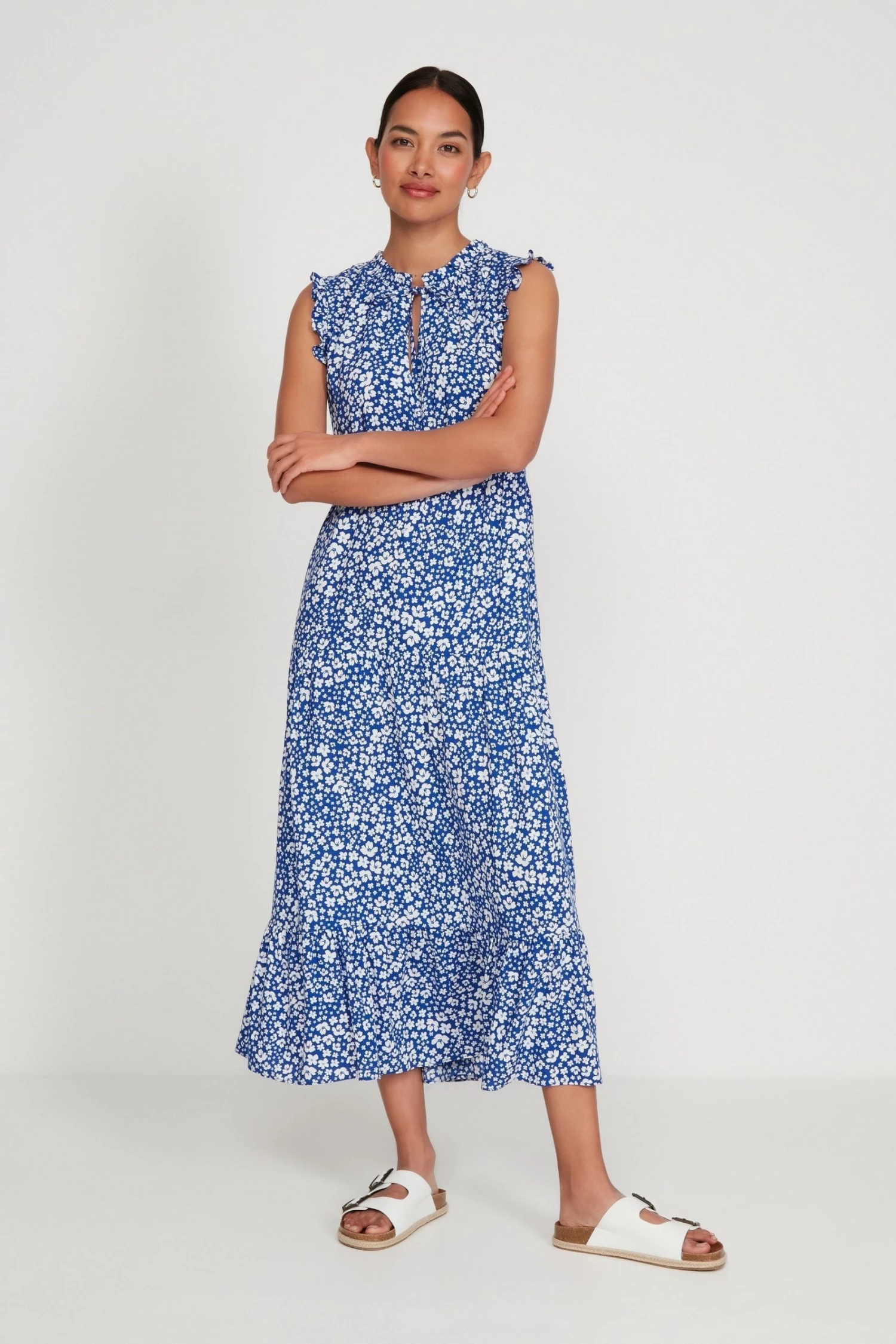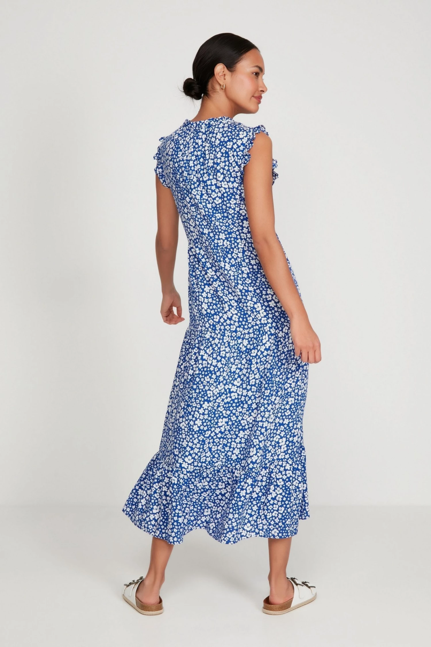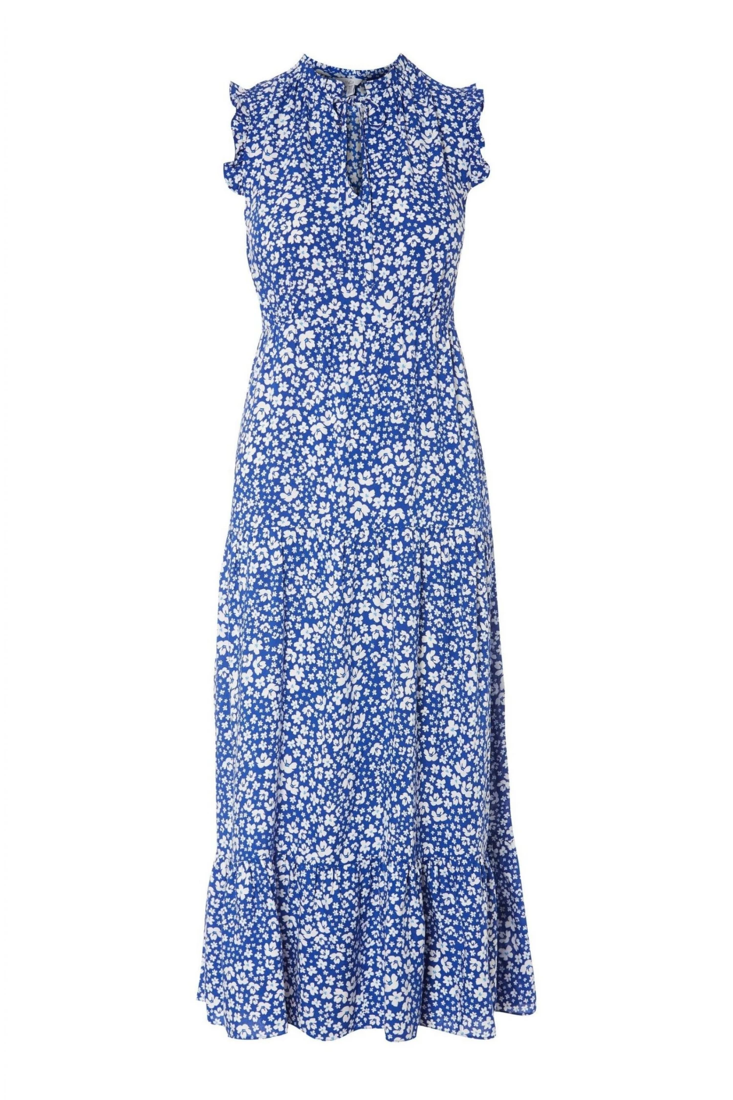 M&Co Blue Ditsy Print Tiered Midi Dress