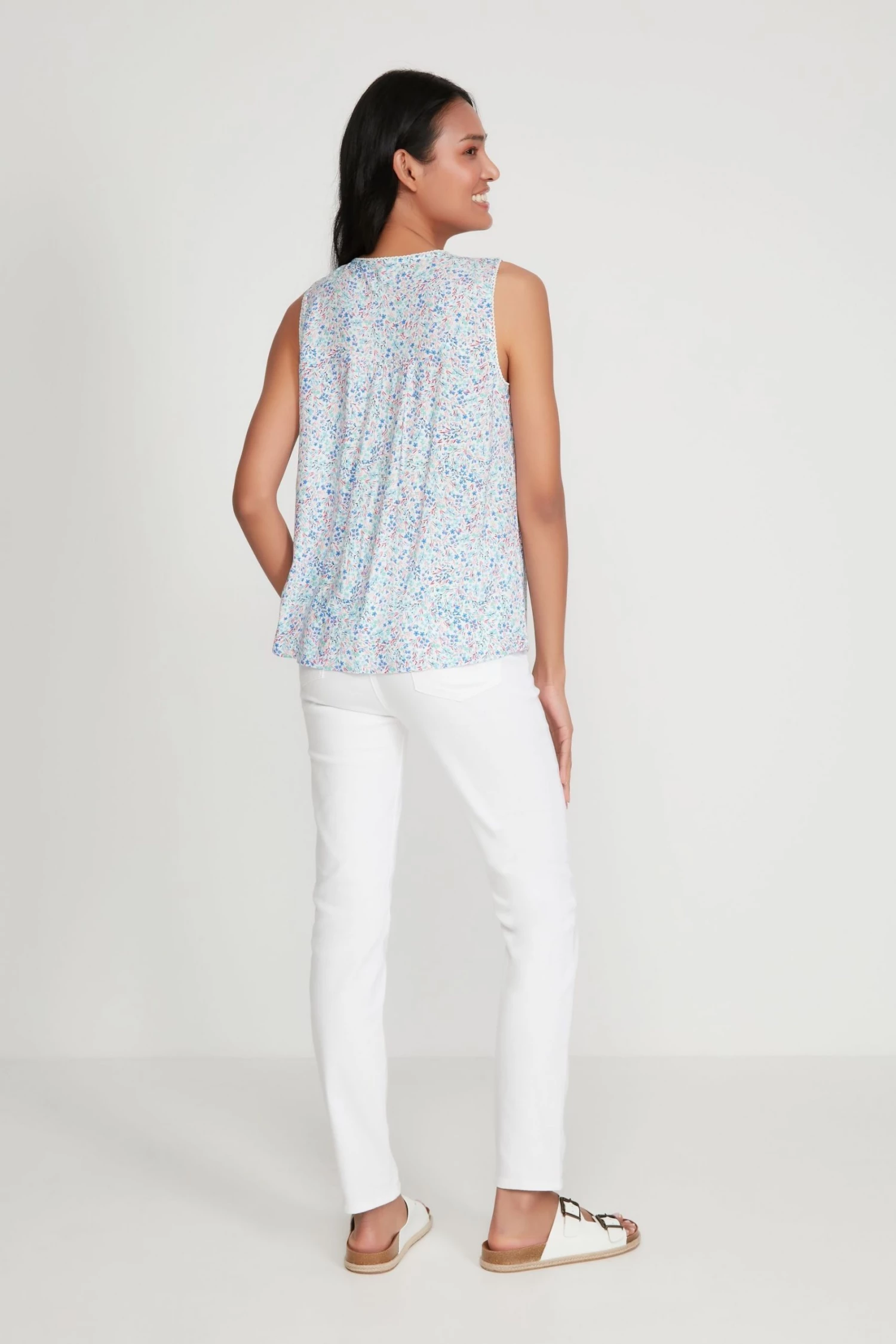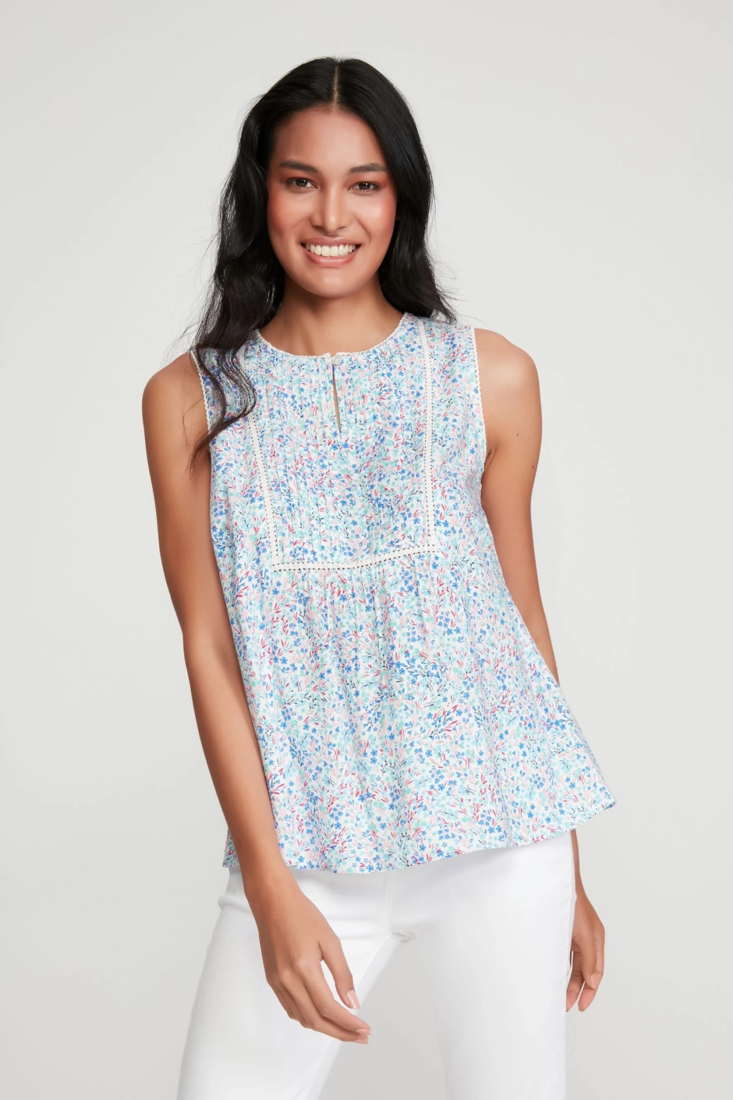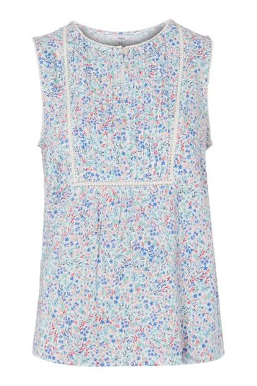 Freshen up your wardrobe with this floral lace shell top. This sleeveless top is perfect for the warmer months, style with denim shorts and trainers for the perfect summer look.