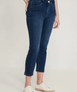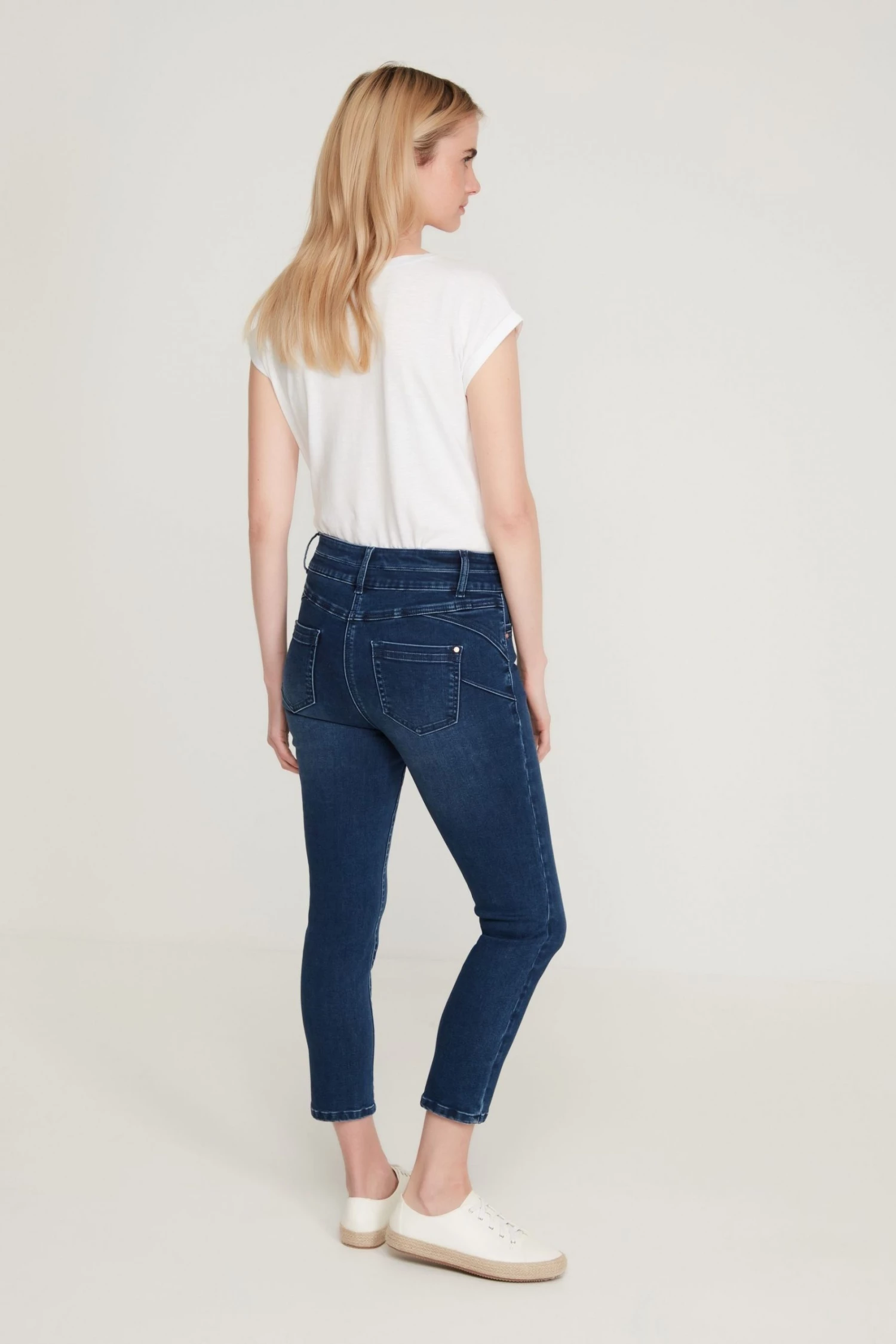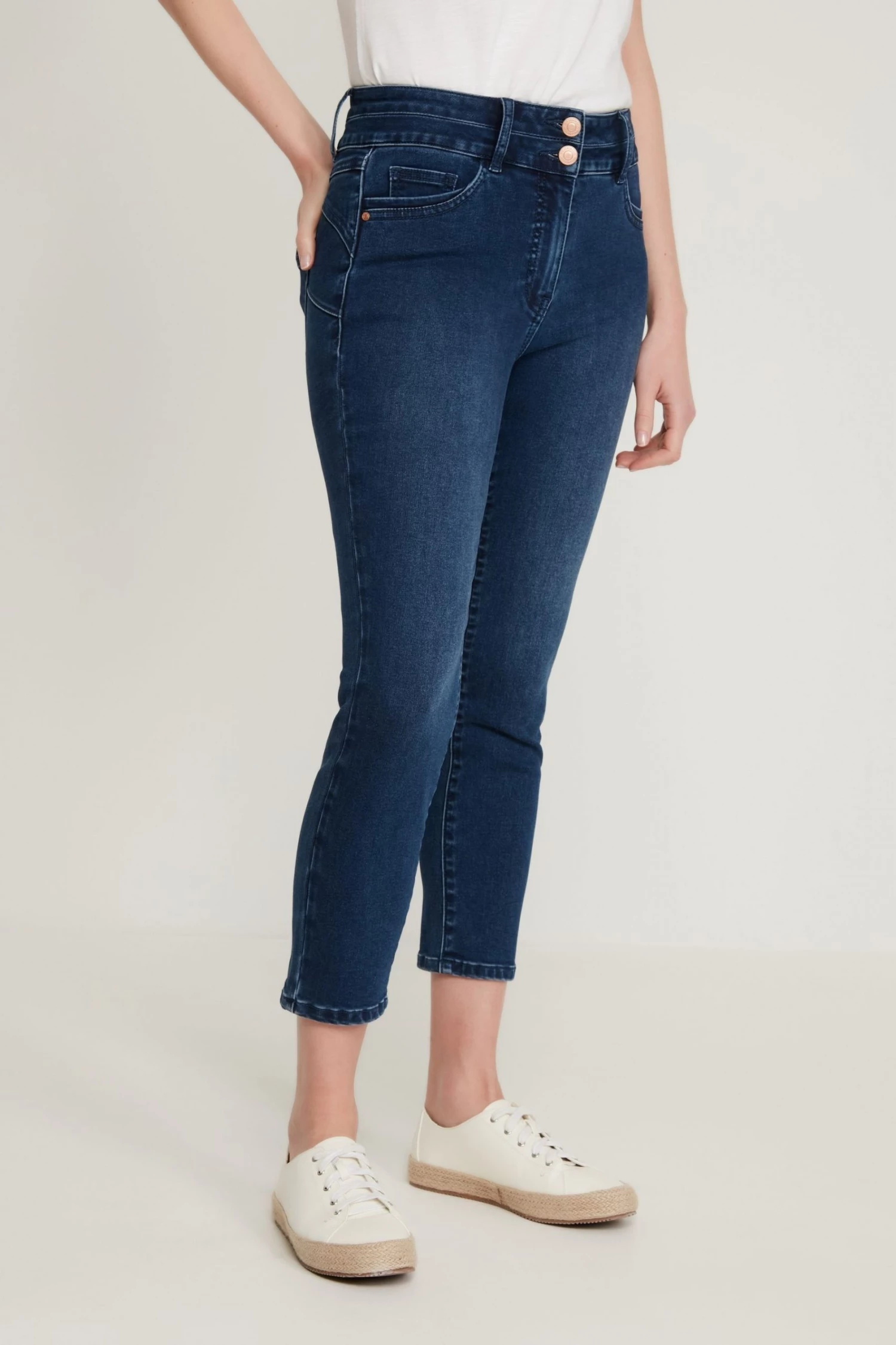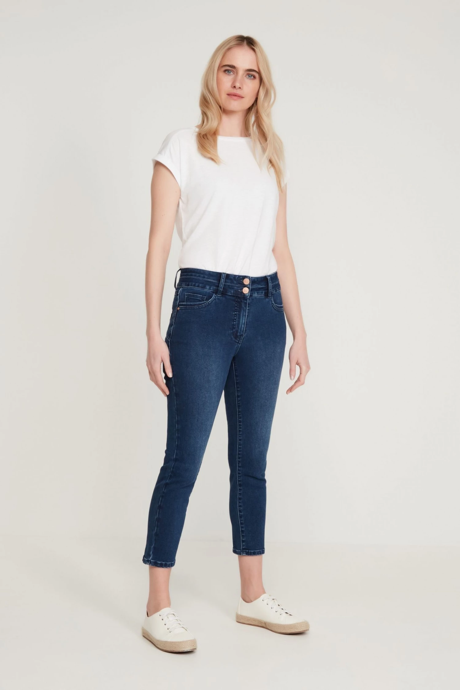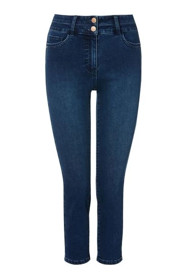 These cropped jeans are fitted across the waist with a mid-rise and shaped around the hips and thighs to showcase your curves. Finished with a double button fastening, pockets and belt loops.