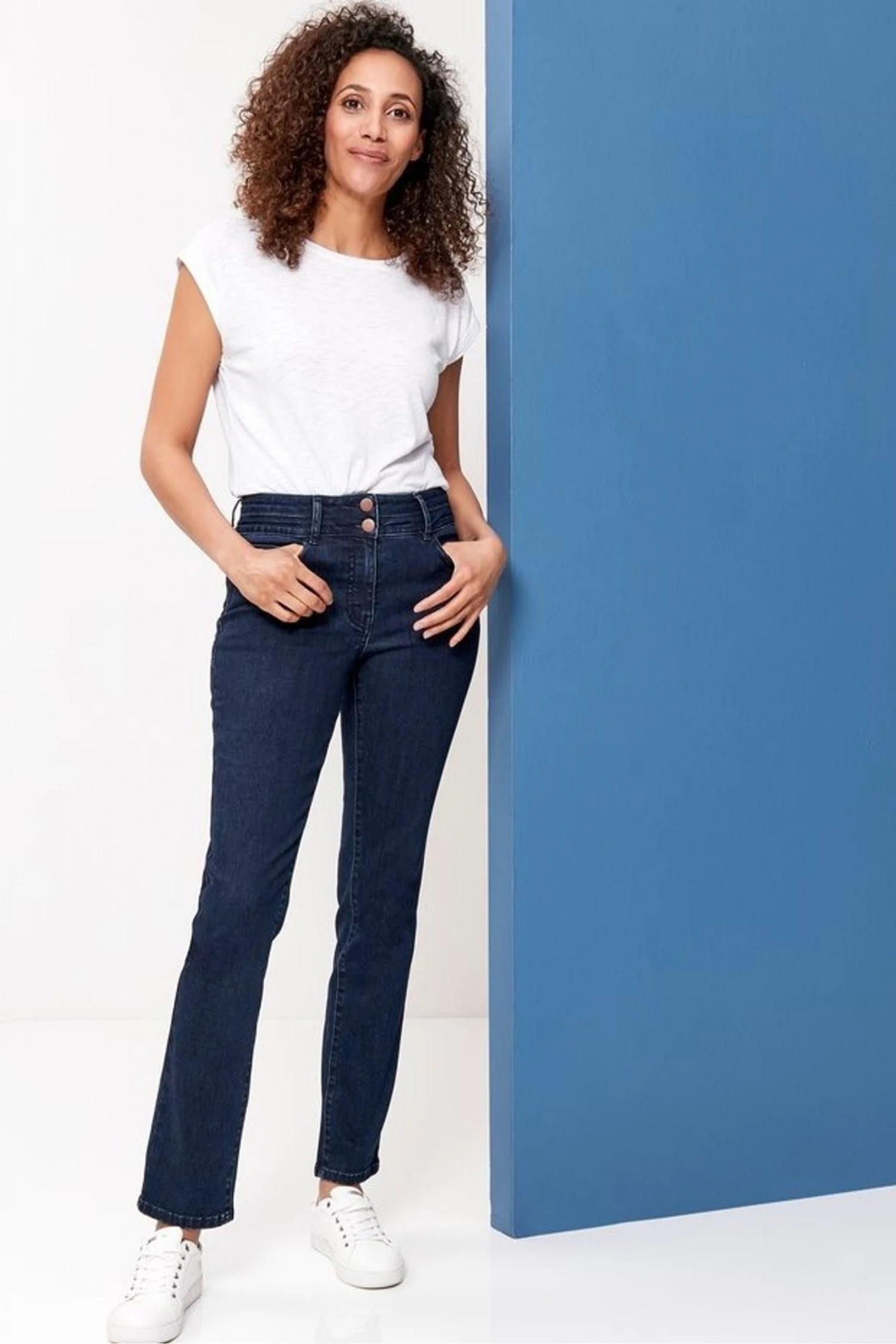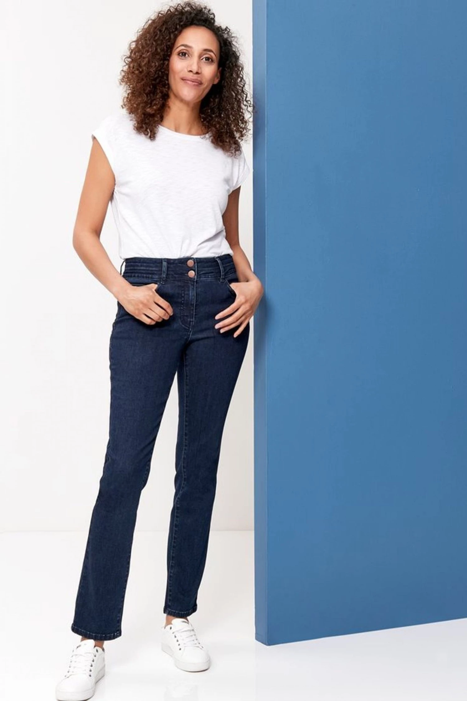 These straight jeans have sculpting seams and stitching to lift and shape your legs and bottom for a flattering finish. In indigo denim, they are perfect for any occasion.
