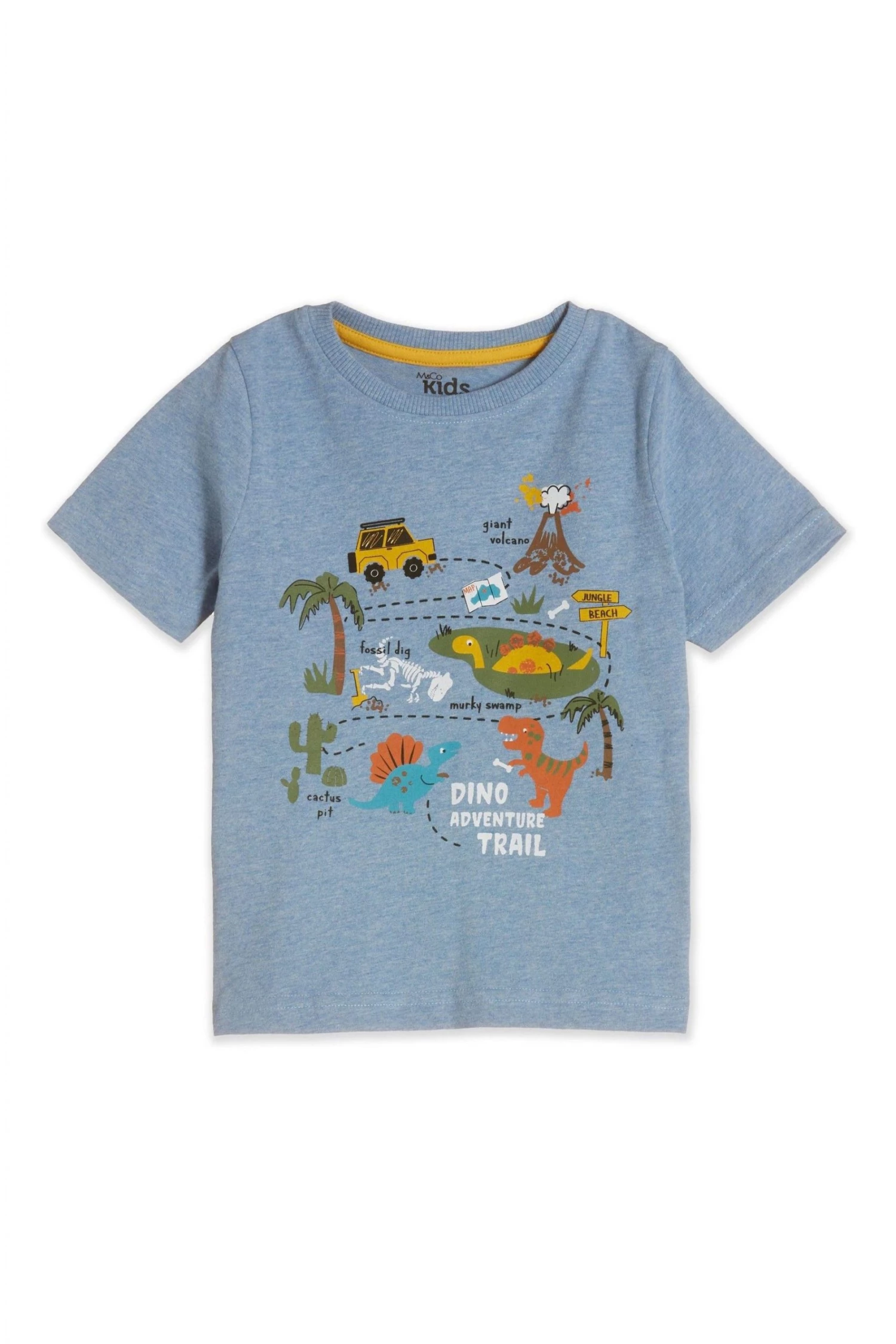 Perfect for all of his adventures, this blue marl short sleeve T-shirt features a dinosaur design on front. Pair with shorts and trainers for a summer’s day.