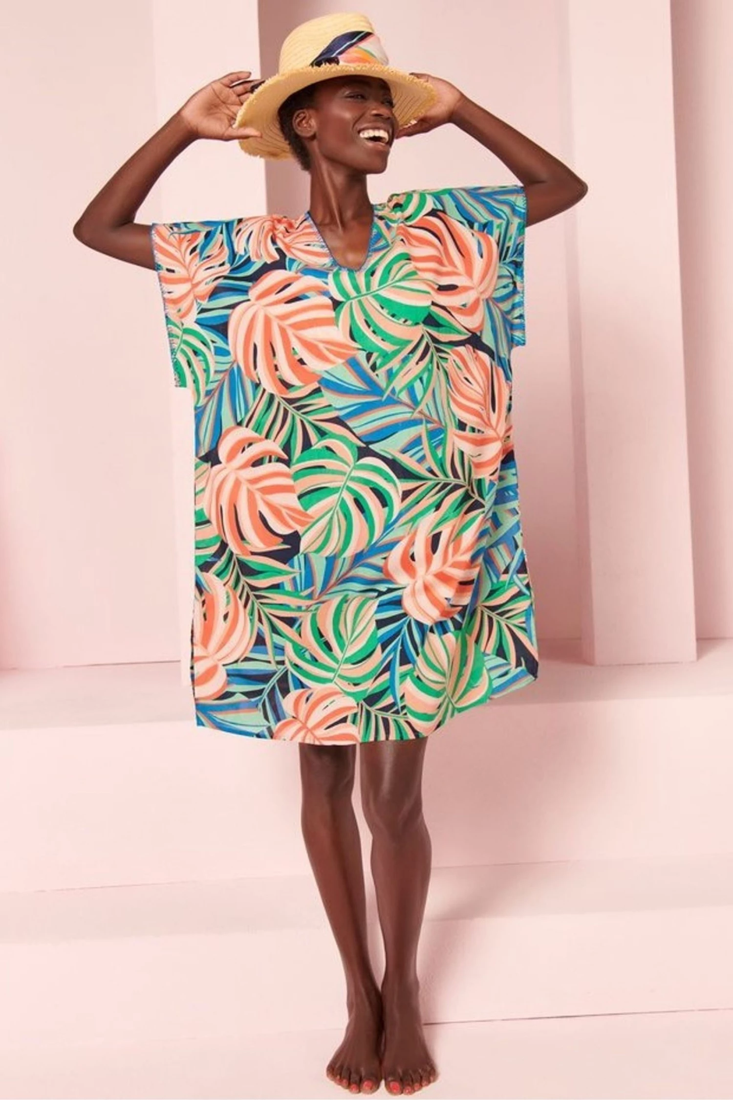 M&Co Blue Palm Print Kaftan