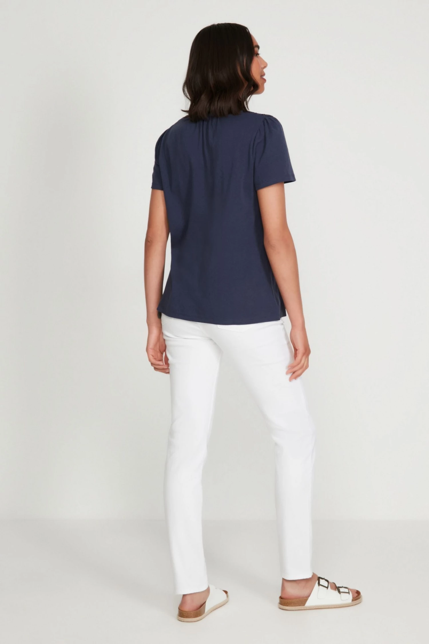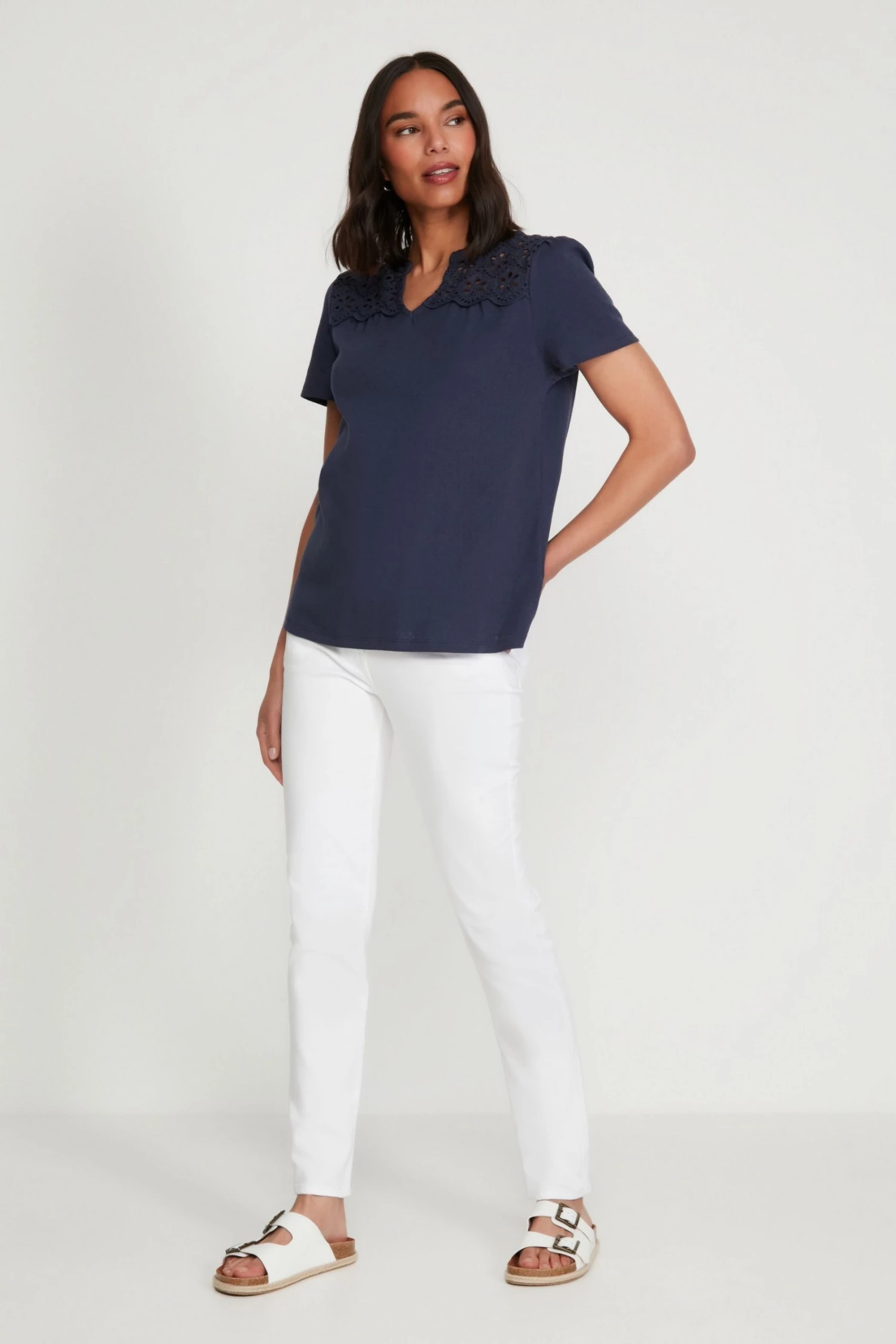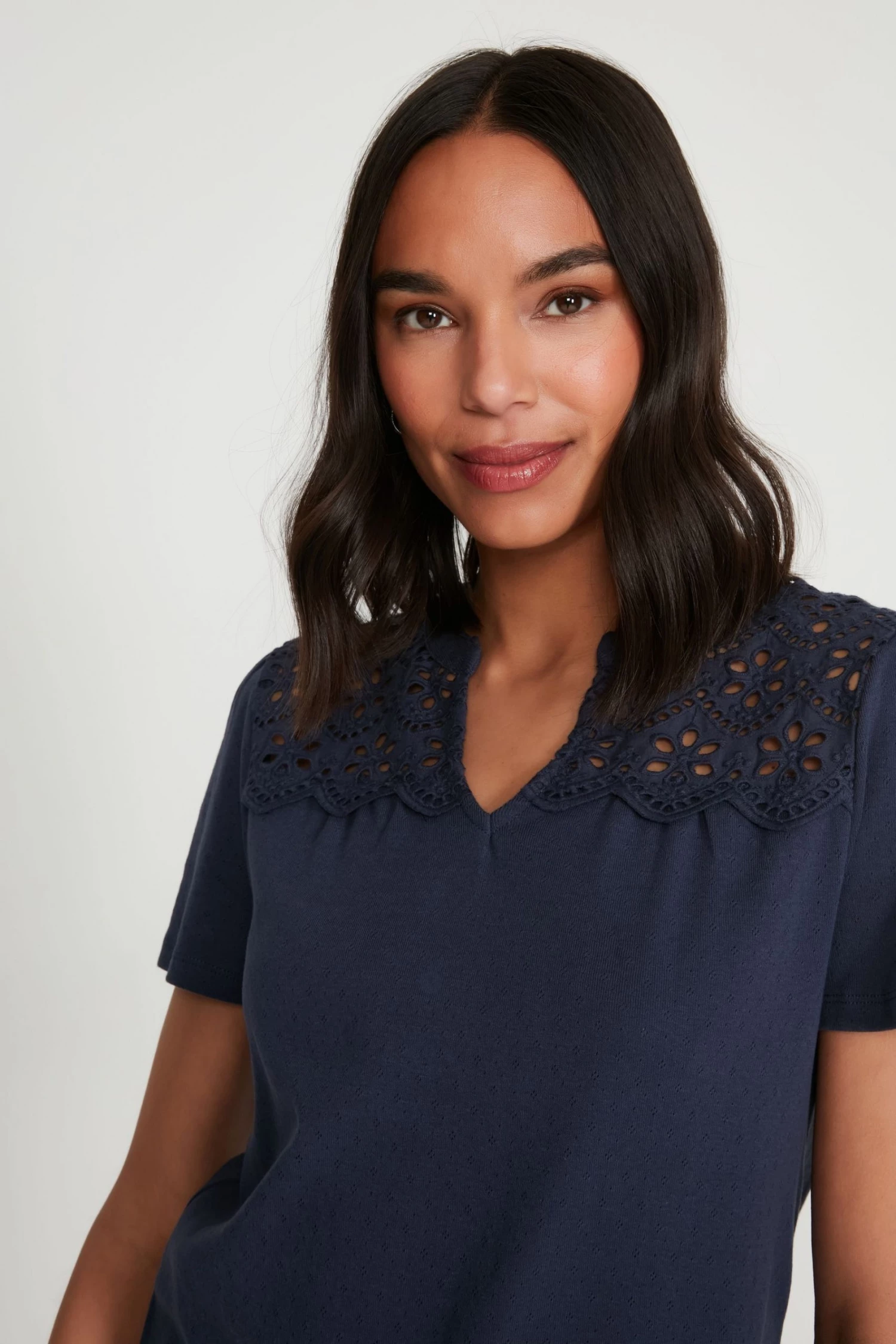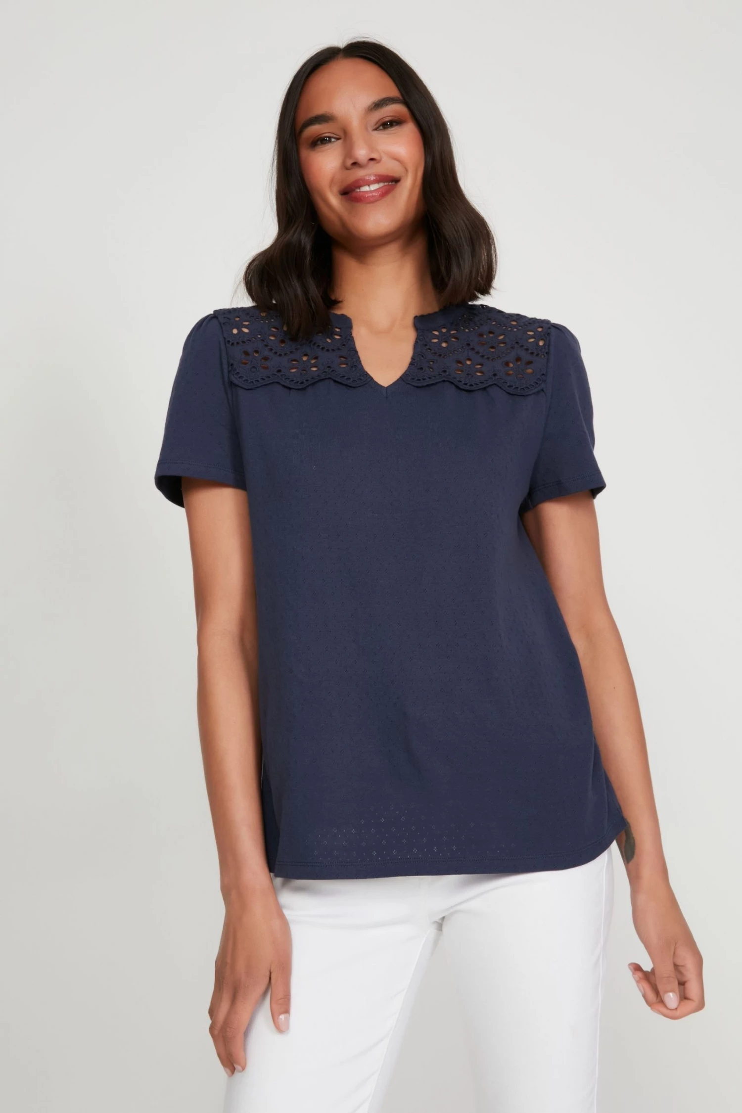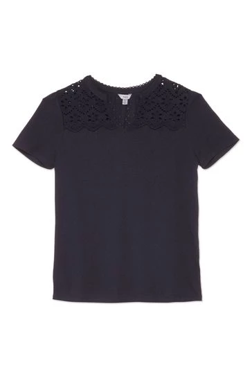 M&Co Blue Pointelle Lace Jersey Top