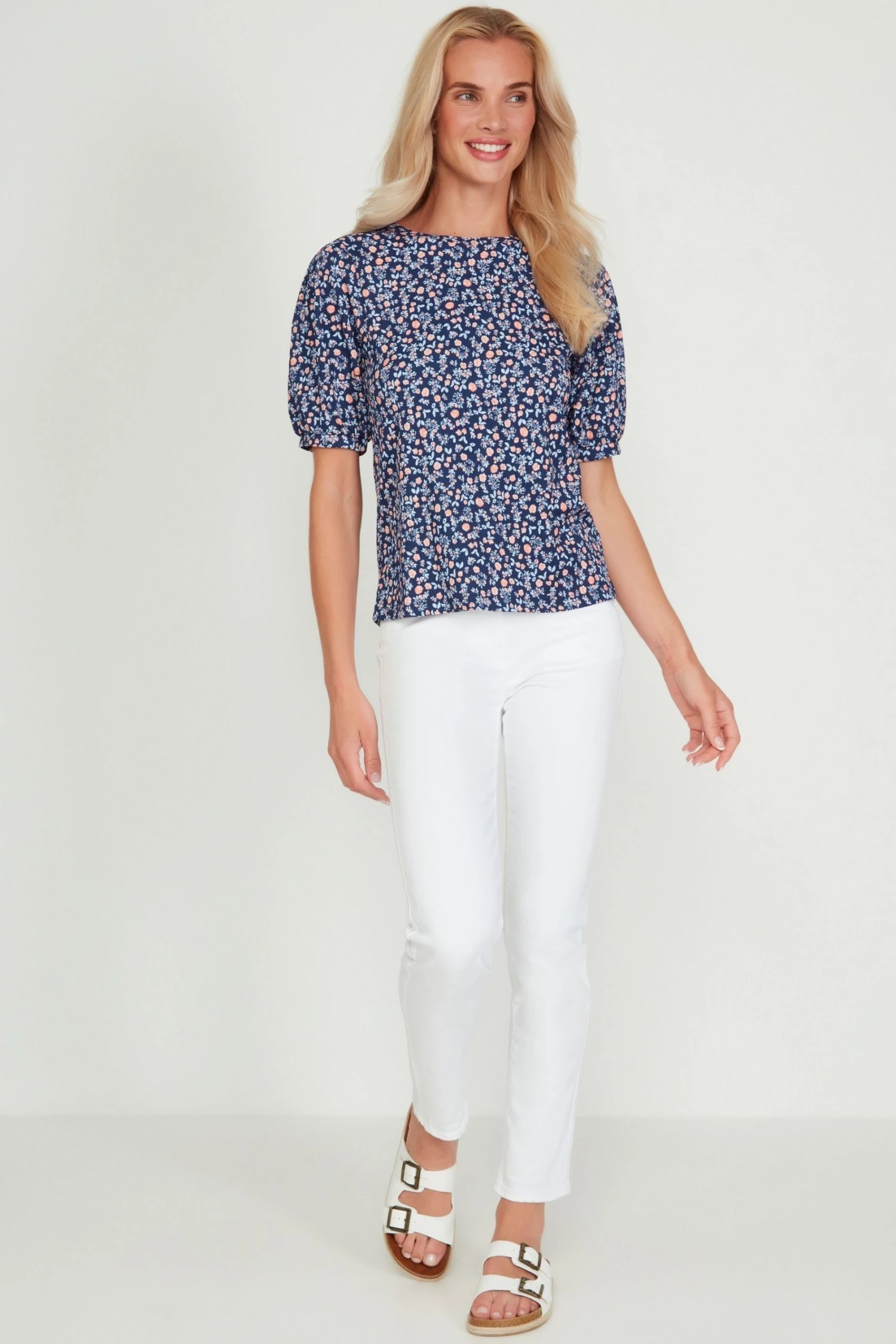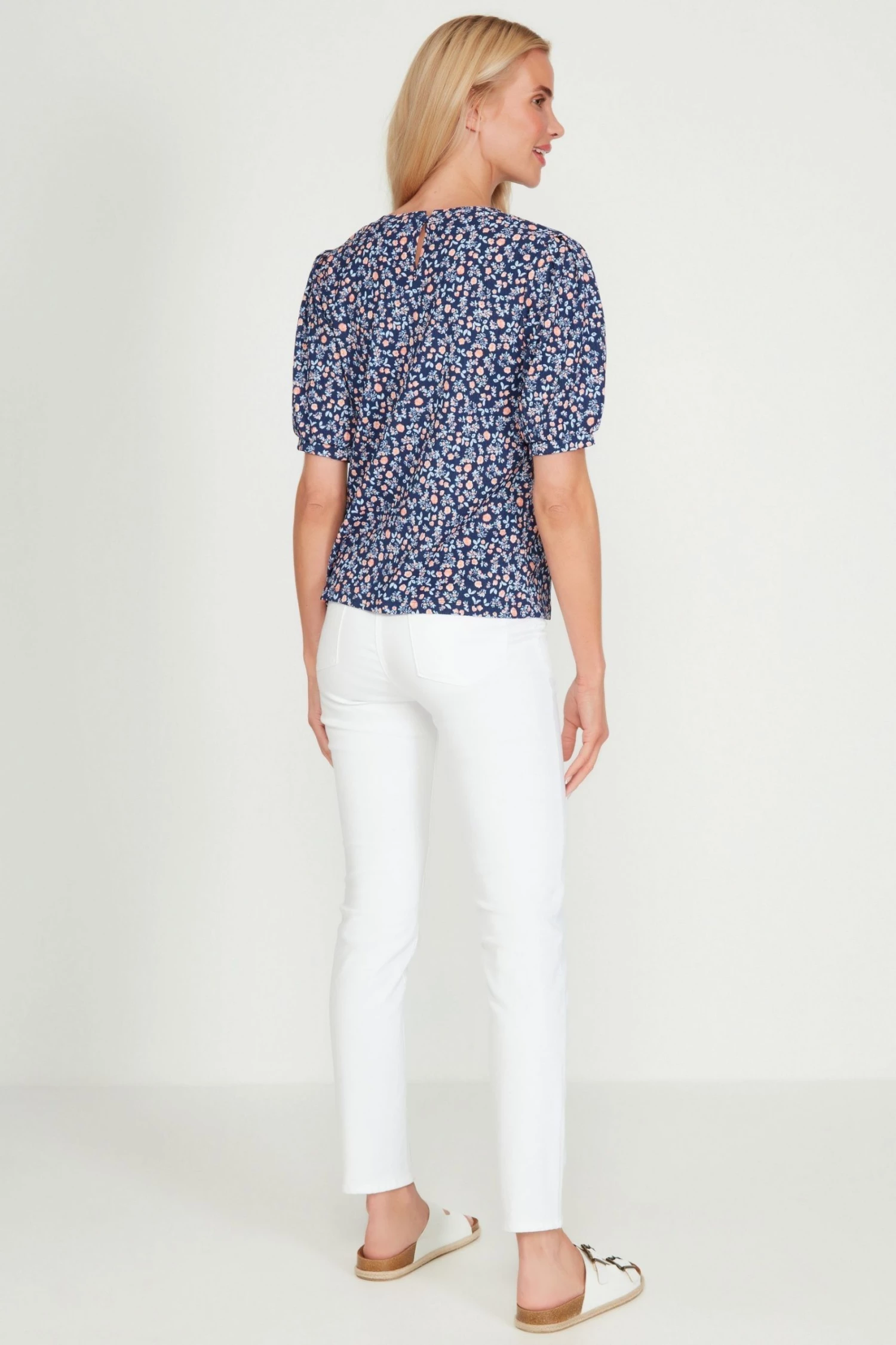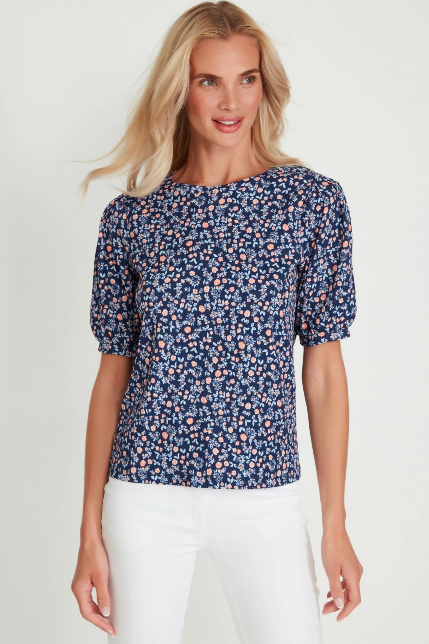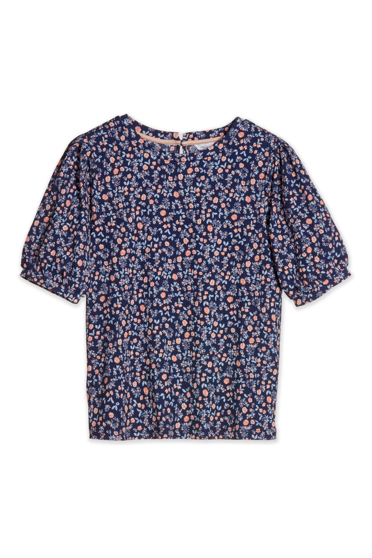 M&Co Blue Rosebud Crinkle Puff T-Shirt