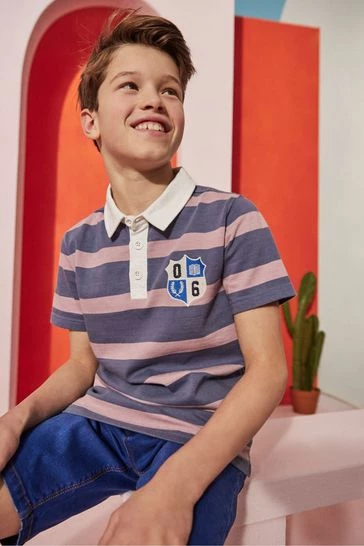 M&Co Blue Short Sleeve Stripe Applique Rugby T-Shirt