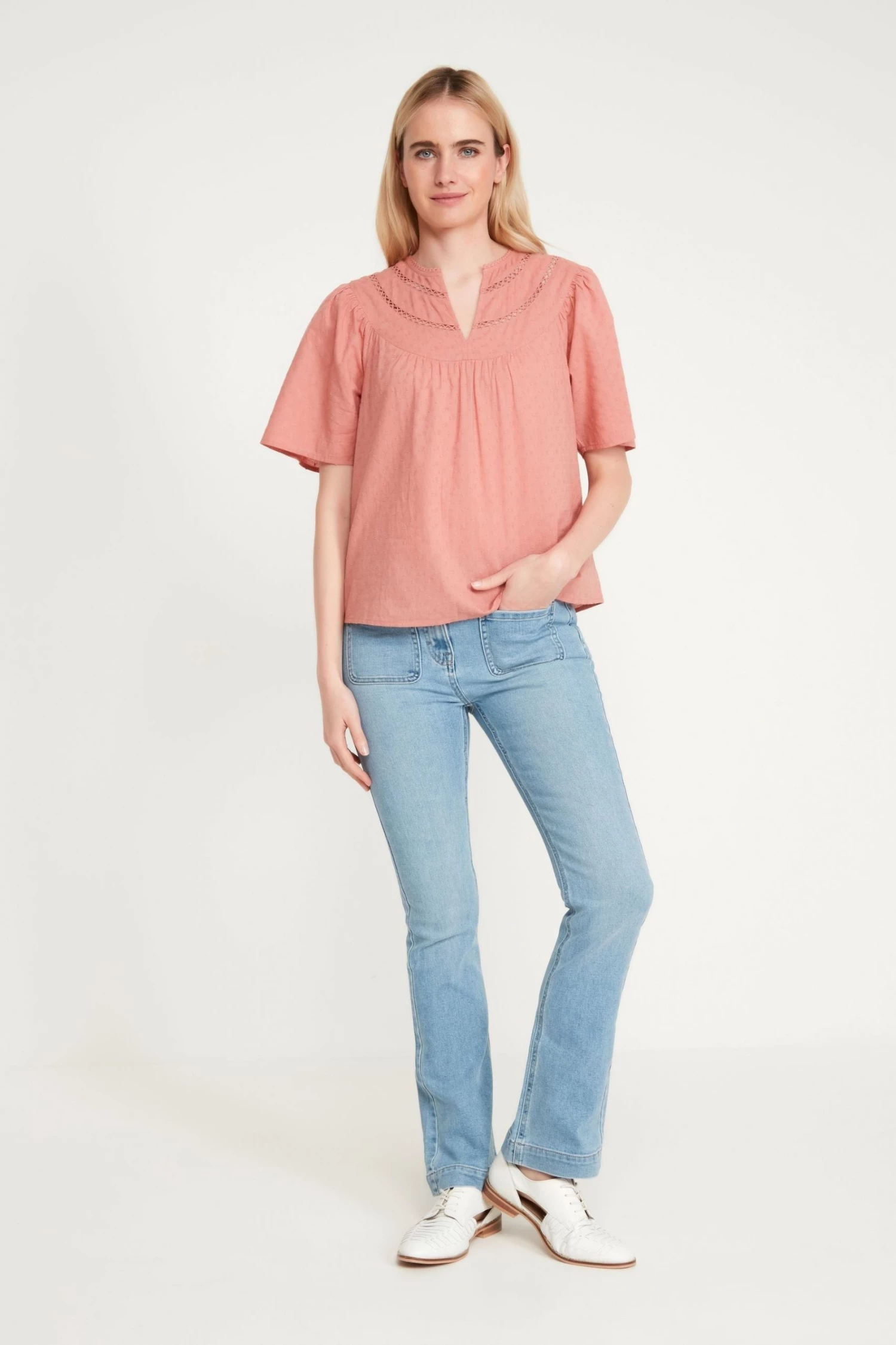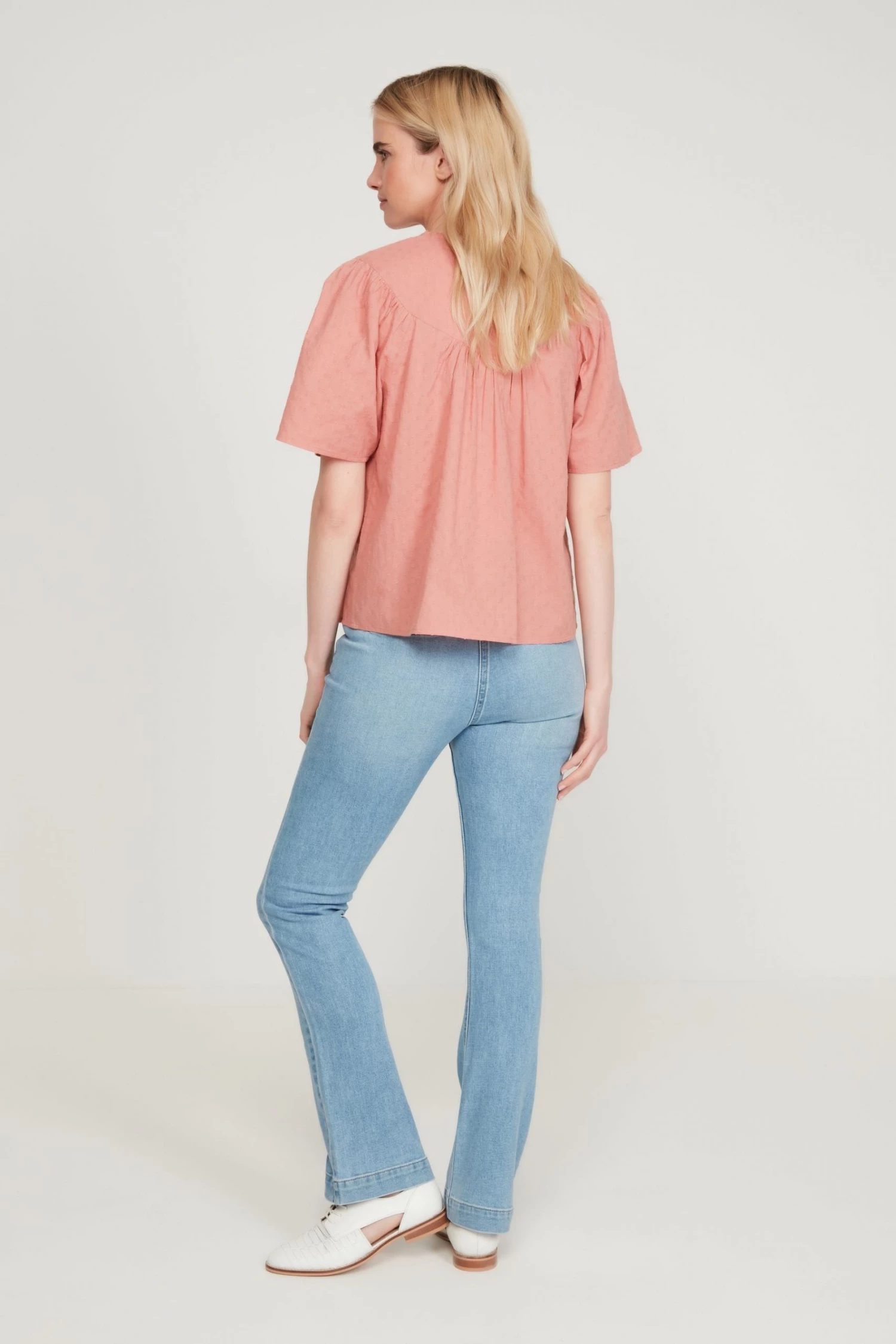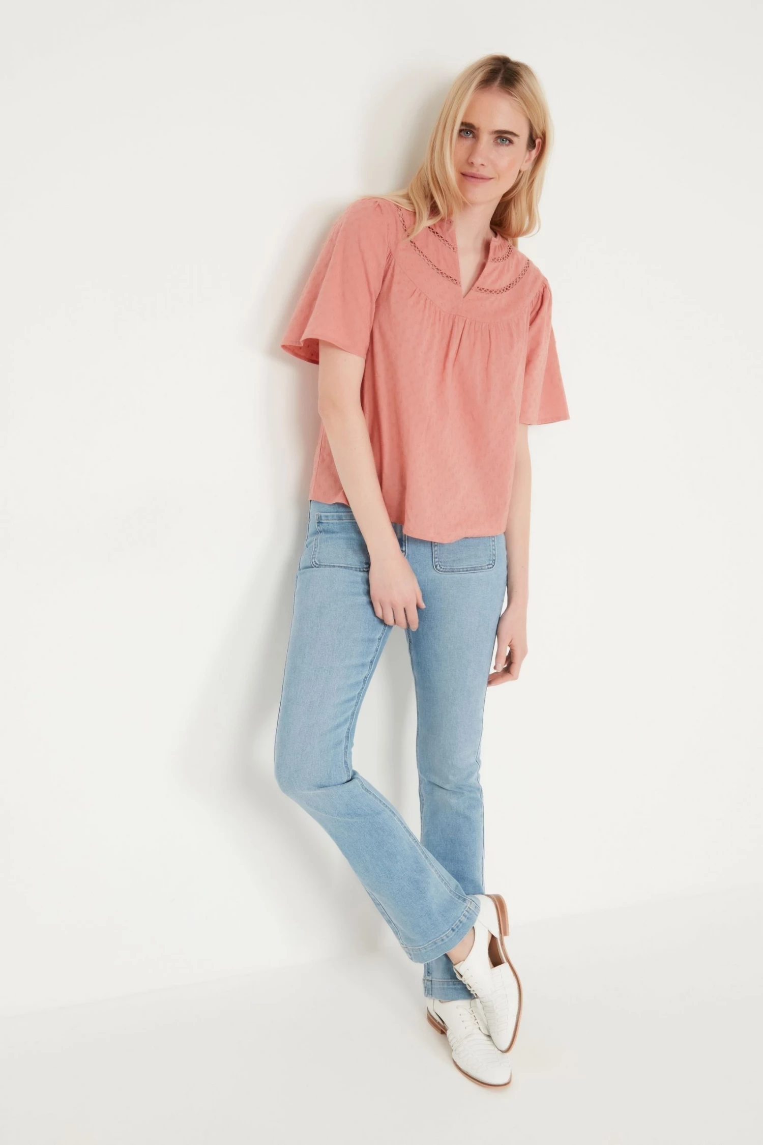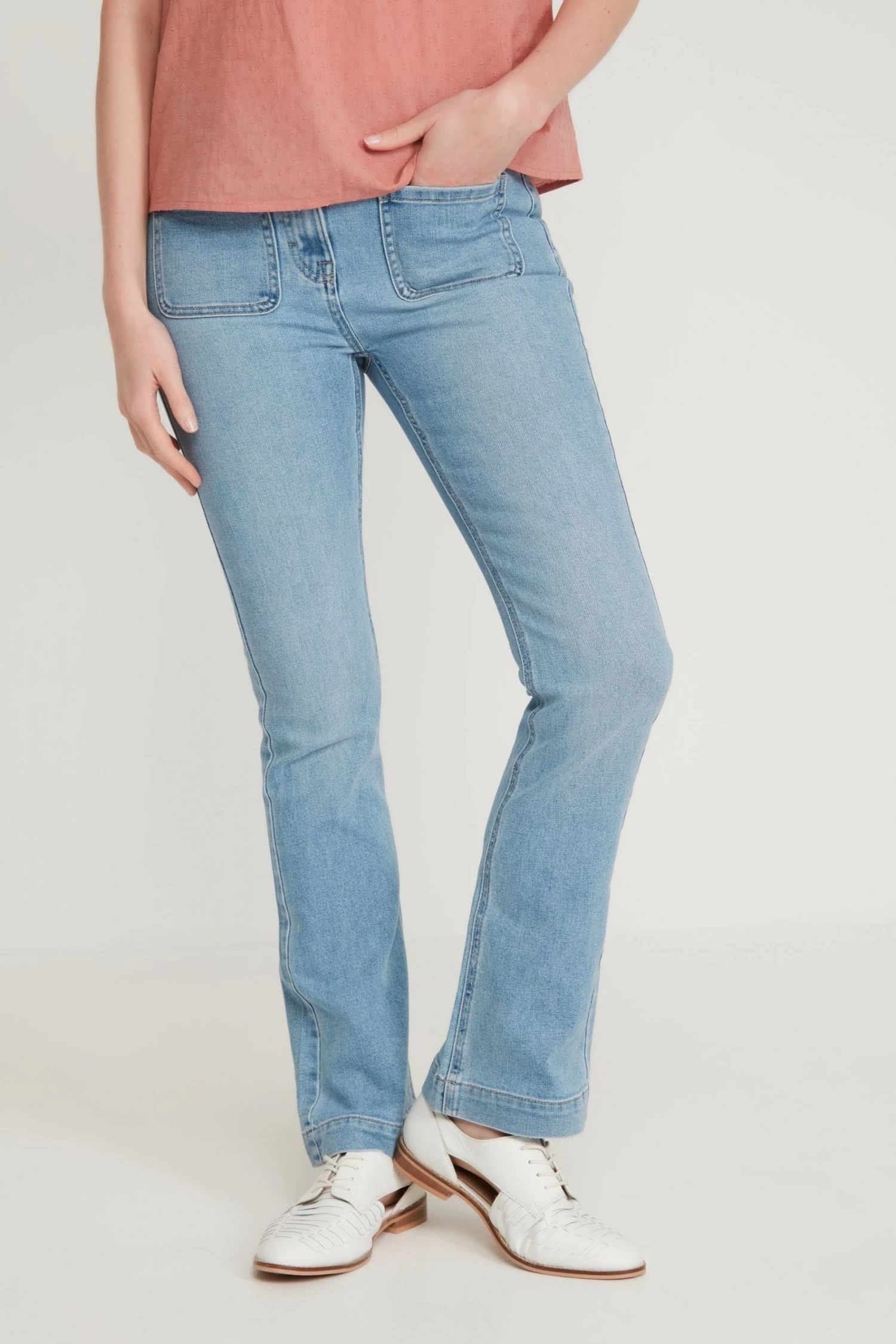 These 70s inspired jeans are a must for your new season fits! Coming in a boot cut fit- these super soft jeans feature two front patch pockets and a zip/button fastening. Pair with a T-shirt and boots for a stylish look!