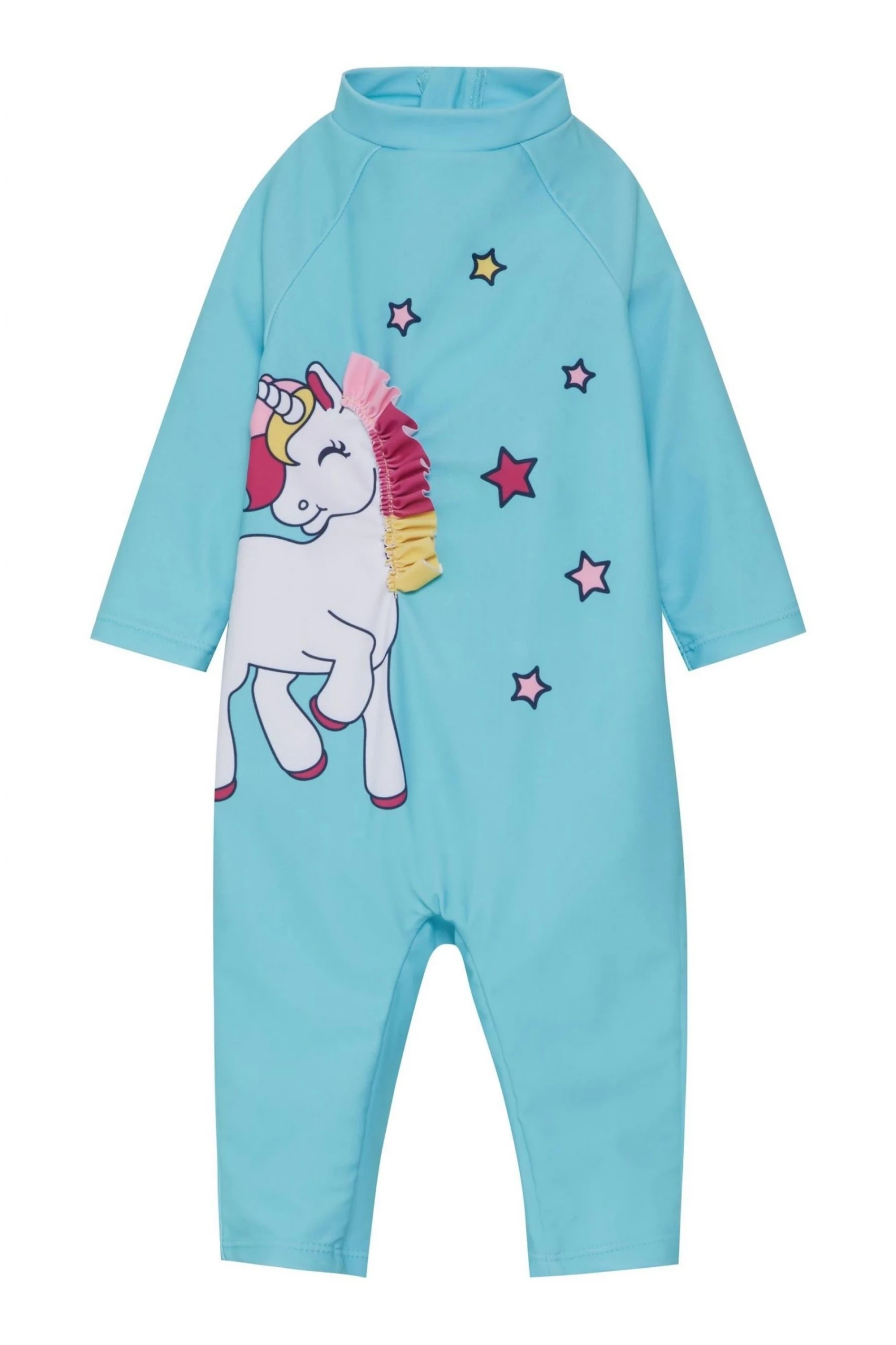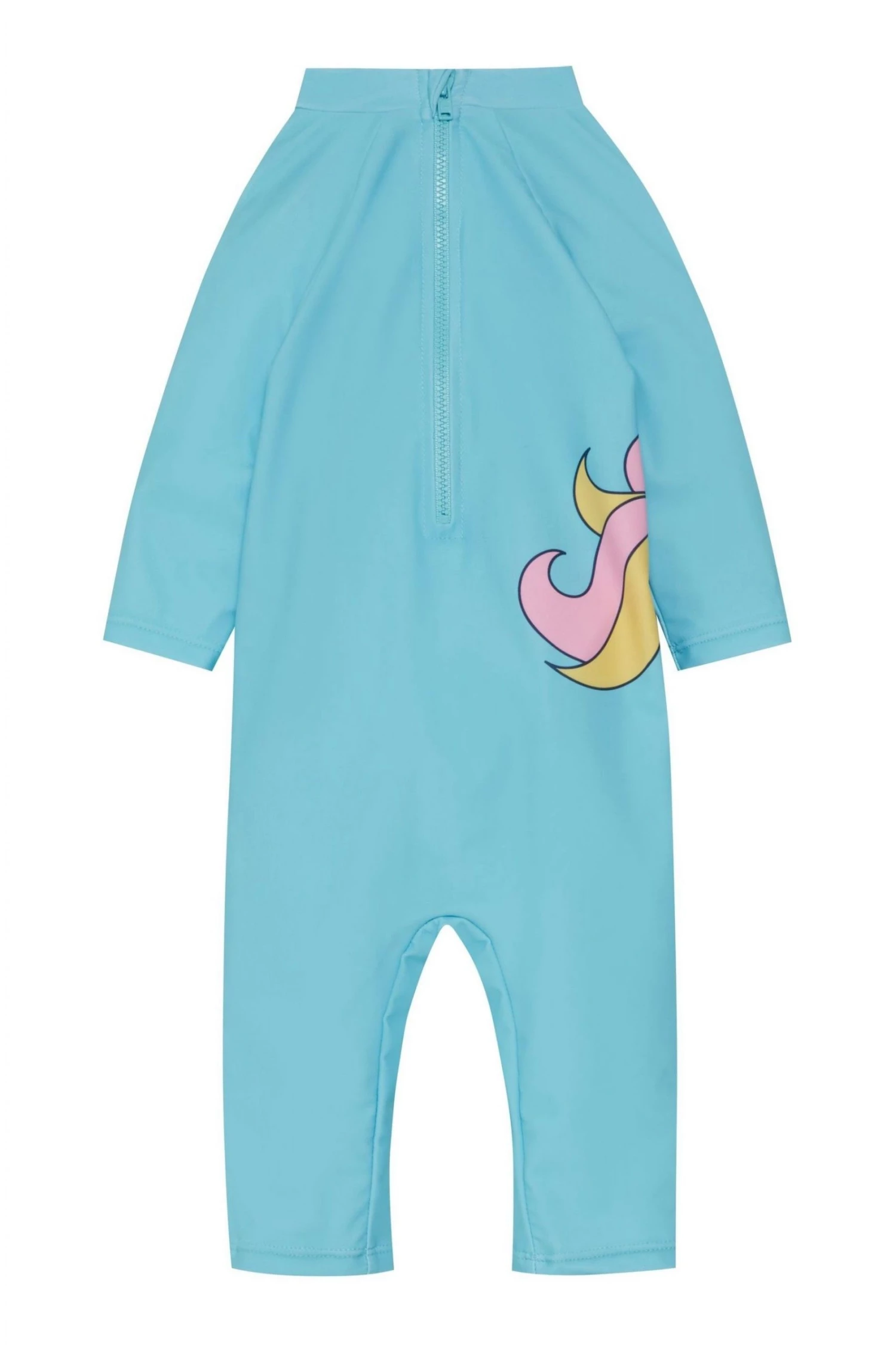 This unicorn swimsuit is perfect for staying safe from the summer sun. Cut with three quarter length sleeves, a high neckline and a zip back fastening, the UPF 50+protection makes this swim one piece a dream holiday companion.