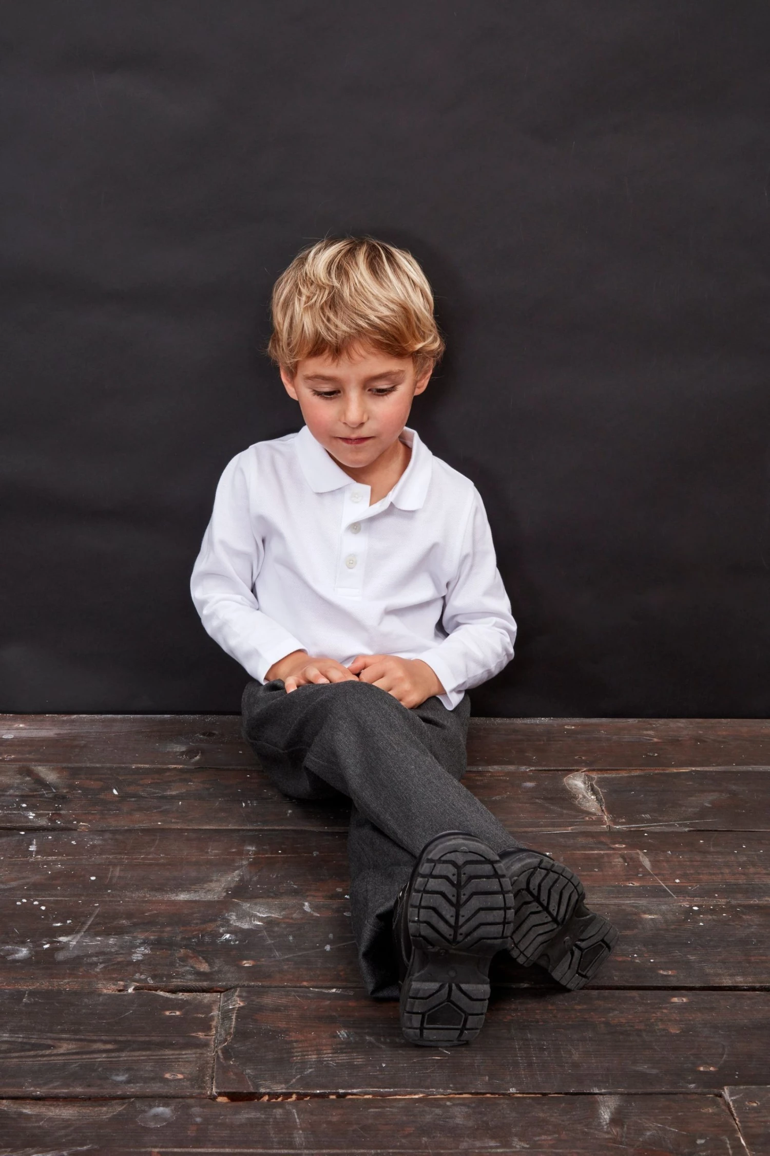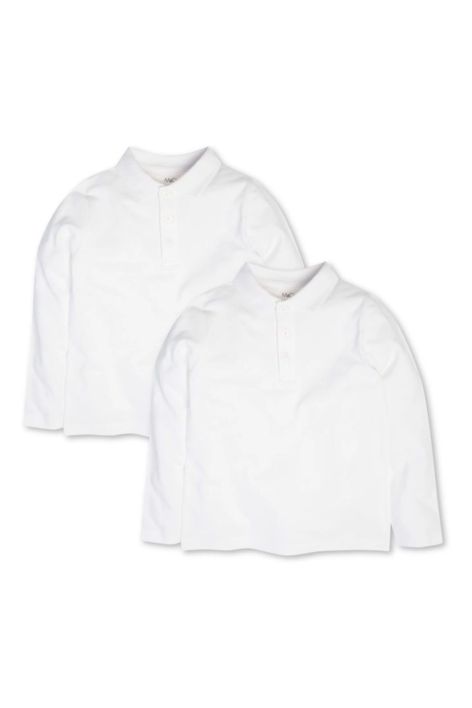 Essential to get him school ready with this two pack 100% cotton polos. These polos feature long sleeves, a classic collar, and a 1/2 length button placket making this easy to remove.