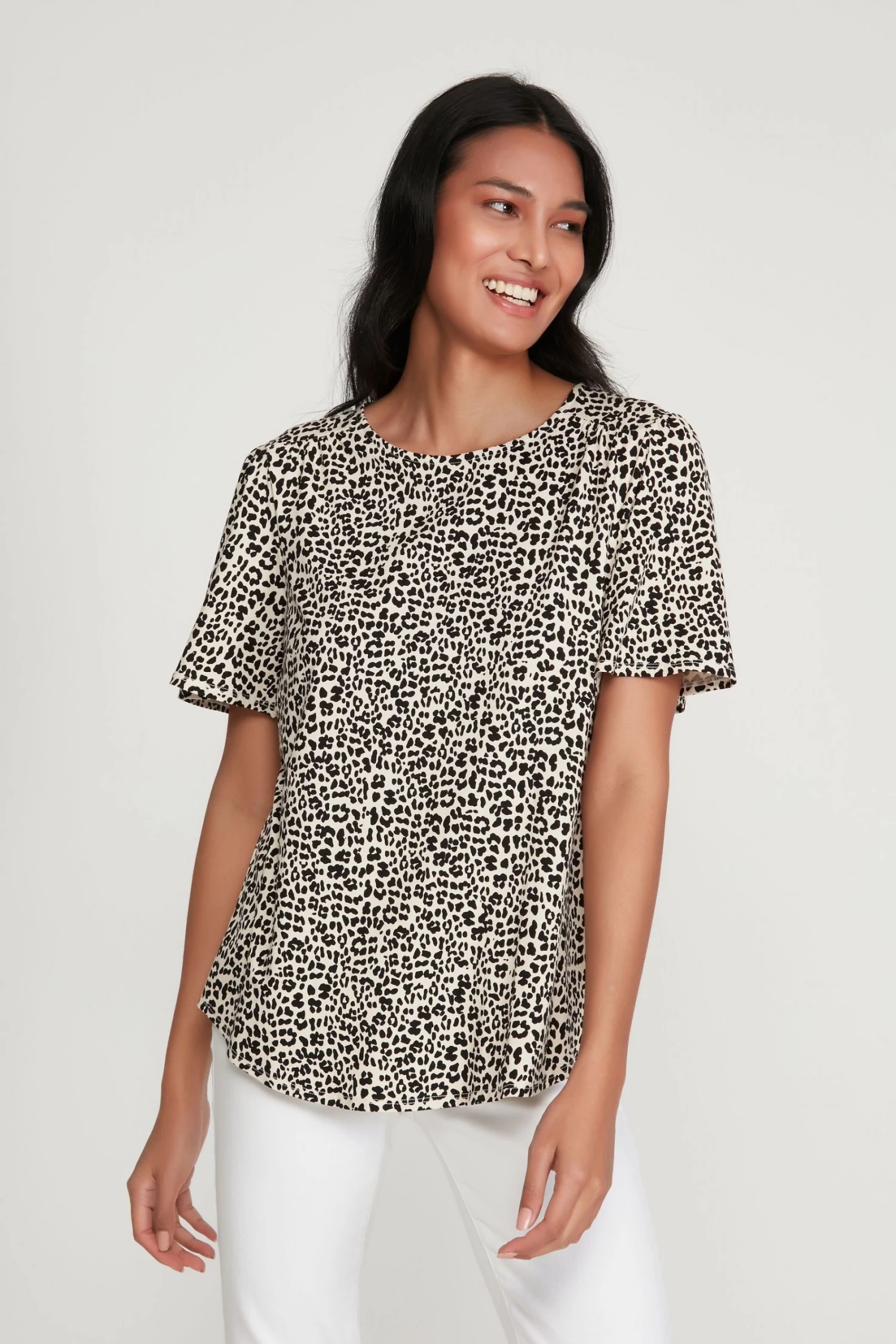 M&Co Brown Leopard Print Flutter Sleeve Top