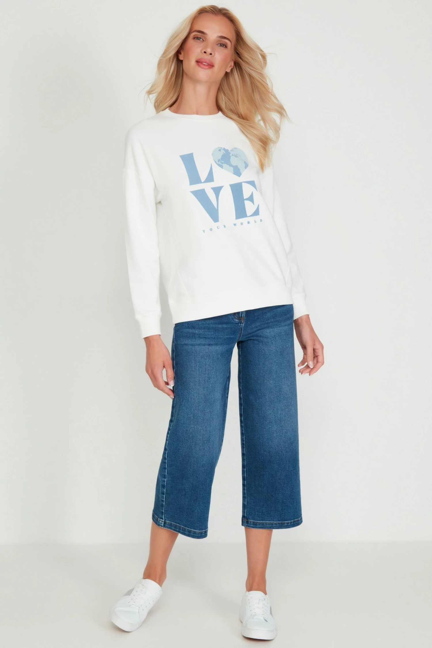M&Co Cream Love World Crew Sweater