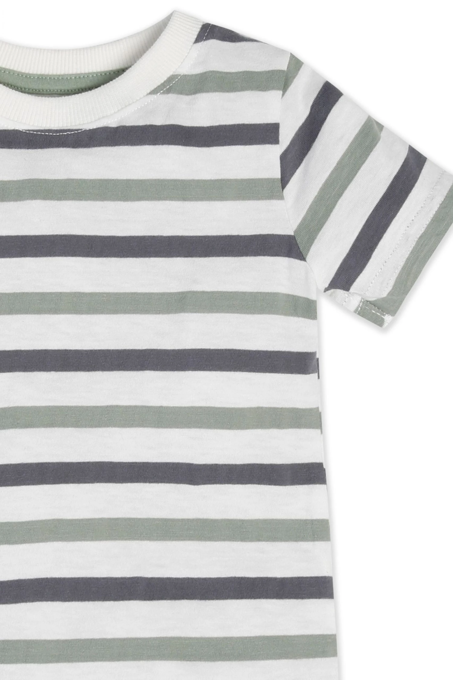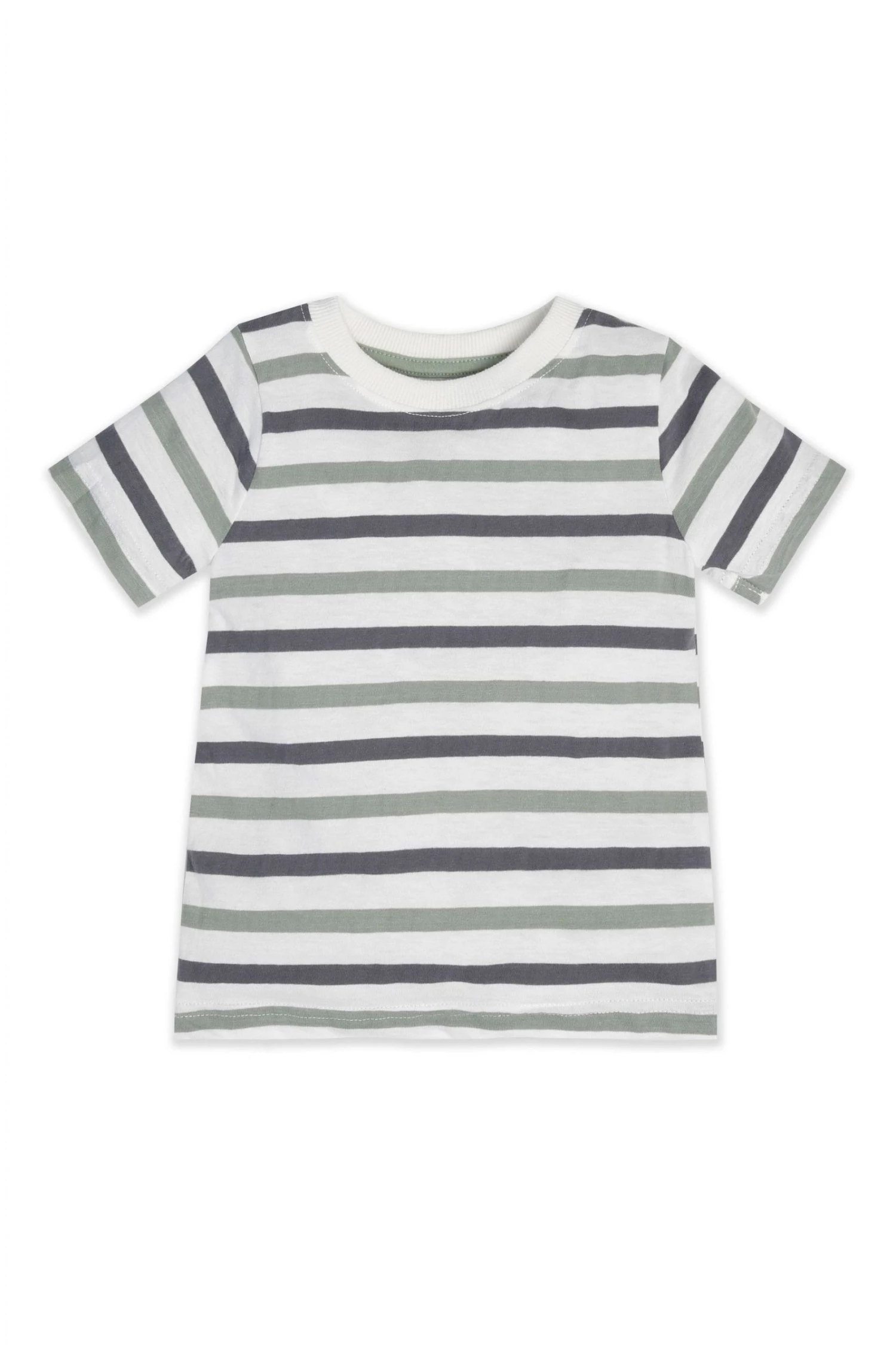 This stripe T-shirt coming in blue and grey shades, features a cap sleeve. This T-shirt is the perfect addition to your little one’s everyday wardrobe.