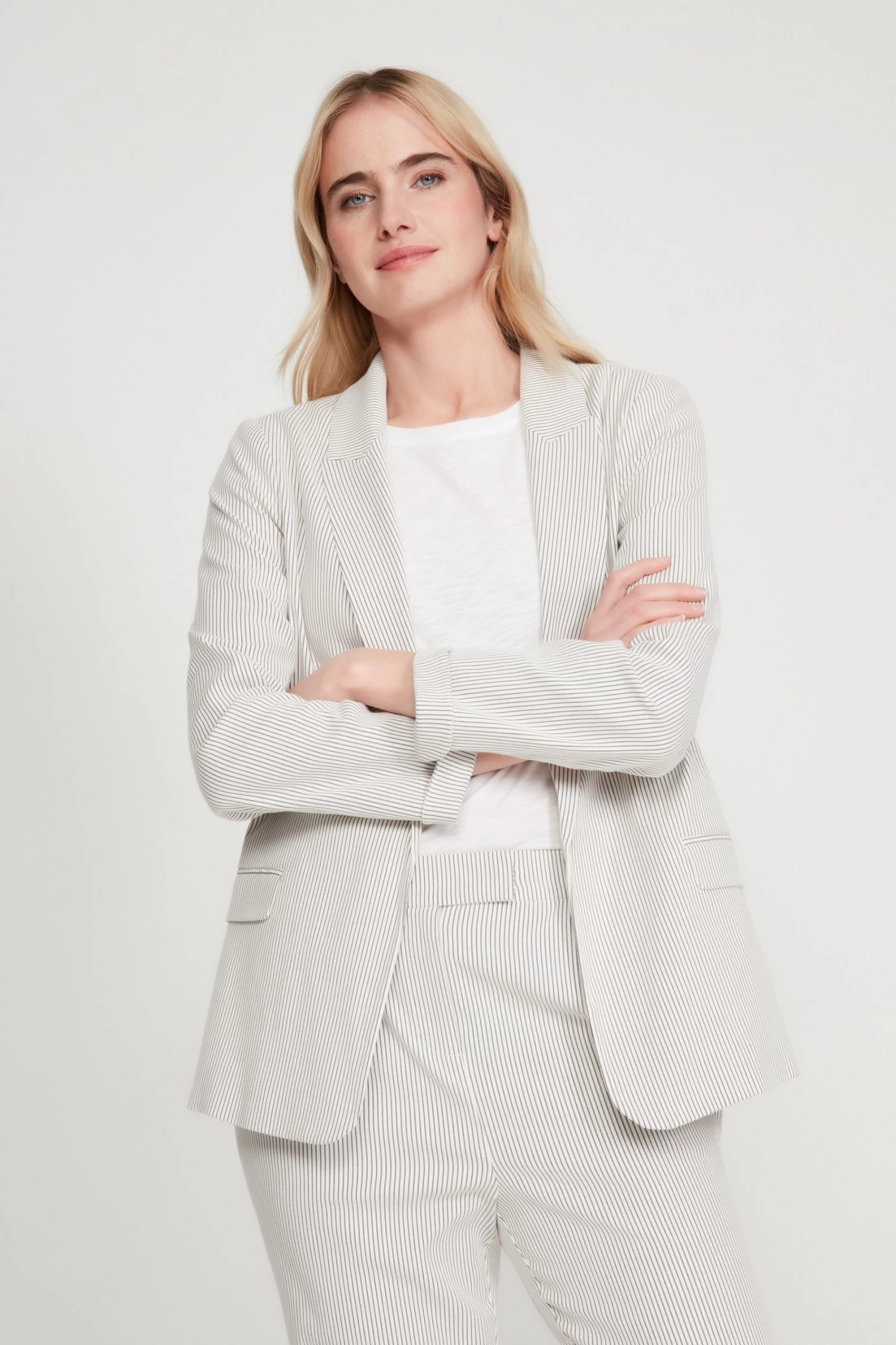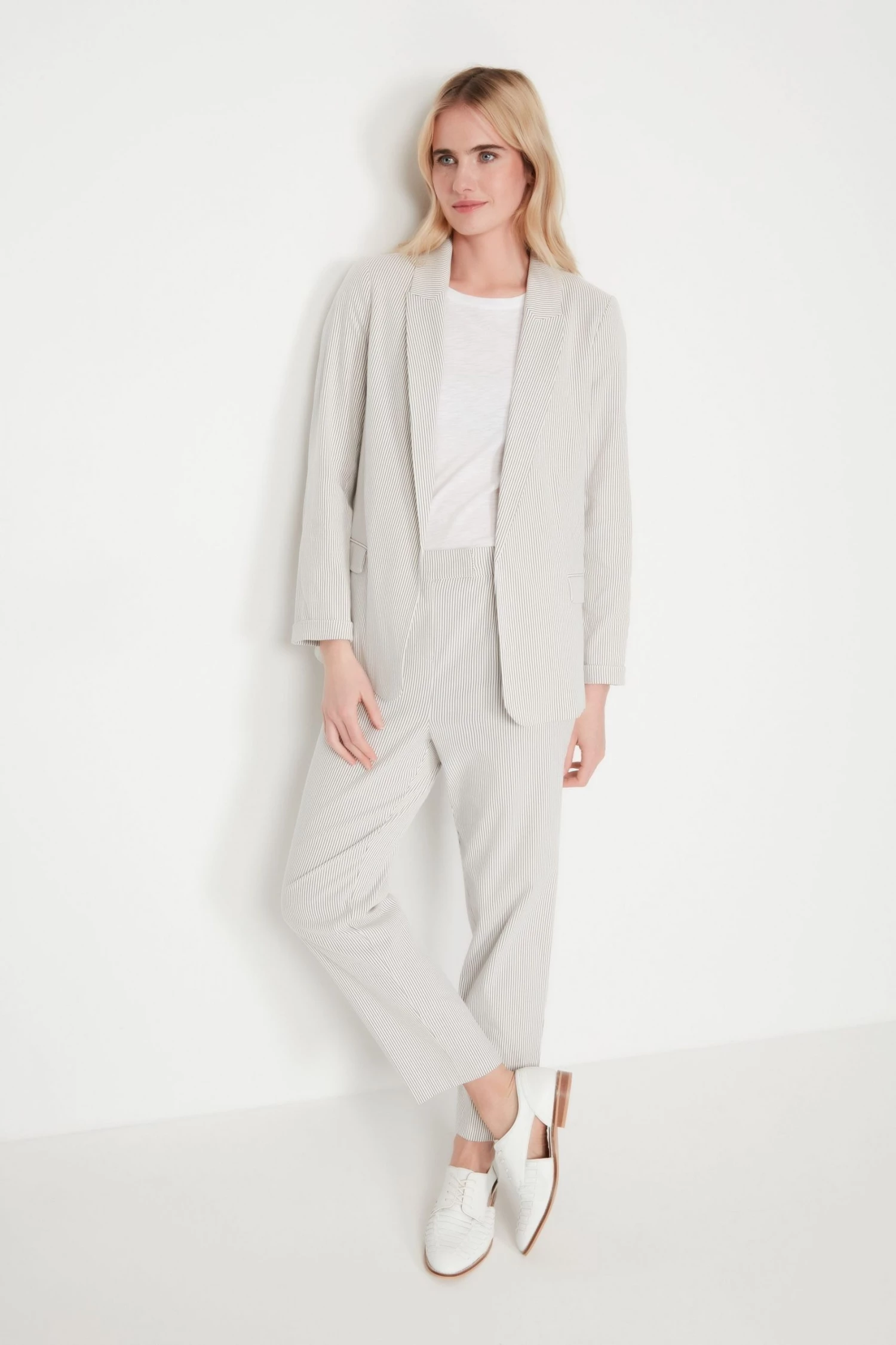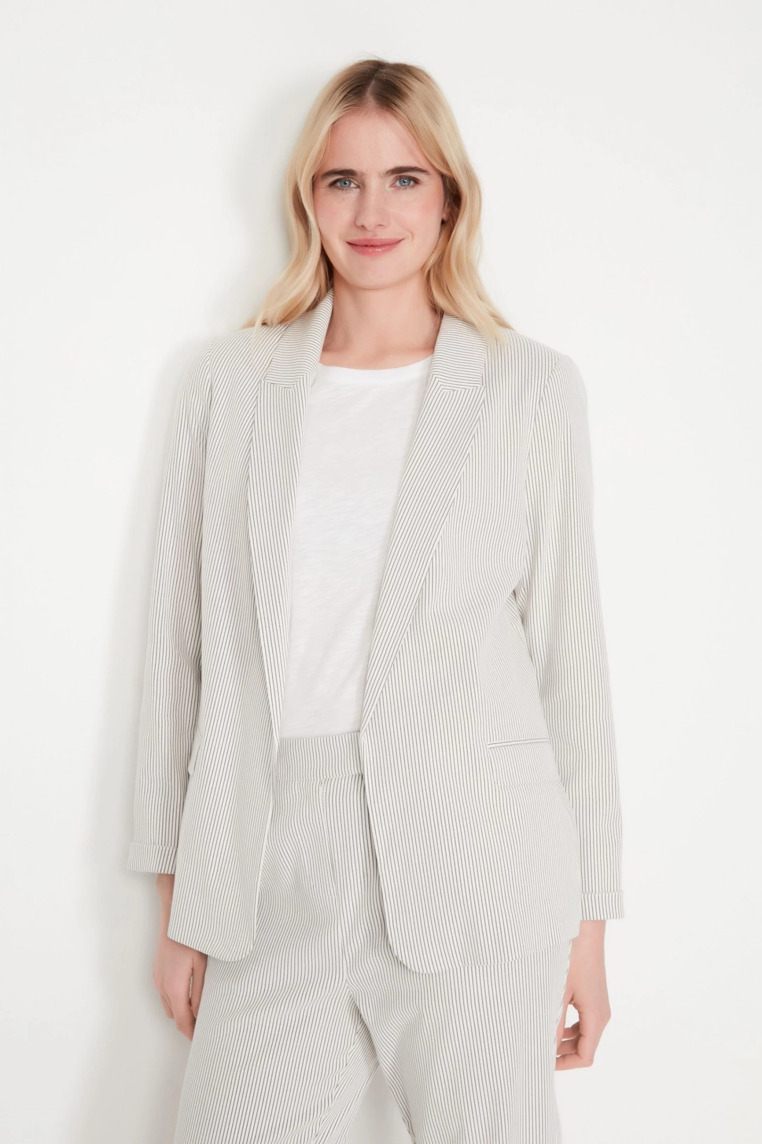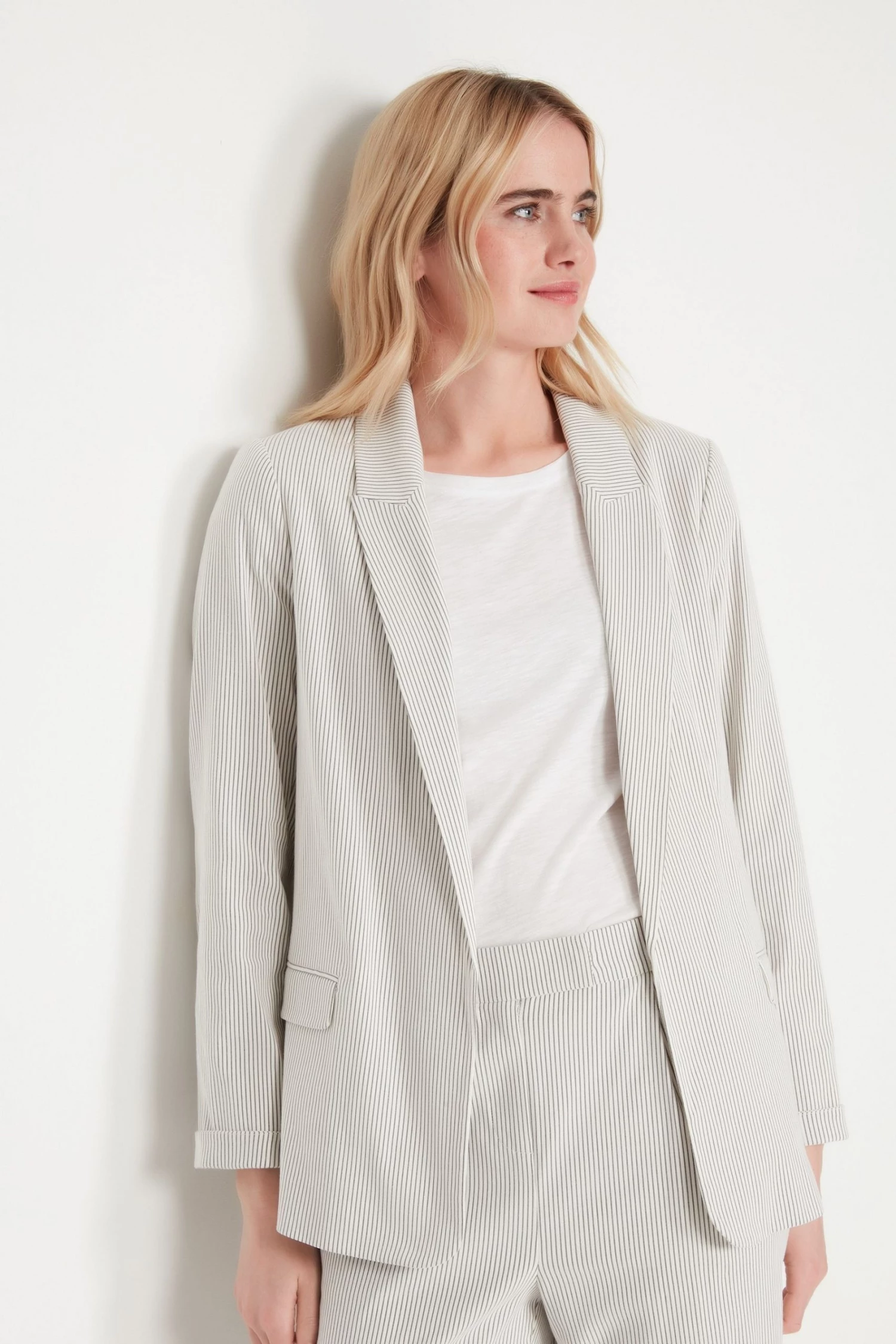 M&Co Cream Striped Blazer Jacket
