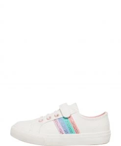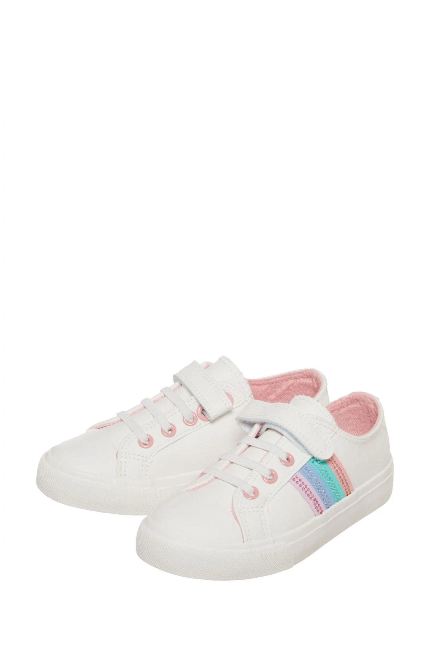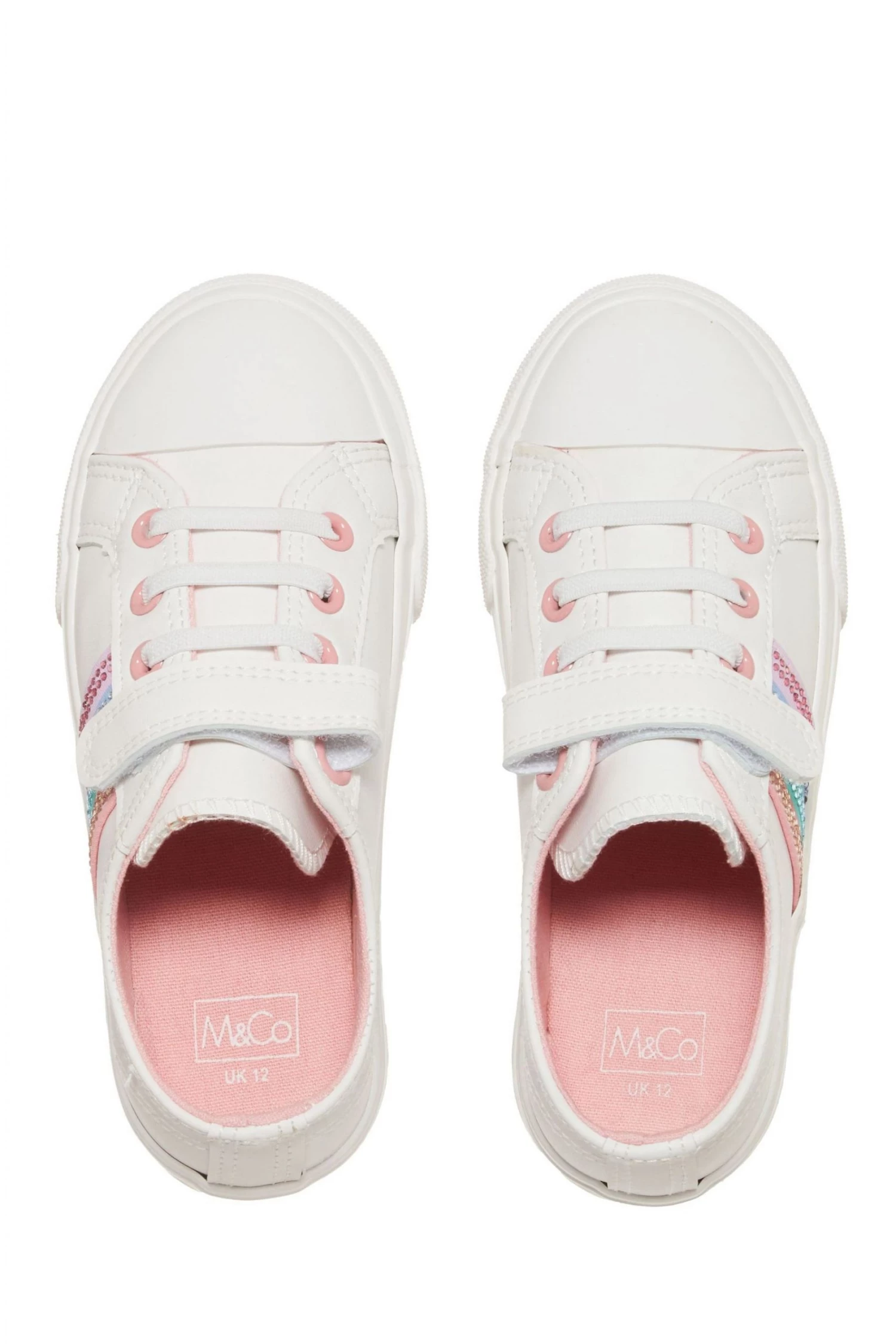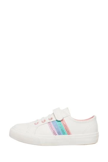 These white trainers feature a sturdy sole, diamante detailing and a velcro strap.