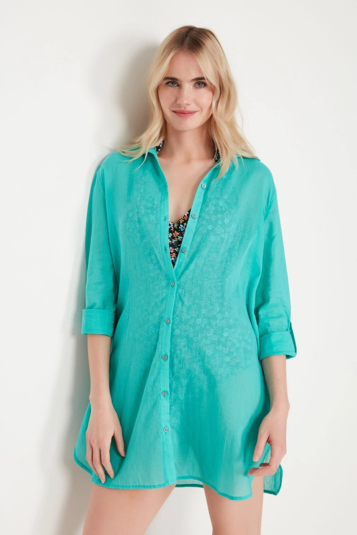 This lightweight shirt is the perfect beach attire this season! Coming with a full length button fastening, this shirt features 3/4 turn up sleeves. Throw on over swimwear for a stylish look this summer!