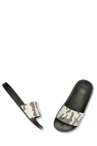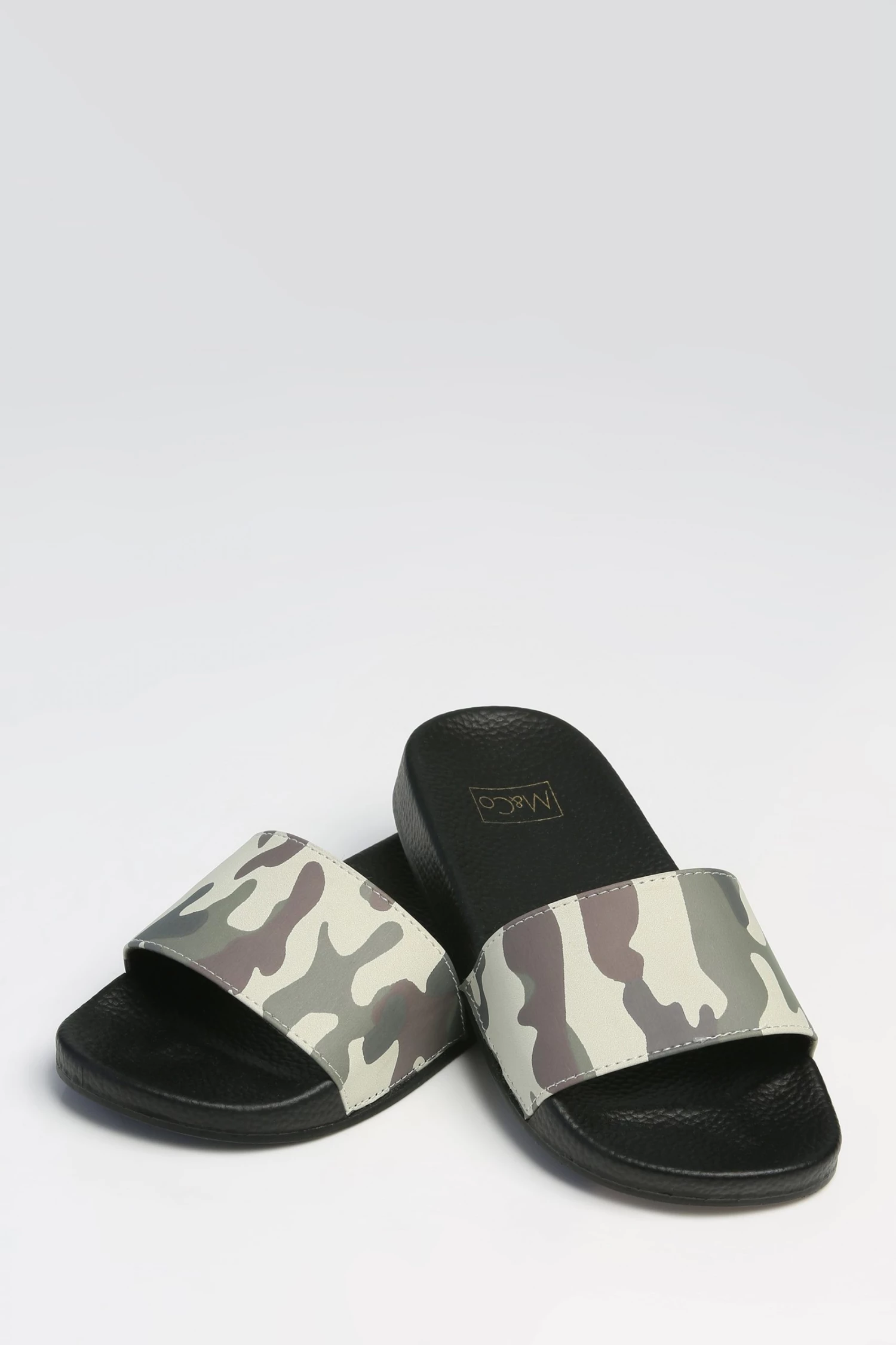 These sliders are perfect this season. Designed with a khaki green camo pattern and a plain white, padded sole. This versatile pair can be worn to the poolside or to a sunset bbq.