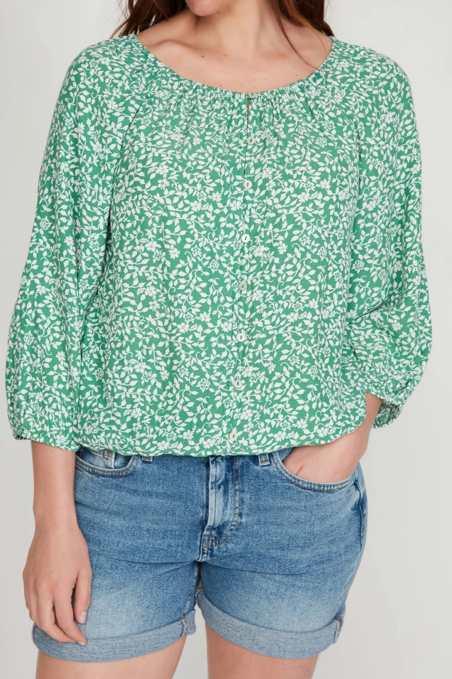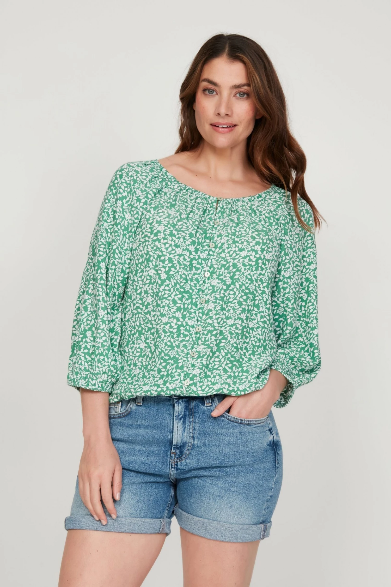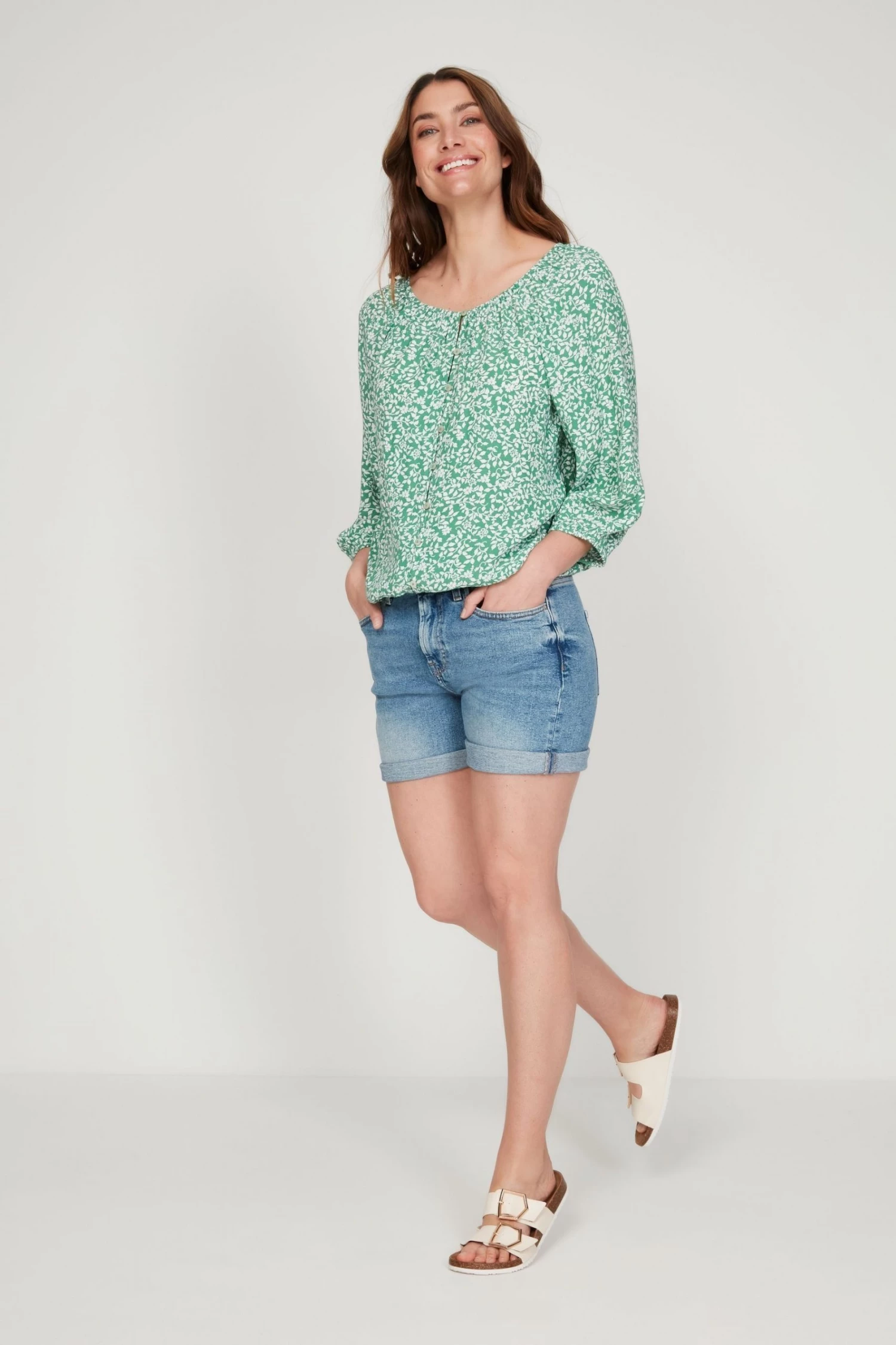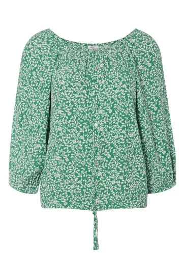 This floral drawstring top is a summer essential. Arriving in a green floral print, this top features ¾ length sleeves and a wide round neckline. Pair with your favourite jeans and heeled boots for a stylish everyday look.
