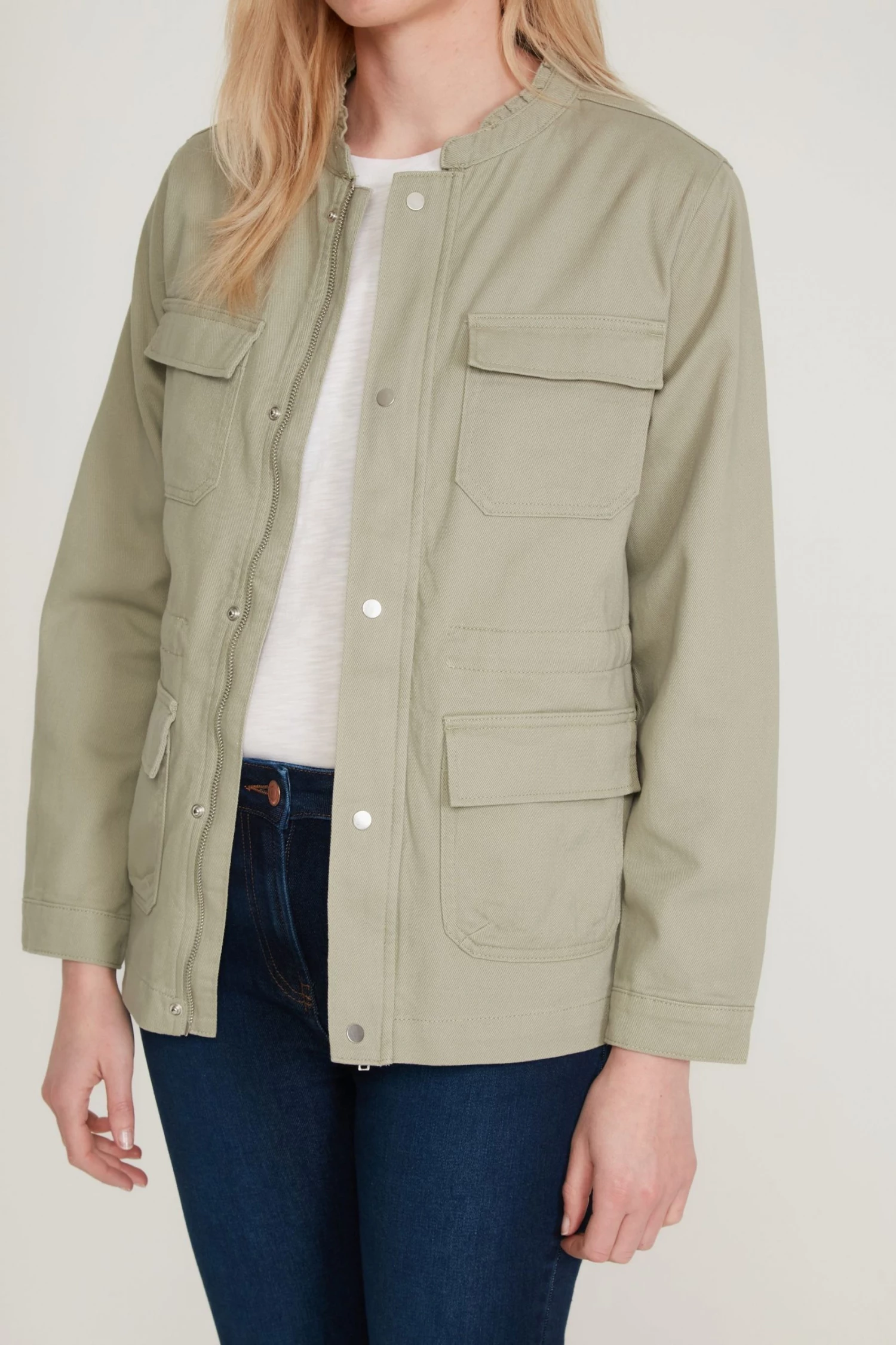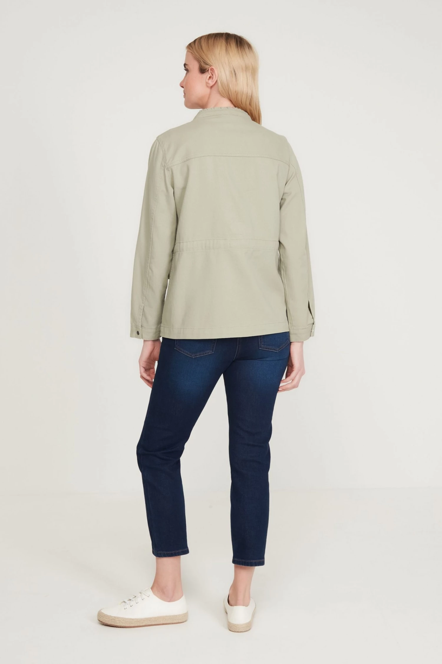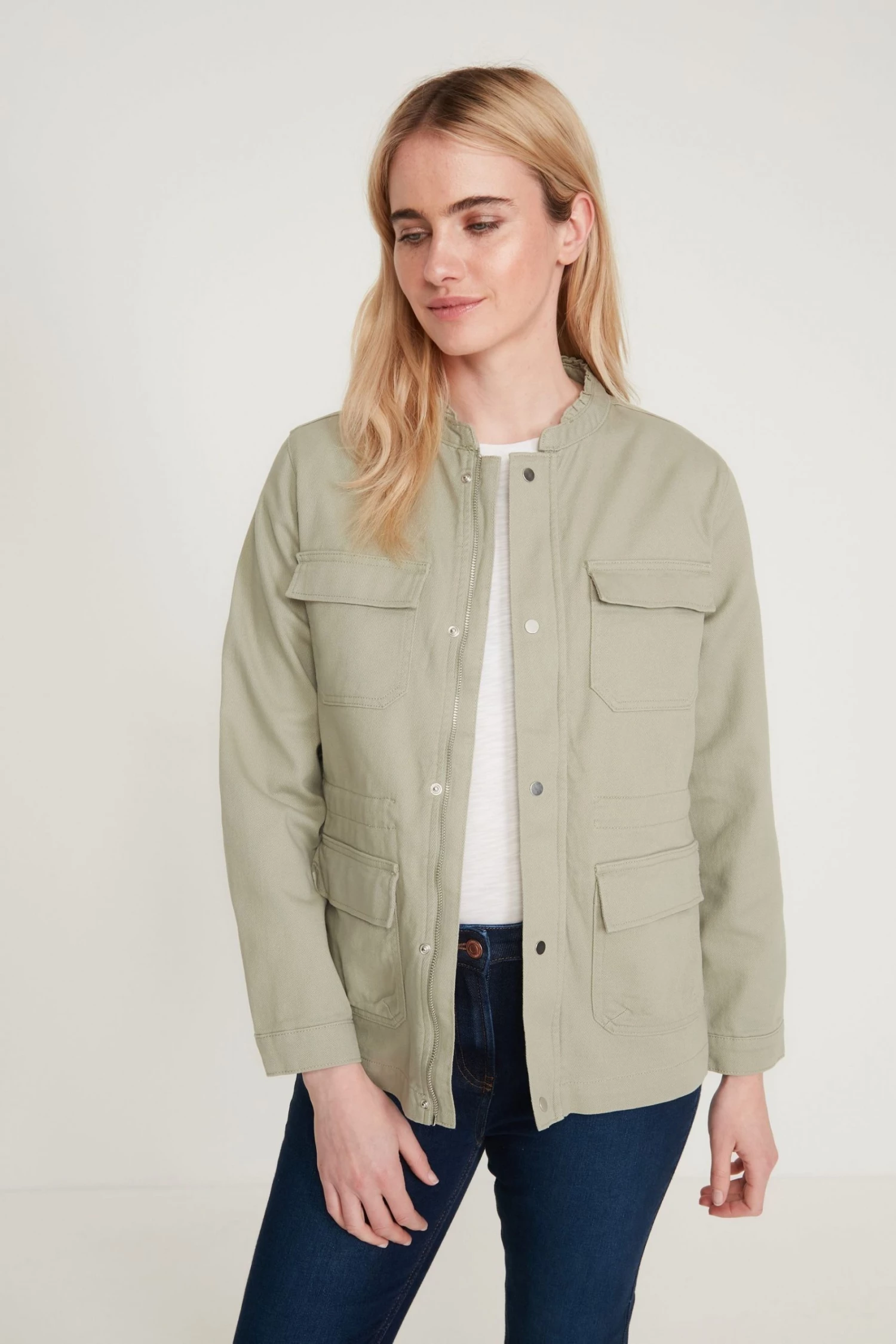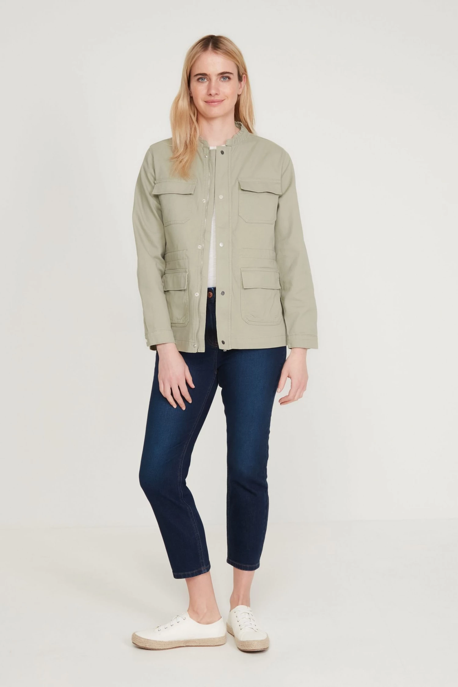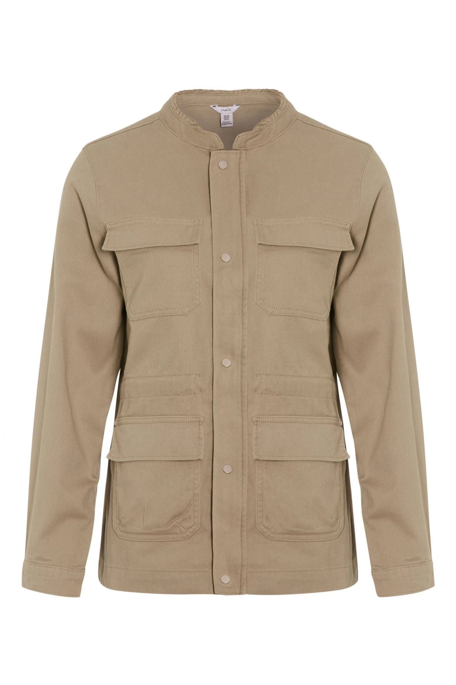 Fusing a shirt and a jacket for the chicest combination, M&Co long sleeve shacket comes in a relaxed silhouette with buttons, a frill collar and utility inspired chest pockets. Featuring a pale khaki finish, this short shacket is a trend led cover up you can’t go without.