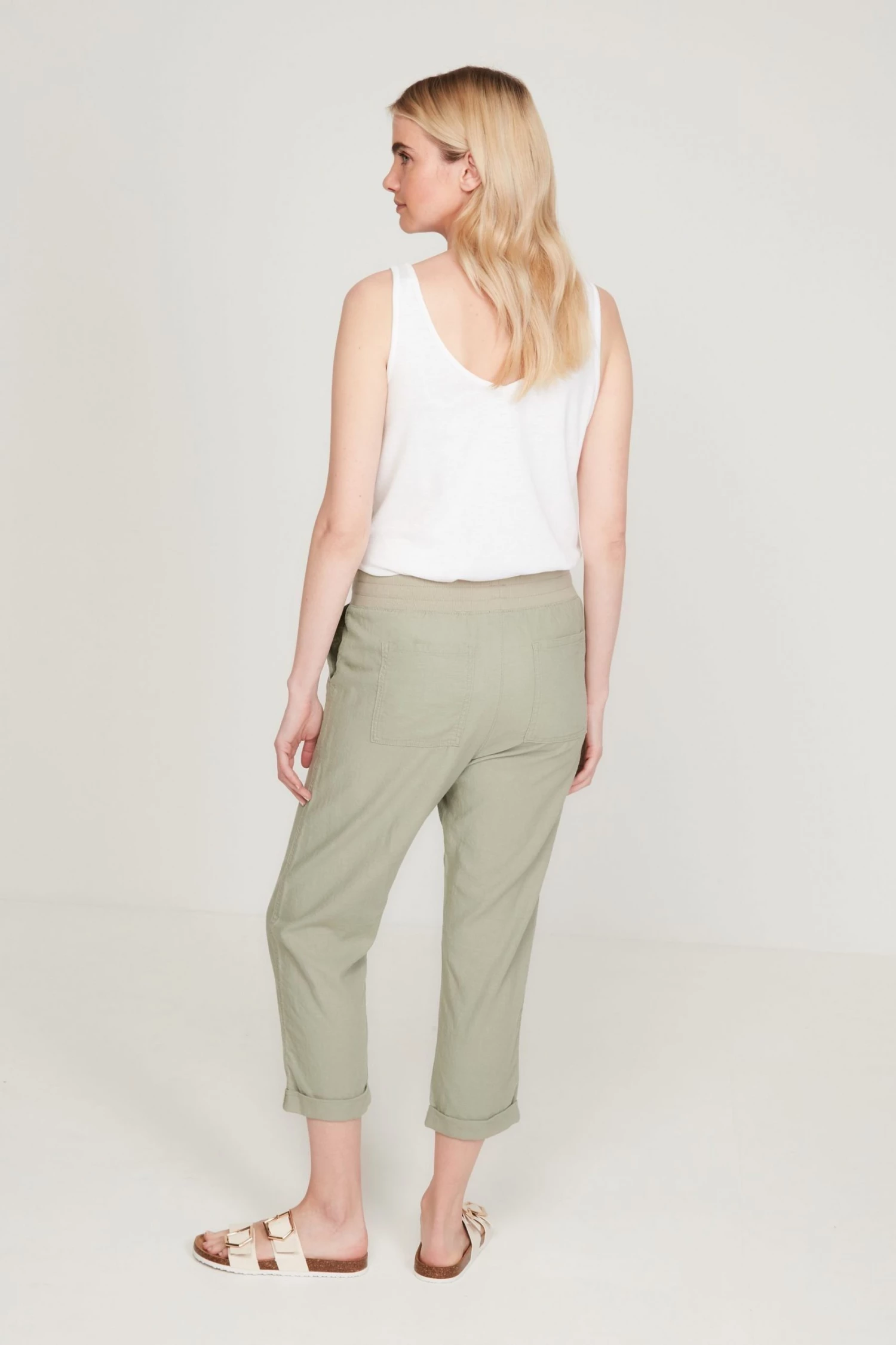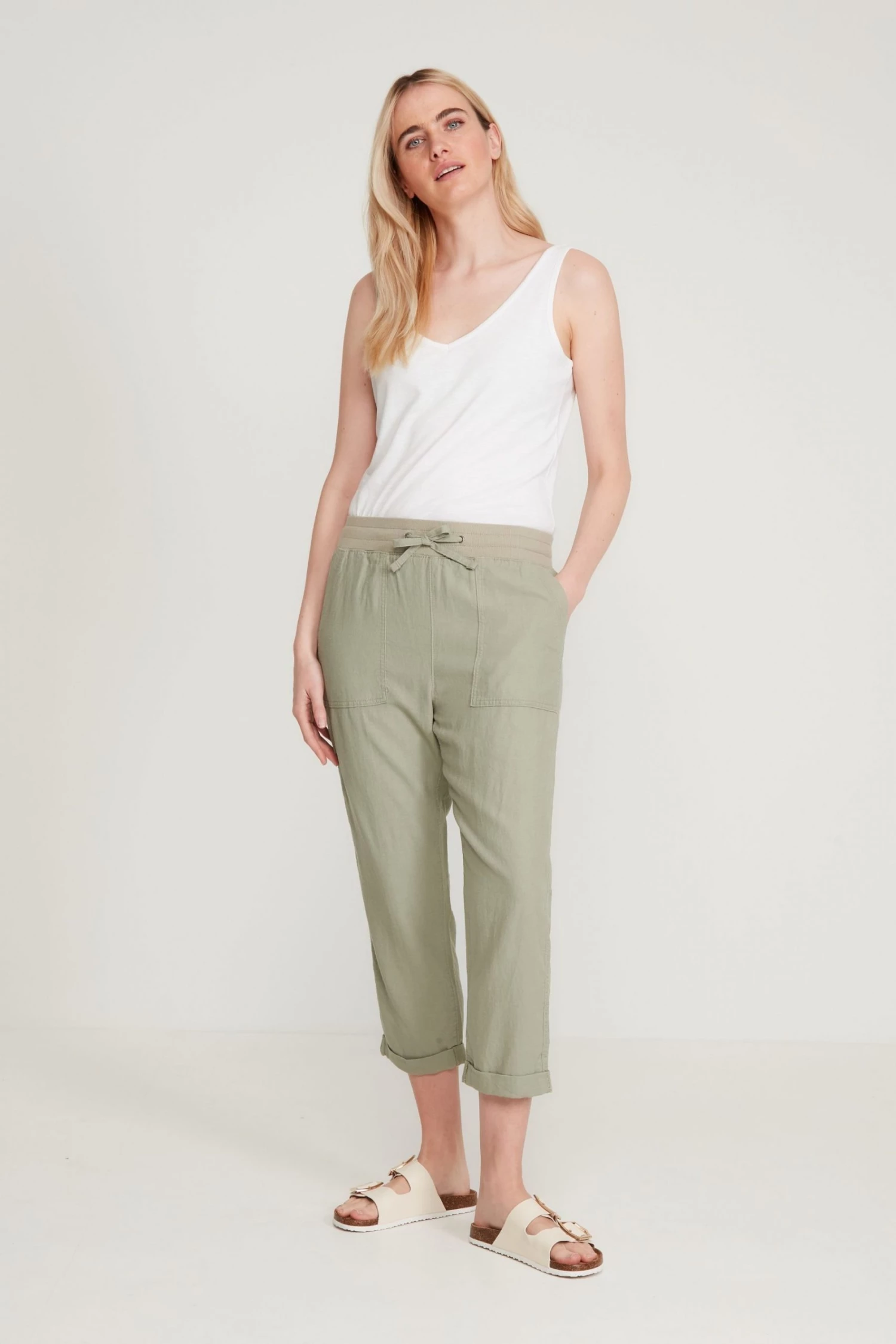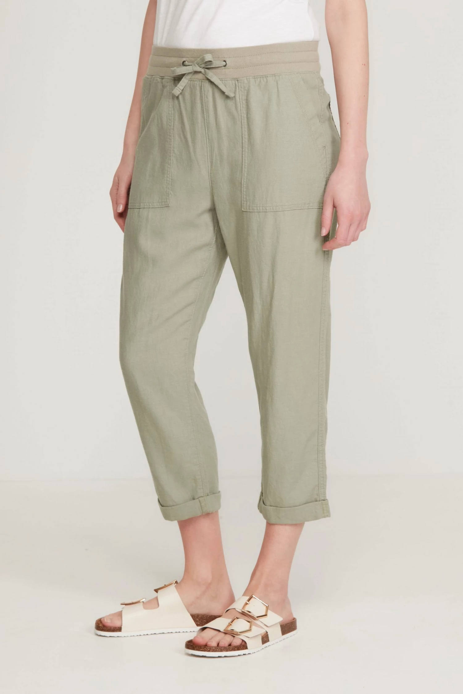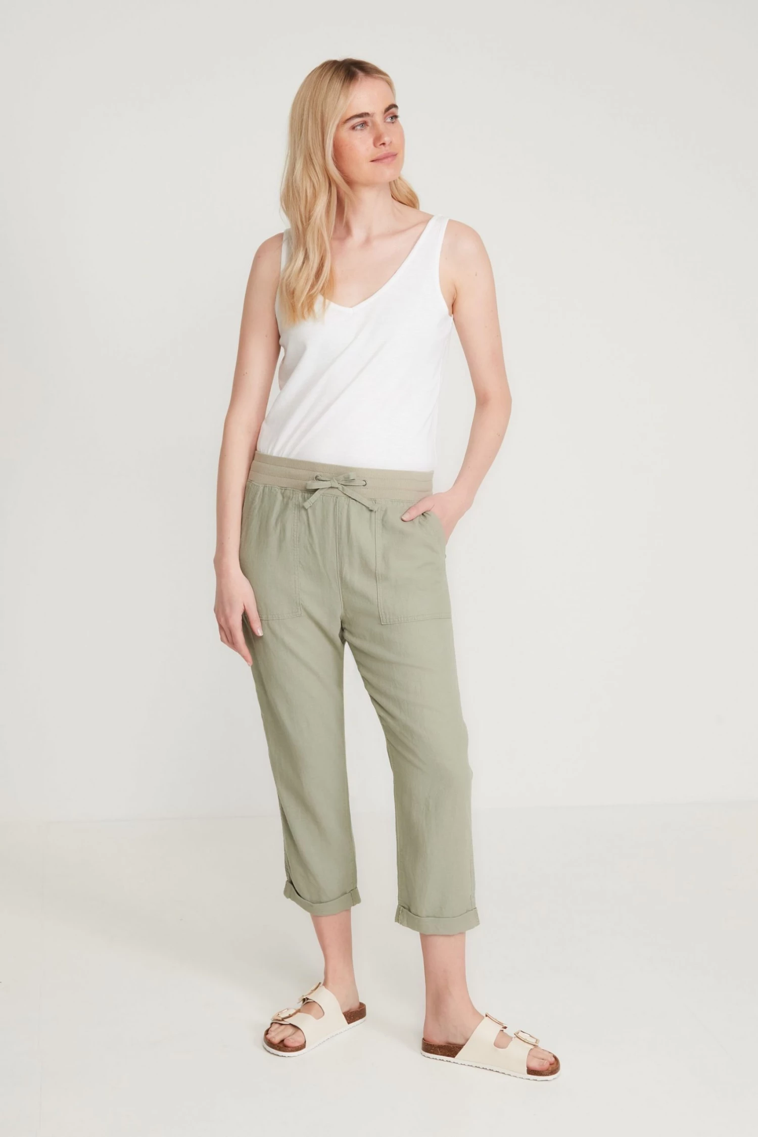 M&Co Green Linen Cropped Trousers