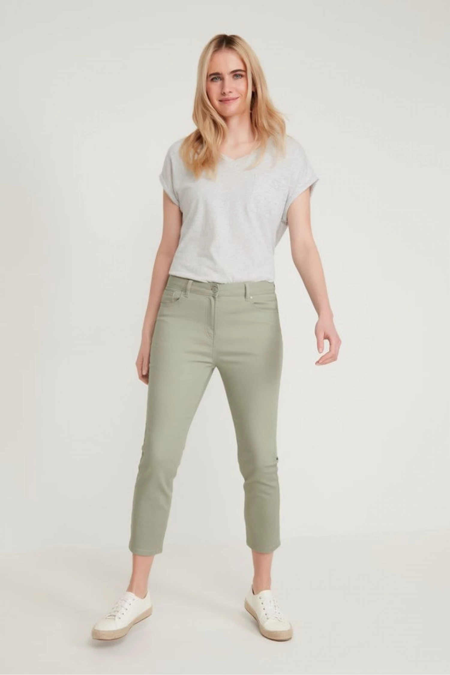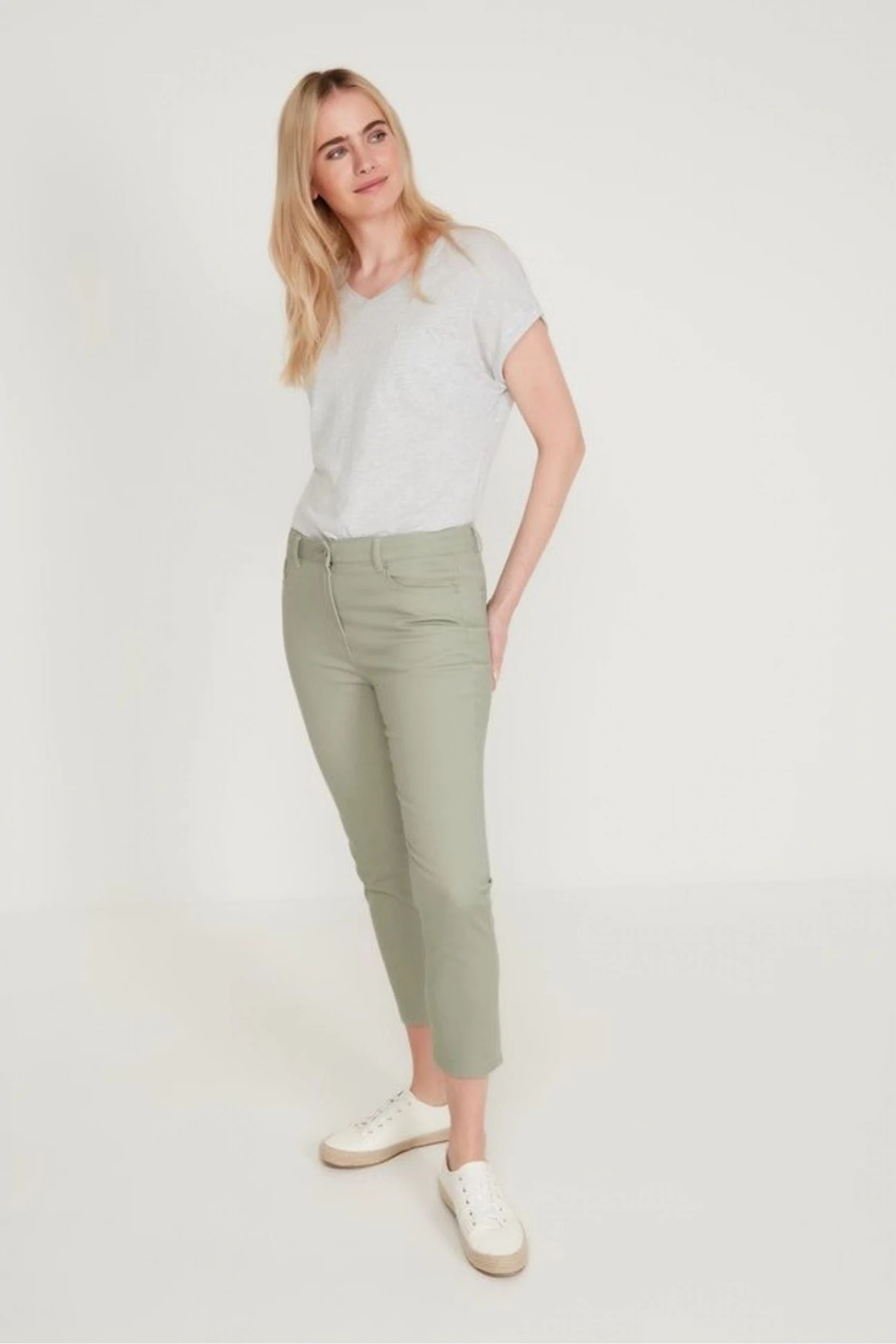Coming in a supersoft fabric, these jeans feature a cropped length, front/back pockets and a zip/button fastening. Pair with a floral blouse for an on-trend spring/summer look!