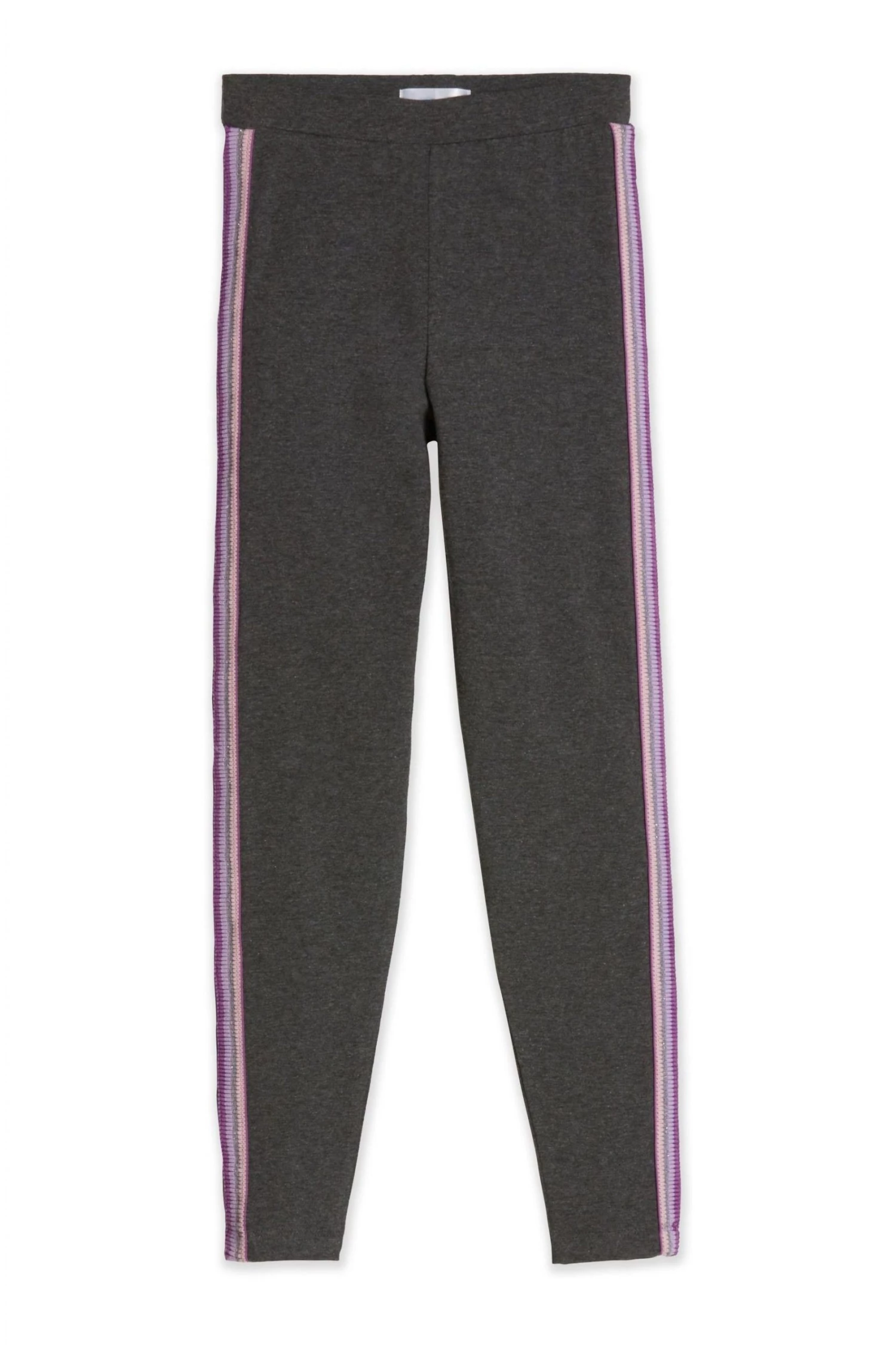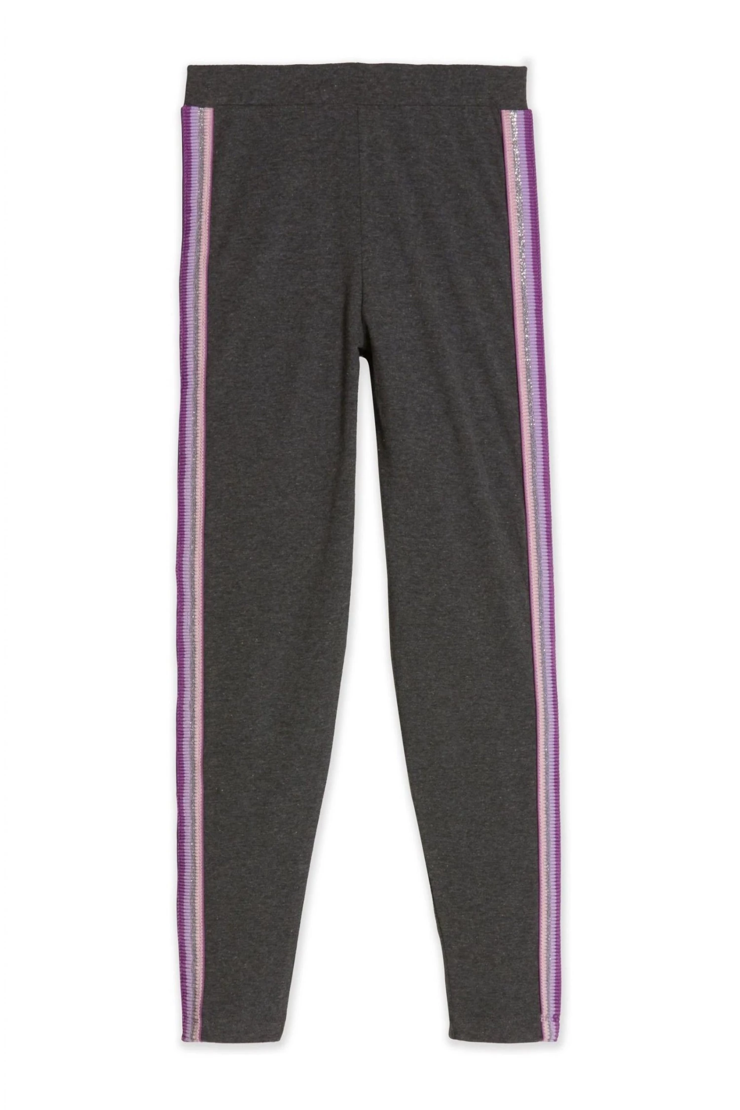 This cotton blended stretch leggings with tapered leg and contrast multi glitter side leg stripes.