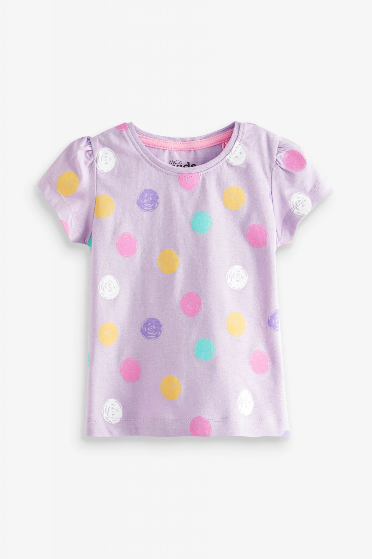 This girls’ lilac short sleeve T-shirt has been designed in a fun colourful spot print, easy to style with shorts or jeans.