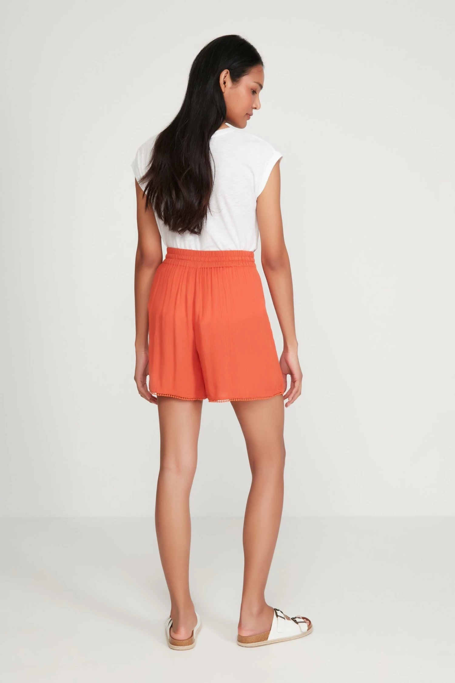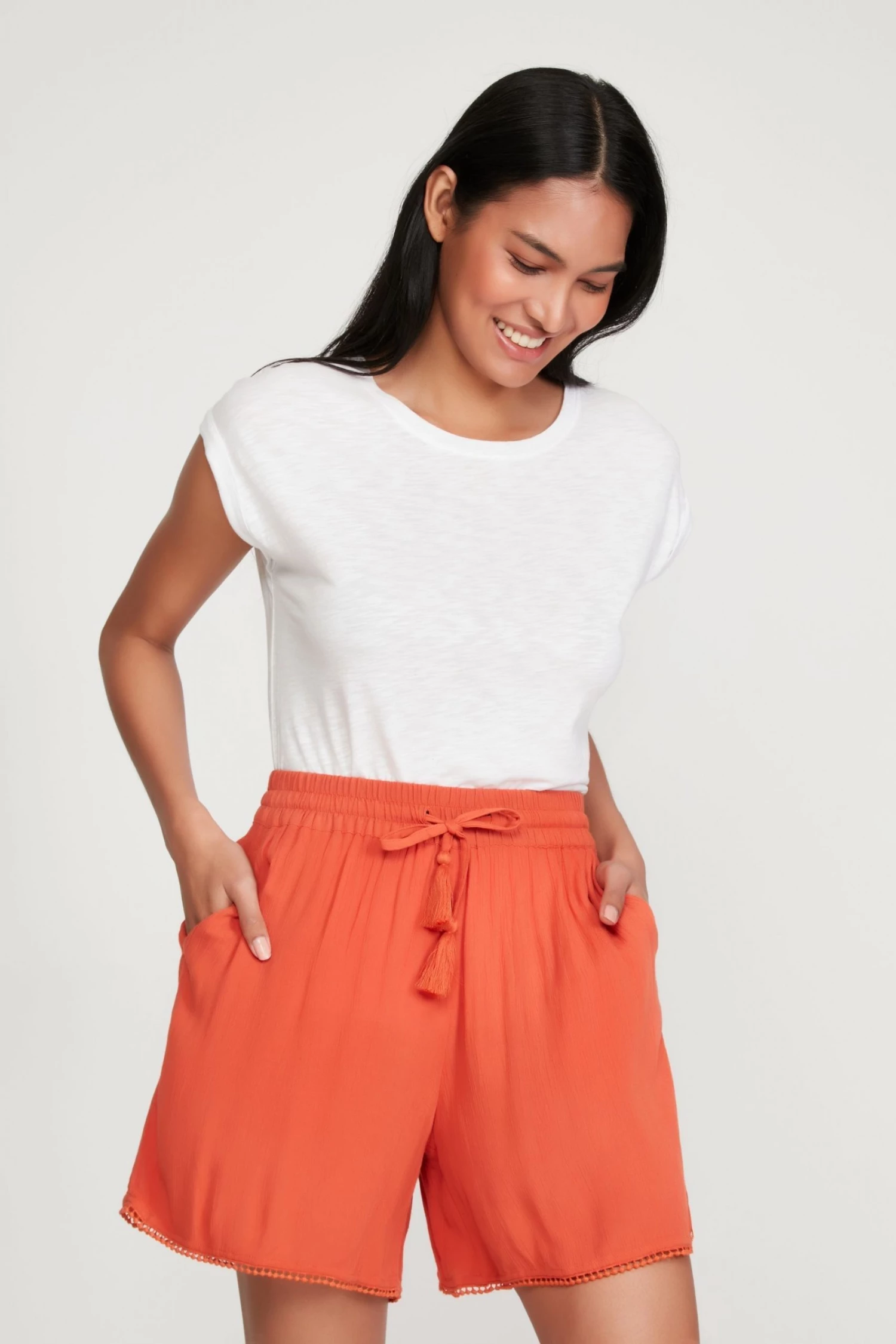 A new season wardrobe essential and a classic design. These crinkle shorts feature side pockets and an elasticated tie waist. Style with a T-shirt and sandals for the perfect day time chic look.
