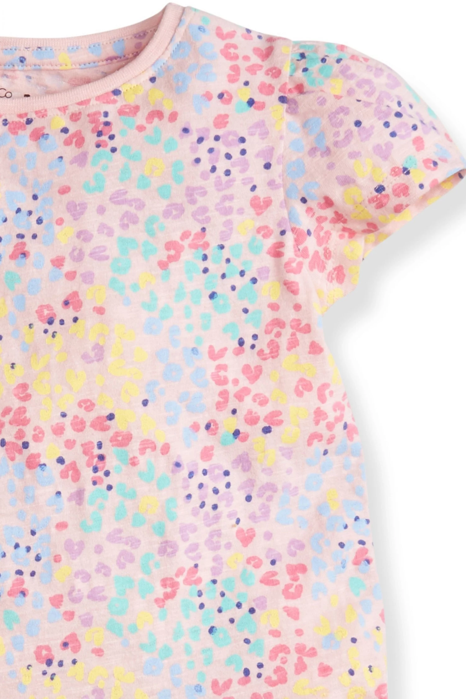 This floral dress is styled with a ditsy floral print and a cuffed cap sleeve. Pair with tights or leggings for a cute look that she’ll love to wear!