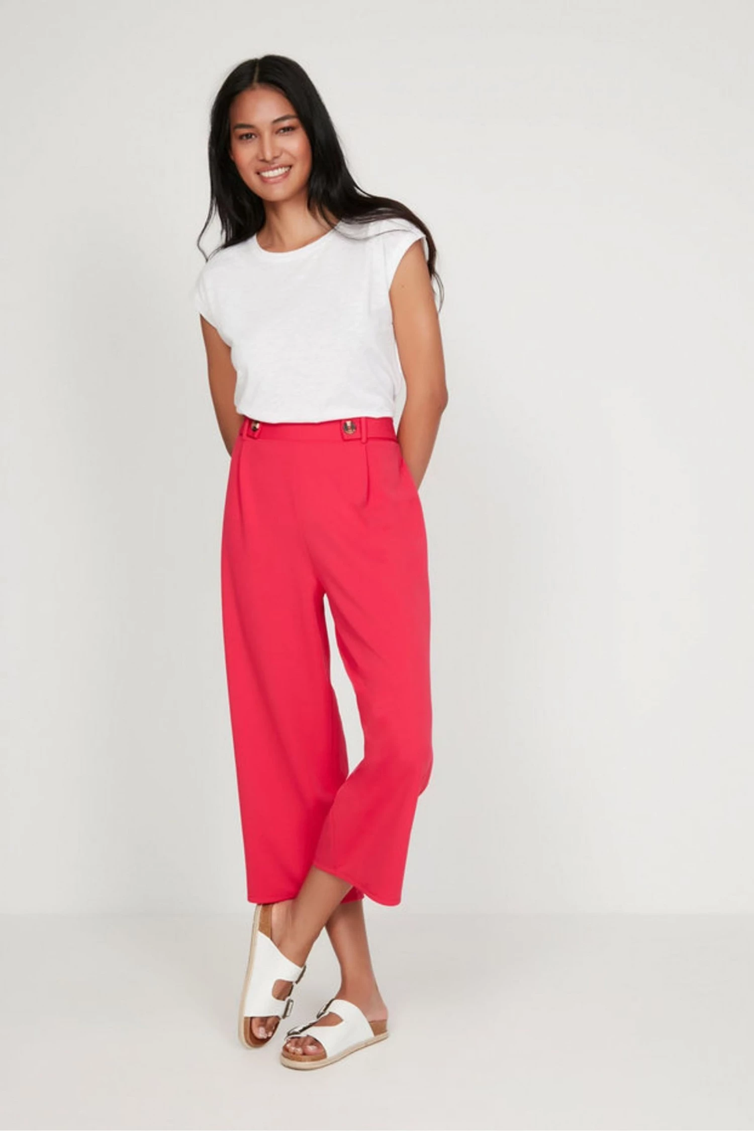 M&Co Pink Scuba Crepe Tab Trousers