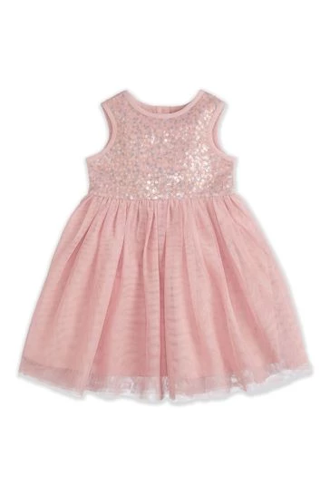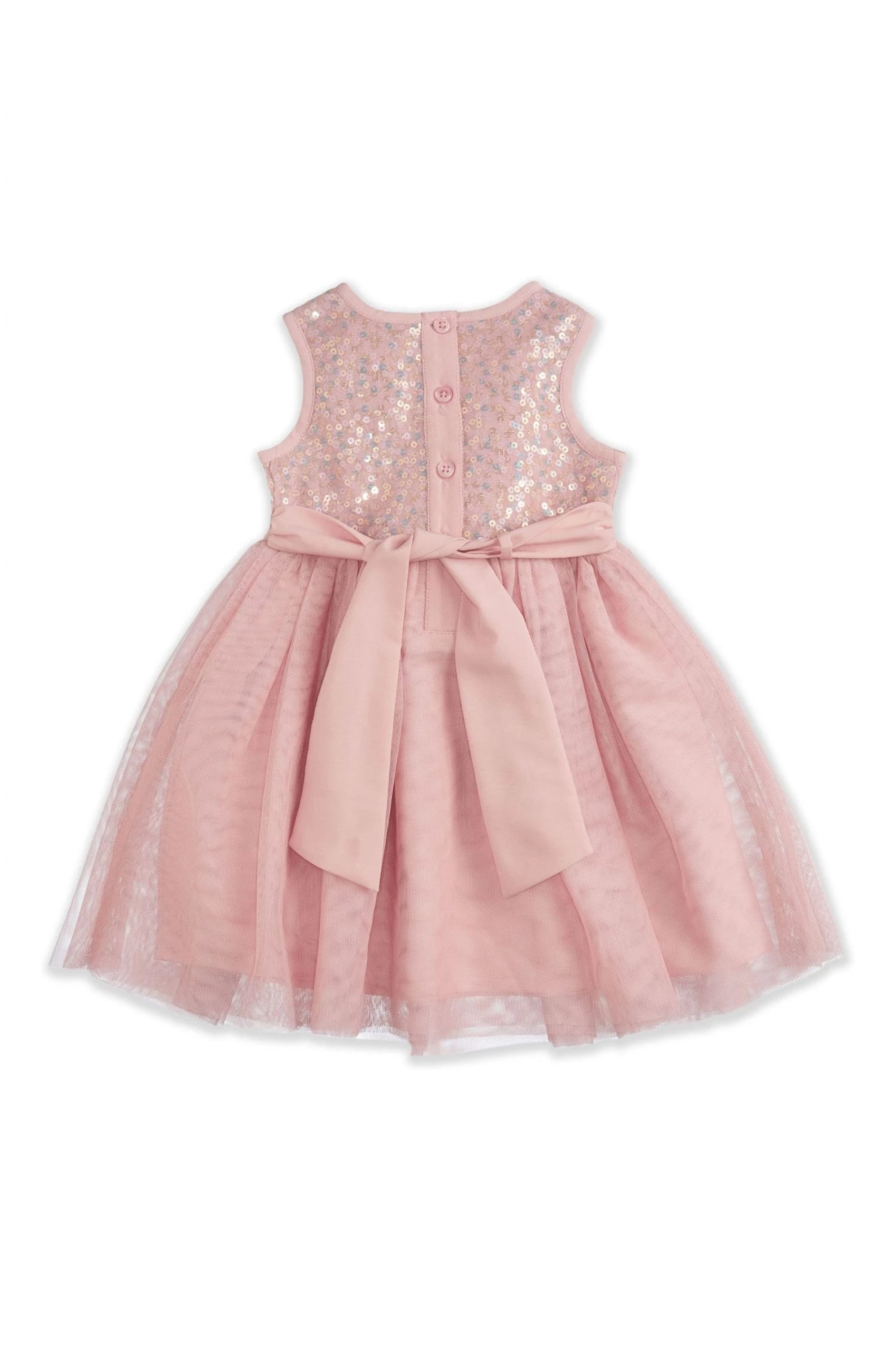 Your little one will look adorable in this pink dress from Kite and Cosmic. The cute sequin design includes short sleeves, button details and a tie at the waist.