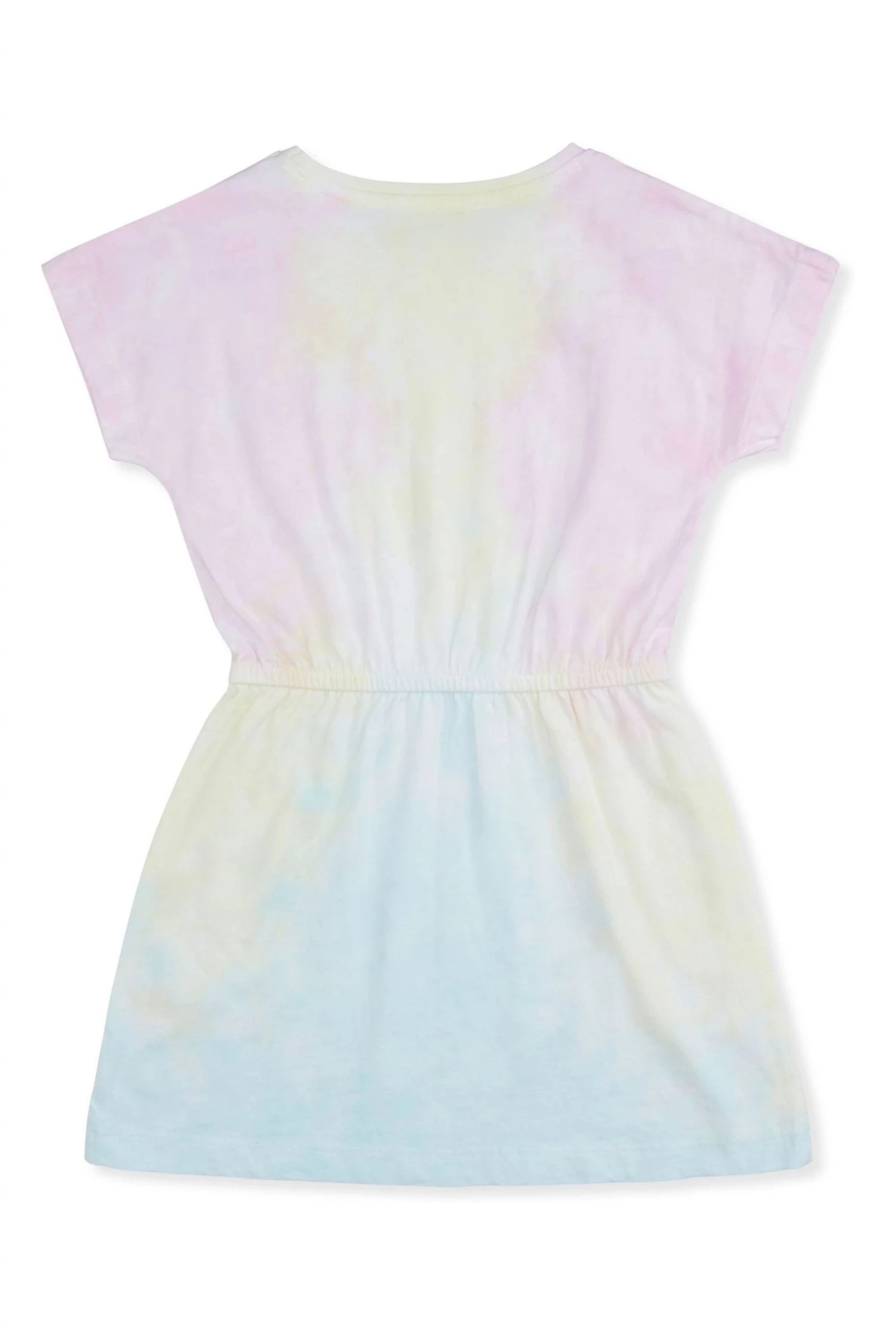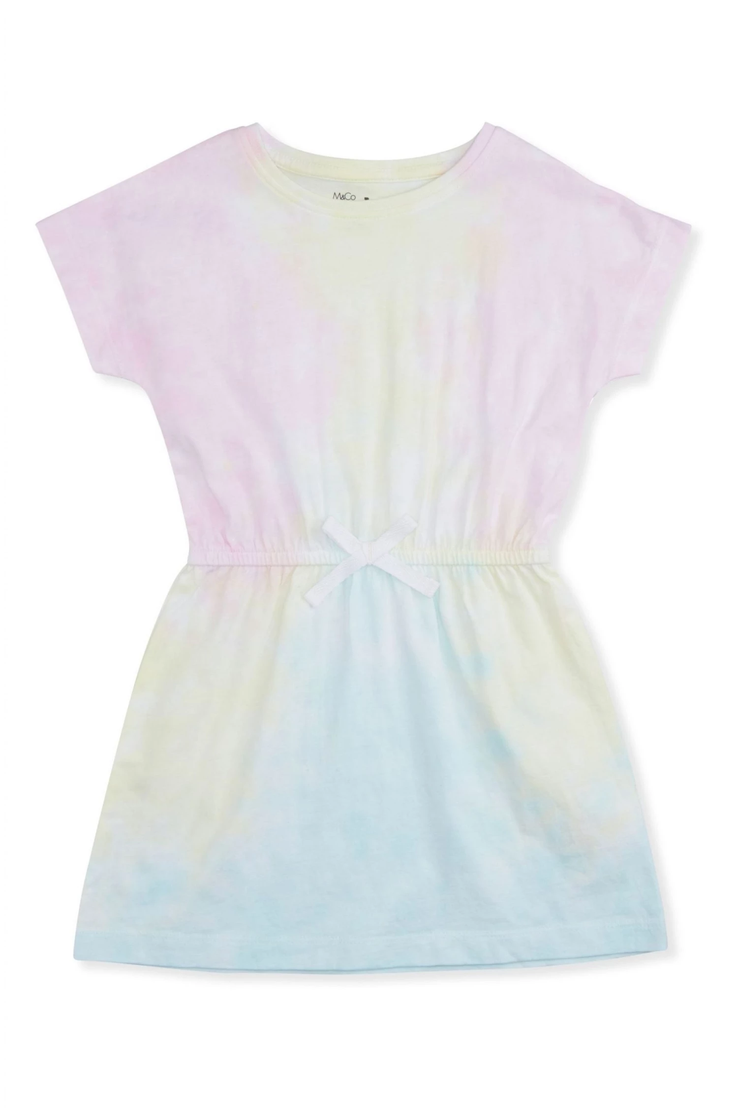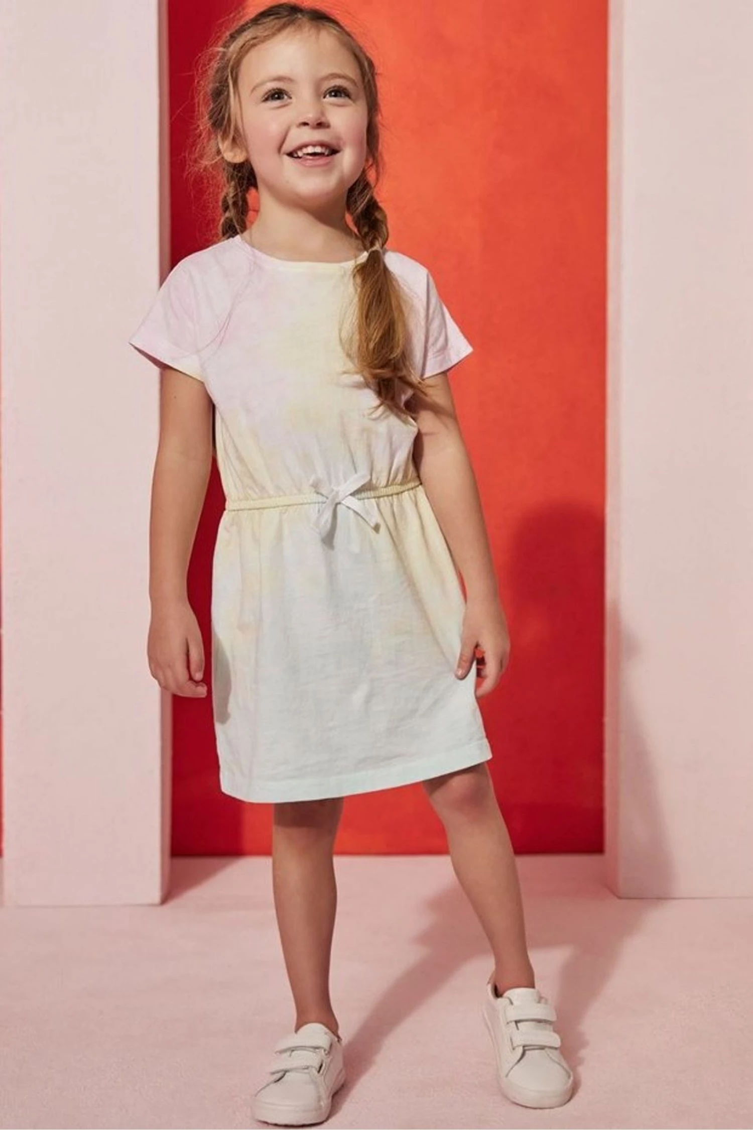 This girl s dress is crafted from a soft jersey fabric and features a cool tie dye print, short sleeves, an elasticated waist and a crew neckline. Pair with trainers for the perfect summer look.