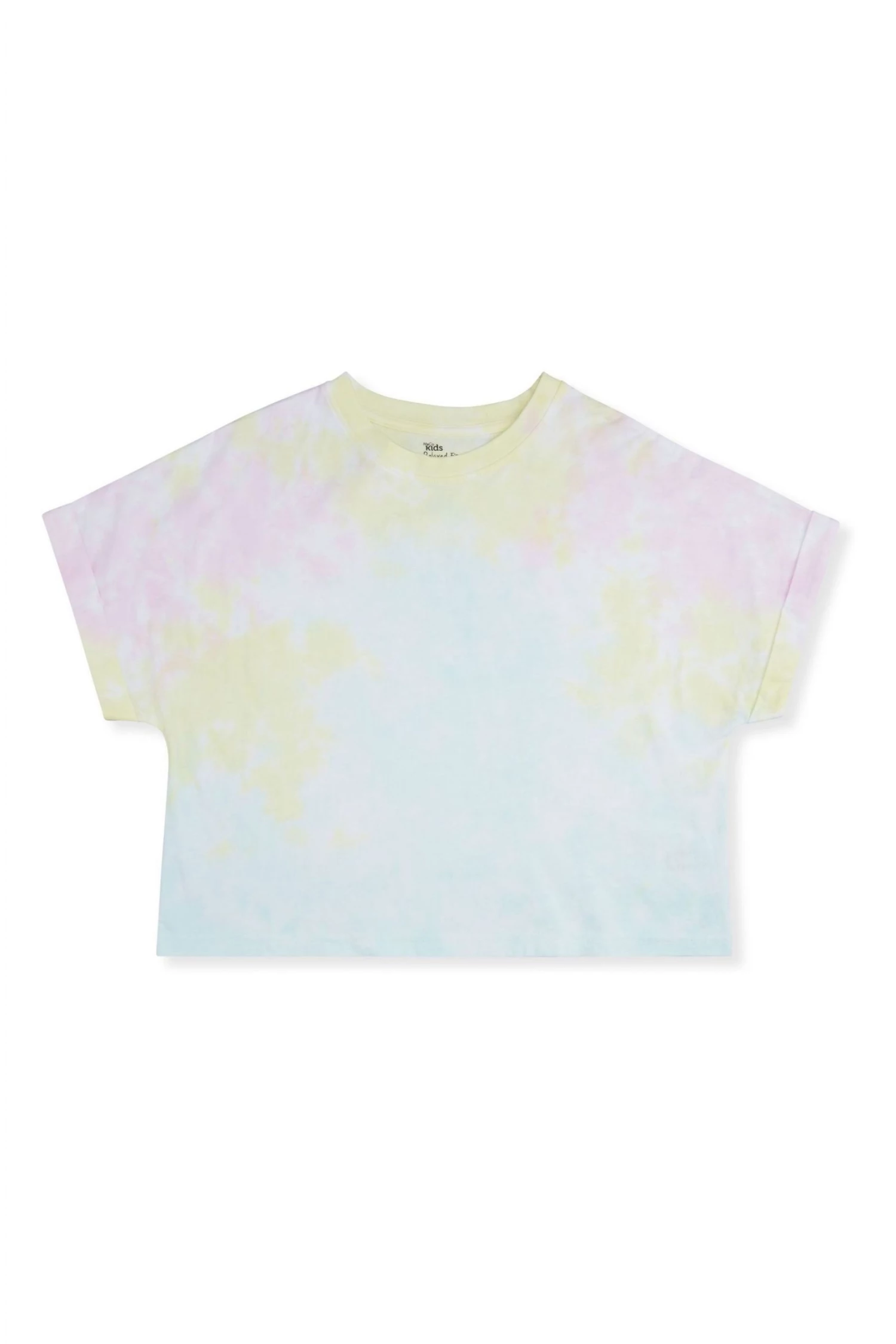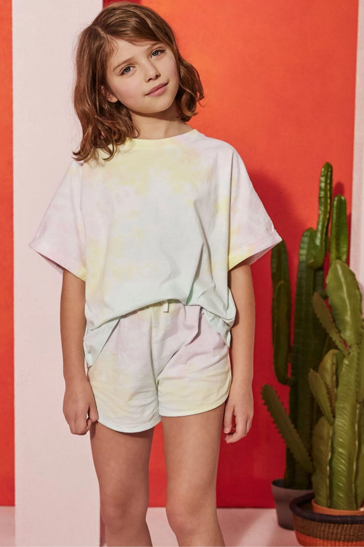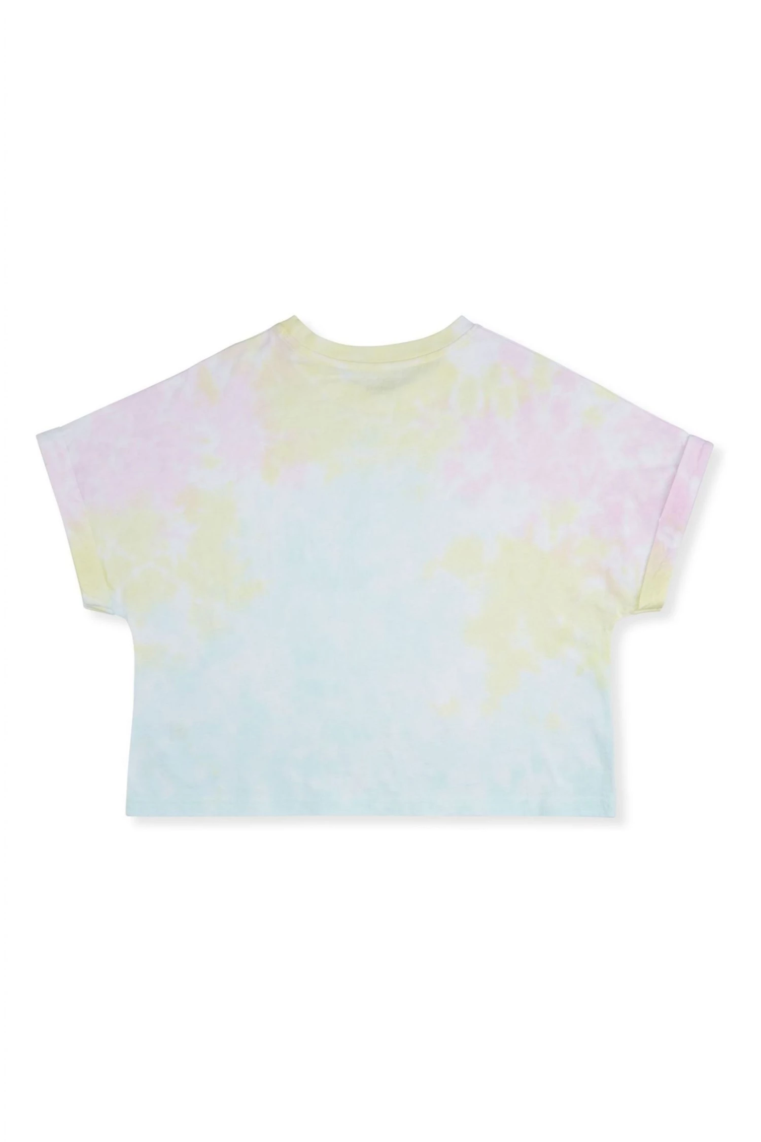 This girl s t-shirt is crafted from a soft jersey fabric and features a cool tie dye print, short sleeves and a crew neckline. Pair with shorts and trainers for the perfect summer look.