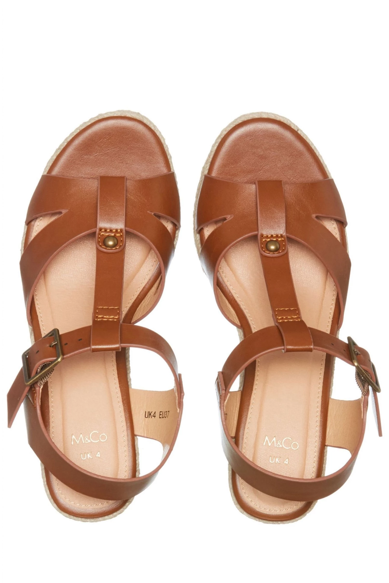 These heeled wedges are designed in a versatile tan shade and feature gold buckle detailing. They can be dressed up or down, making them a staple in your wardrobe for the new season.