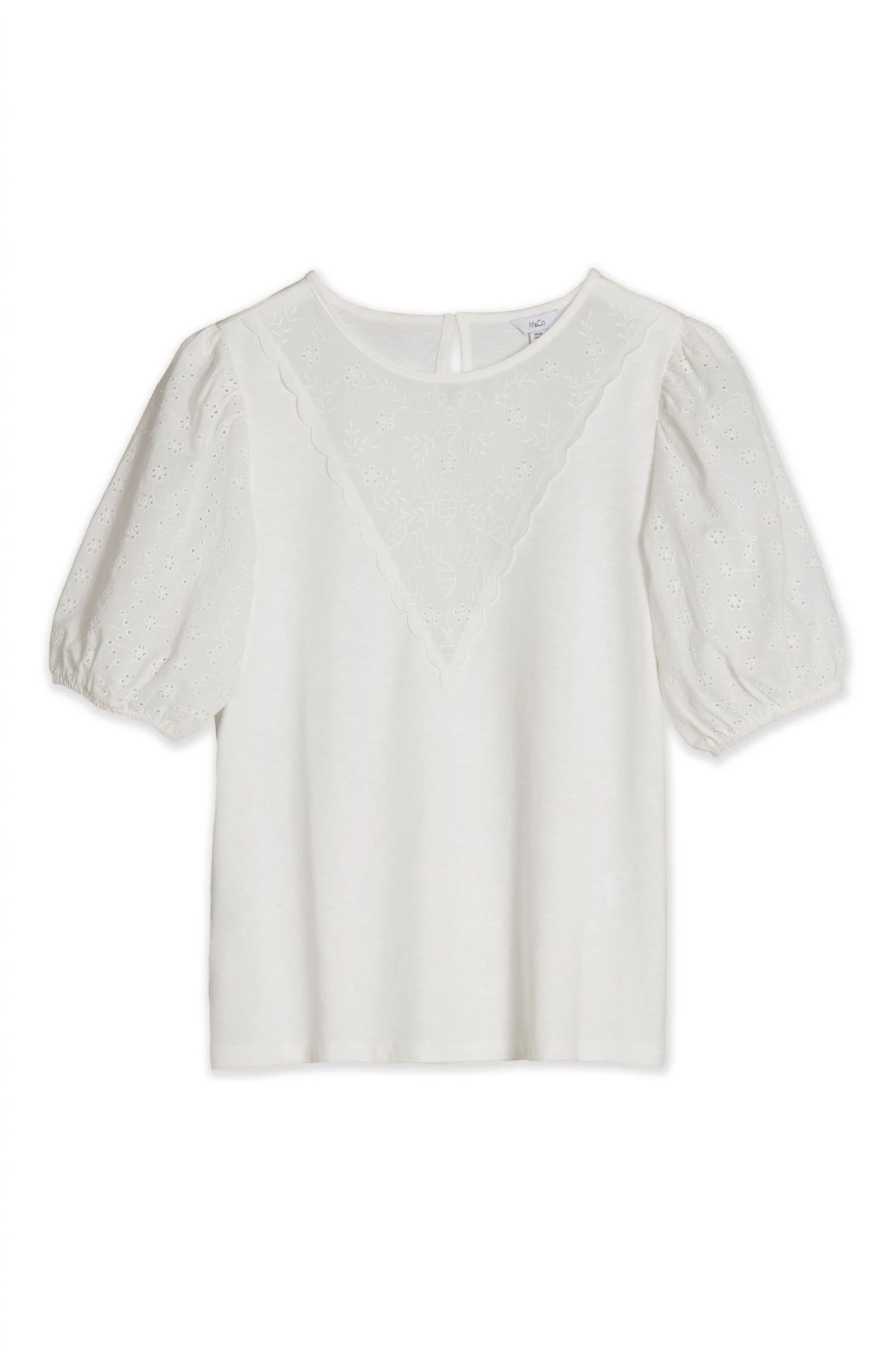 M&Co White Cutwork Yoke 3/4th Sleeves T-Shirt