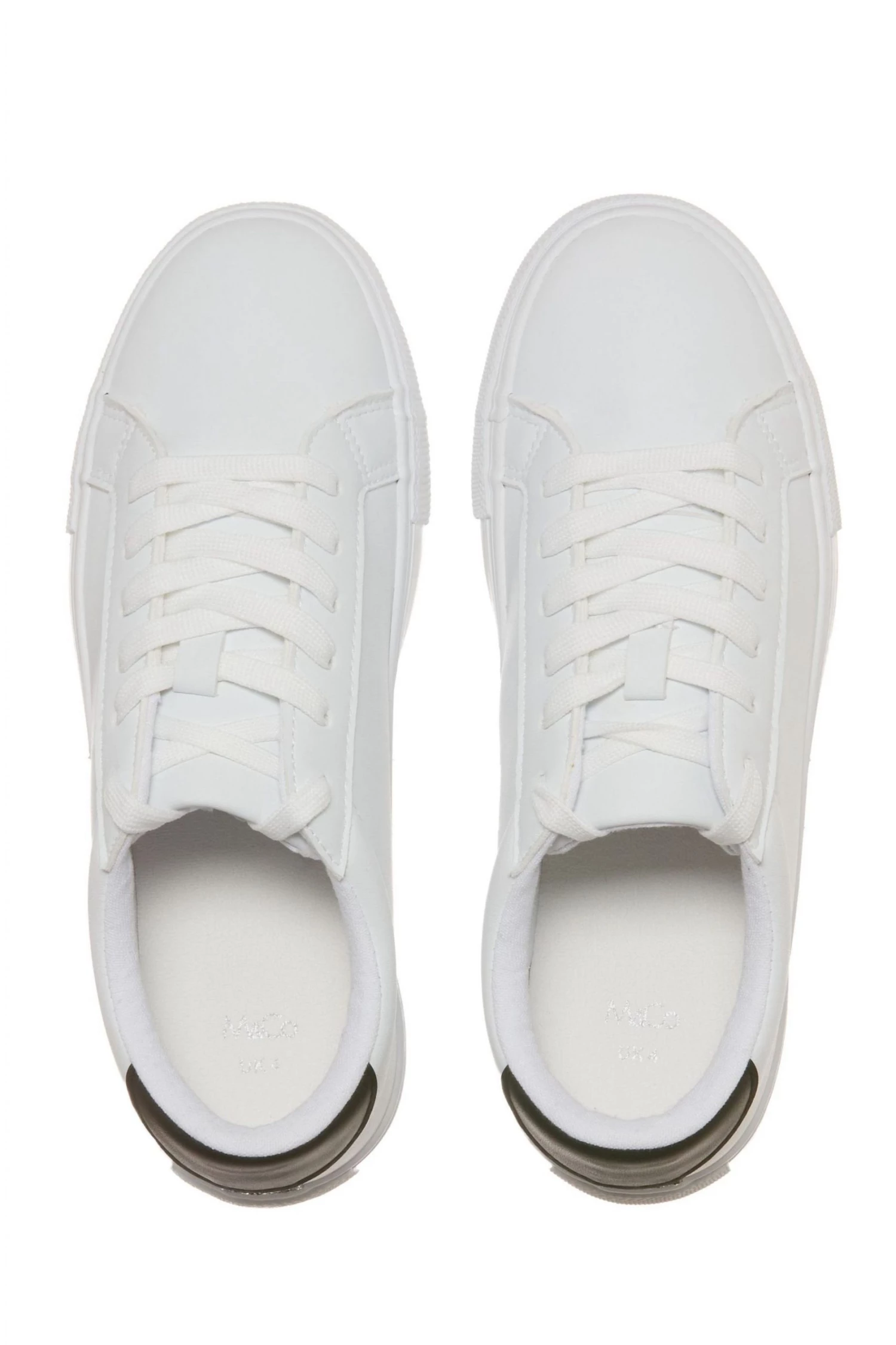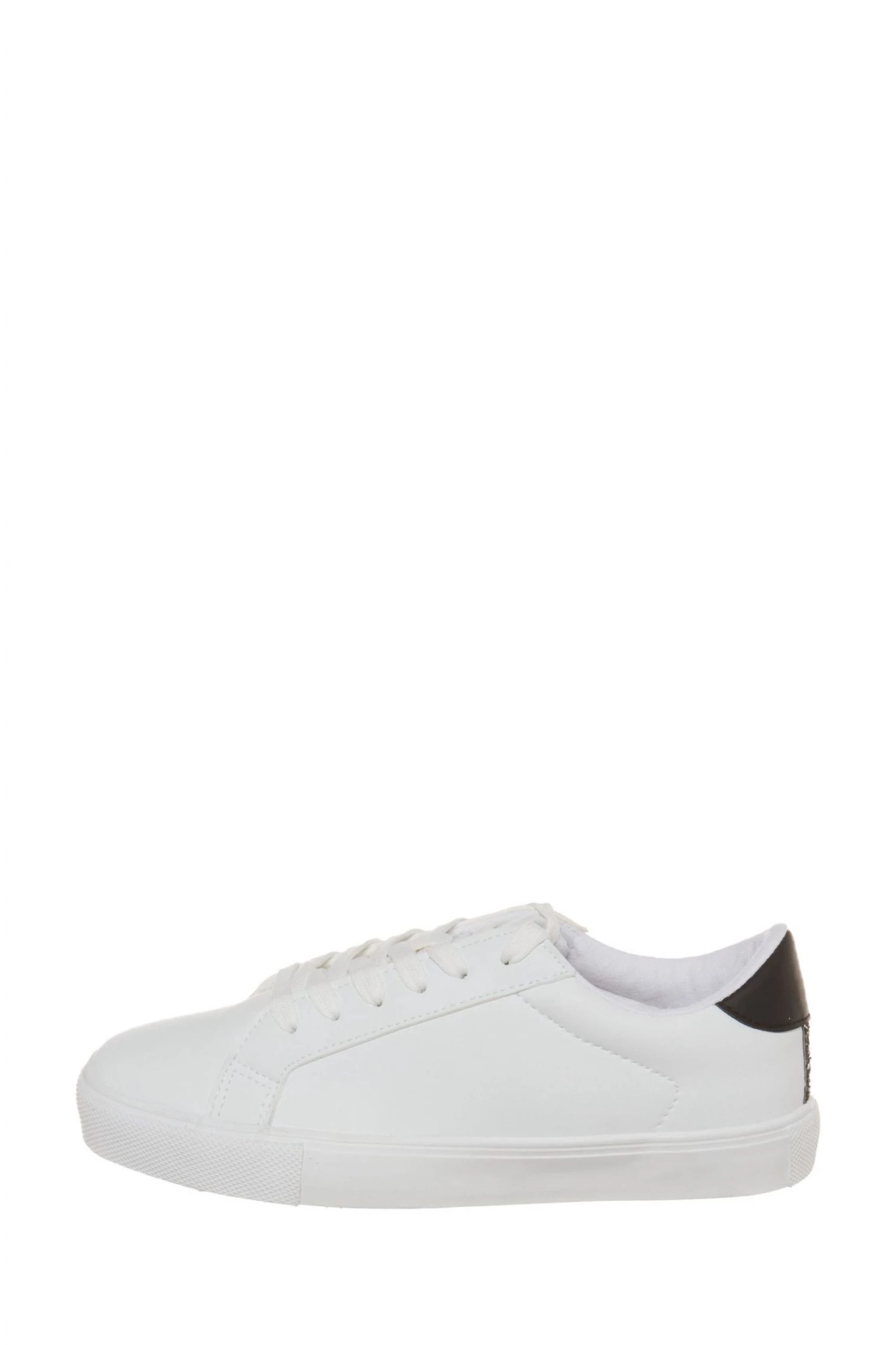 These trainers feature a white PU material, a lace-up design, glitter back and a sturdy rubber sole. Pair these with an everyday outfit to create a stylish look.