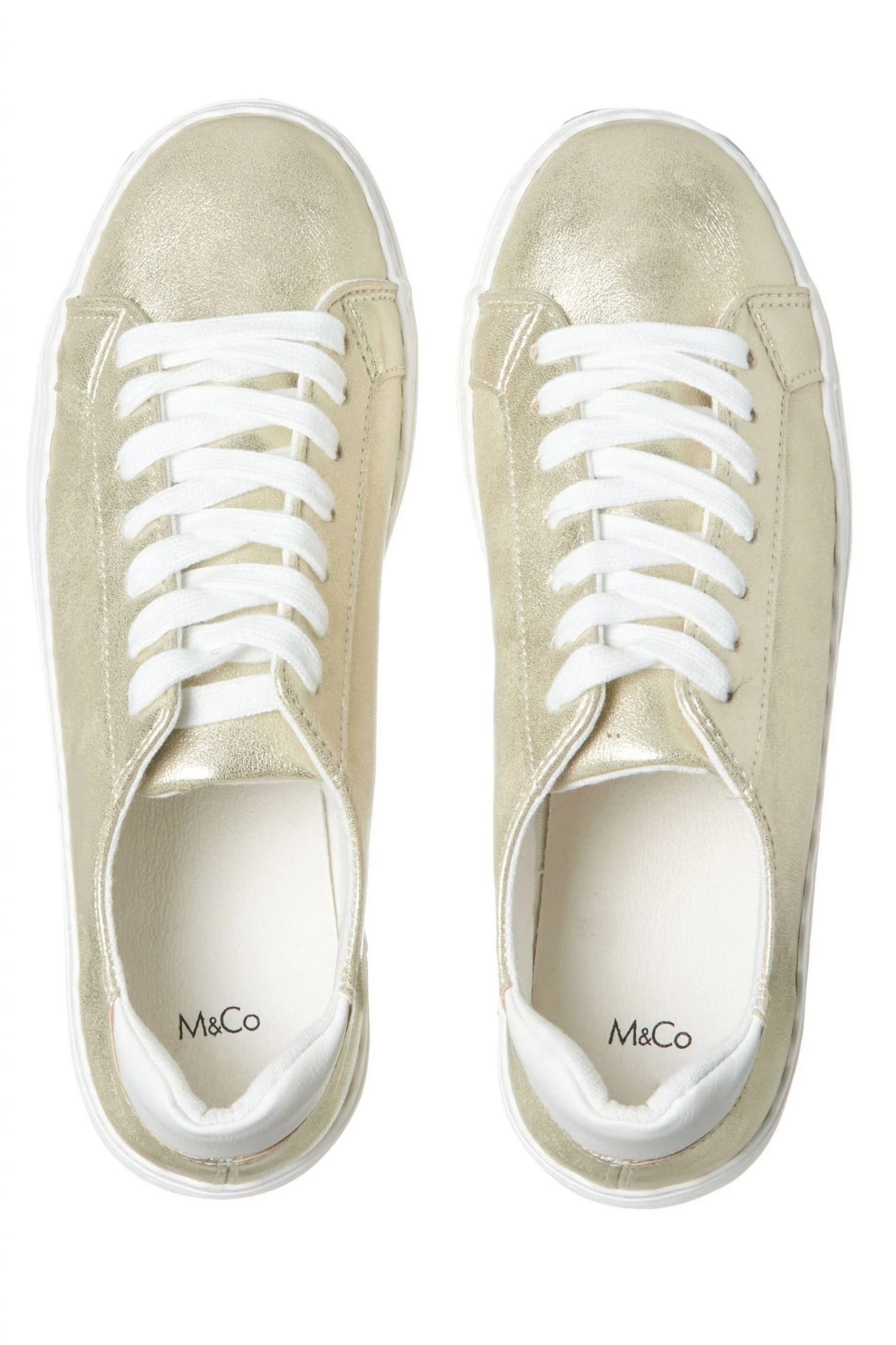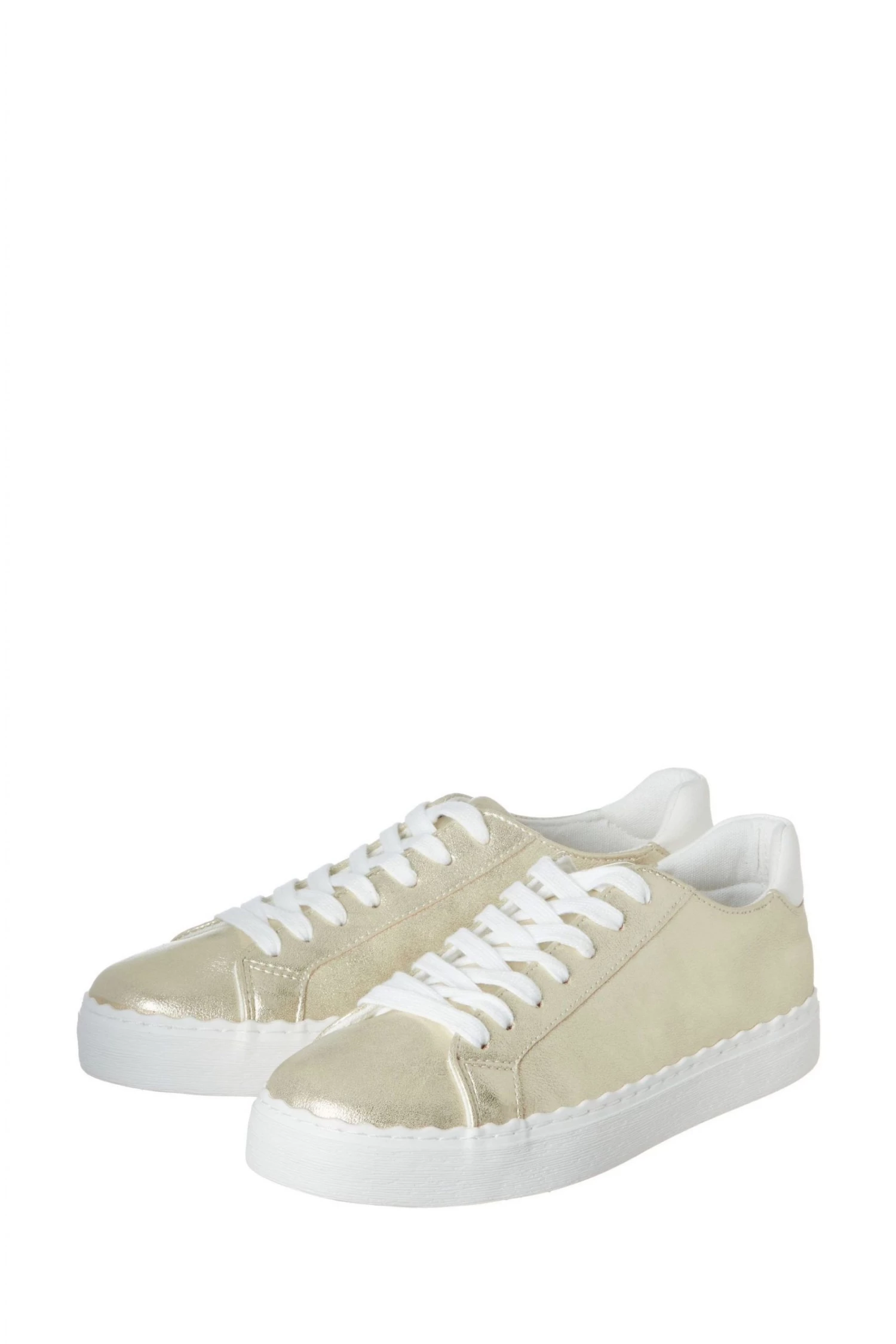 These trainers feature a gold metallic PU material, a lace up design and a sturdy rubber sole. Pair these with an everyday outfit to create a stylish look.