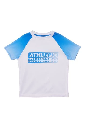 This boy s t-shirt features contrast raglan short sleeves, a crew neckline and Athlepic slogan on the front. Pair with short sand trainers for an easy everyday look.