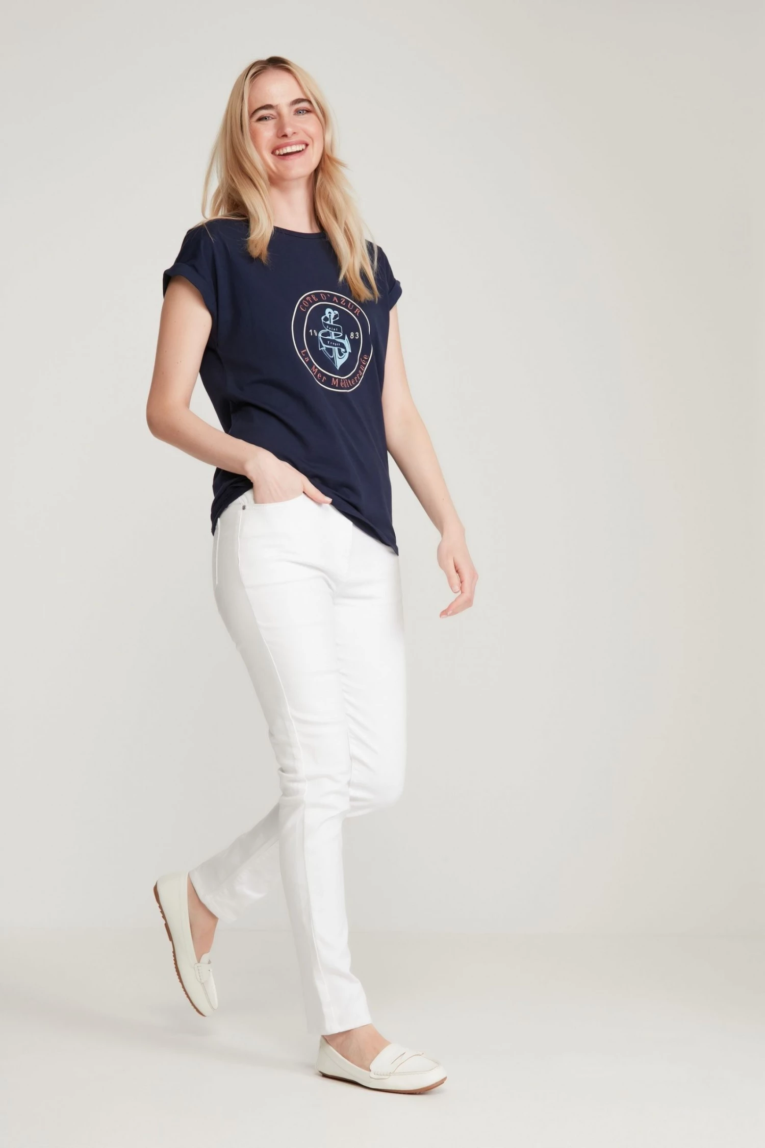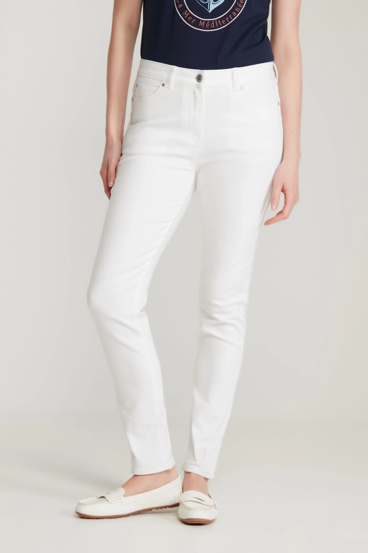 Coming in a supersoft fabric, these jeans feature a cropped length, front/back pockets and a zip/button fastening. Pair with a floral blouse for an on-trend spring/summer look!